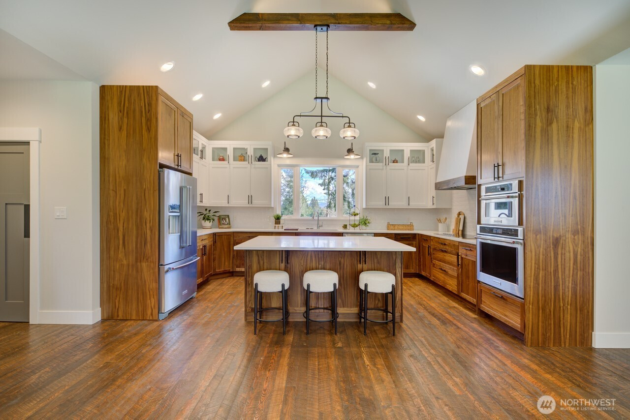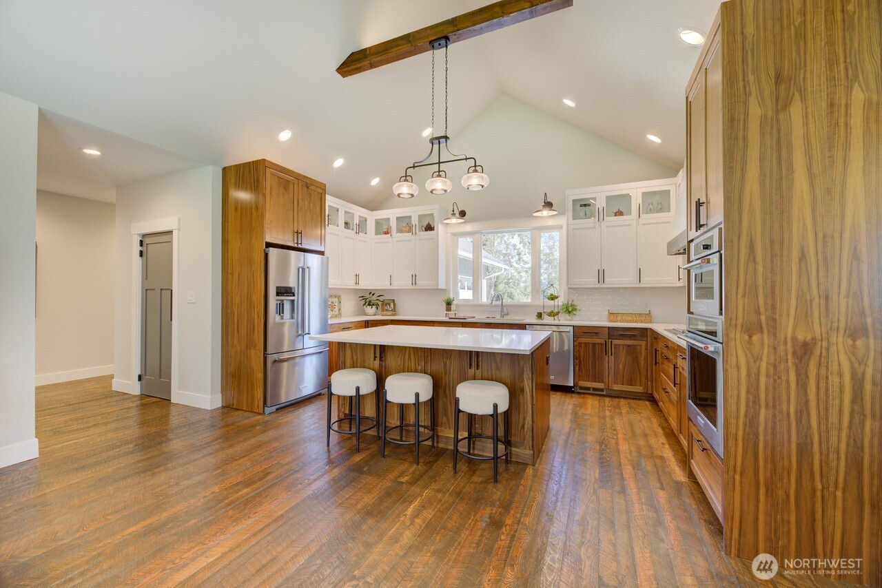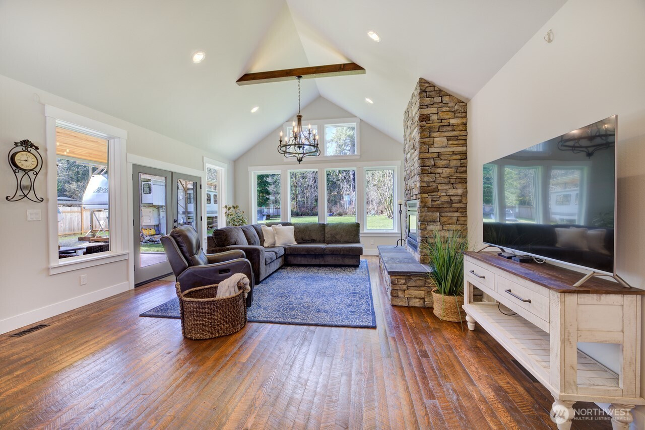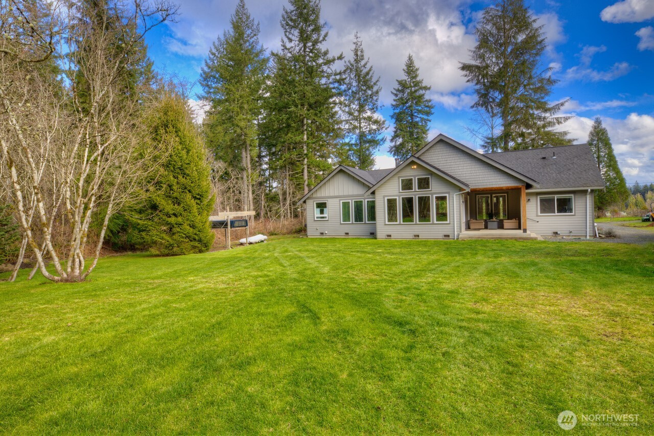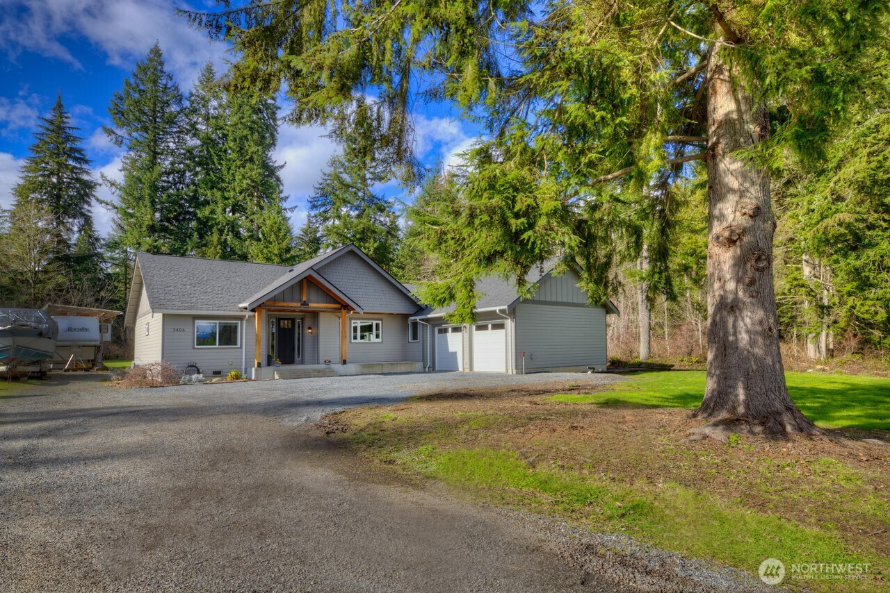 Experience refined single -level living in this Custom Built 3 bedroom, 2-bath Craftsman rambler, ideally set on a level acre with breathtaking mountain views. Spanning approximately 2,000 square feet, the home features a thoughtfully designed open-concept layout and vaulted ceiling that blends sophistication with everyday comfort. The gourmet kitchen is a true centerpiece, featuring high-end Kitchen Aid SS appliances, Shaker cabinetry, quartz countertops and walk in pantry, blending style and functionality. Montana milled Fir hardwood throughout the main living areas is anchored by a stunning stone wood fireplace. Fireplace has electric start and temperature control with fan. The spacious primary suite is a private retreat, complete with a luxurious 5-piece spa-inspired freestanding soaking tub, over-sized walk-in closet and large walk-in shower with faux marble tile. Refined finishes throughout adds elegance and practicality. Expansive living spaces are bathed in natural light throughout the entire house. The generous landscaped yard provides endless possibilities for curated gardens and entertaining. The outdoor covered area off the kitchen and family room provides the perfect place for outdoor gatherings in any season. Located in highly desirable area this exceptional property offers privacy, beauty, and an exceptional place to call home.