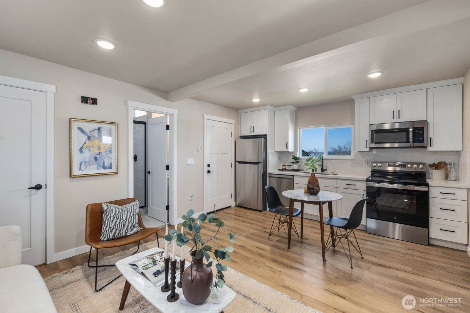 What a find in an adorable setting overlooking Puget Sound. Quaint newer construction cottage is an excellent opportunity for many. 1st time buyer, investor, down-size, etc...this offers a great home with outstanding value. Open floor plan with modern kitchen w/ stainless appliances, quartz counters, stylish cabinetry and mini-split heating & cooling. Perched on the hillside with spectacular views of Puget Sound, Mountains, and Port Gardner. Light-filled loft, off street parking. Located in the extremely desirable Rucker Hill neighborhood. Close to restaurants, cafes and parks.