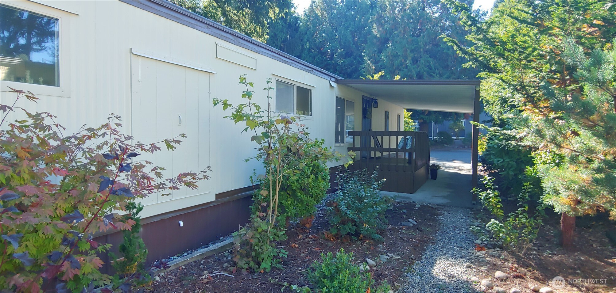 Unique opportunity to own a percentage of the land in this ALL-AGES CoOp community. Prime location- just minutes from Bothell, Mill Creek, shopping & dining. 2 bed, 1 bath, beautifully updated throughout with new LVP flooring, doors/trim, lighting, drywall, paint inside/out, plus much more! Spacious living room & huge gourmet kitchen features new shaker cabinets, beautiful Quartz countertops & light filled garden window- plenty of room for a large gathering. Covered front porch, perfect for welcoming your guests- while the back deck allows for more of a private setting. Carport parking plus additional designated space. Easy-care landscaped lot, storage shed & community offers grassy & wooded areas to play or explore! Park approval required