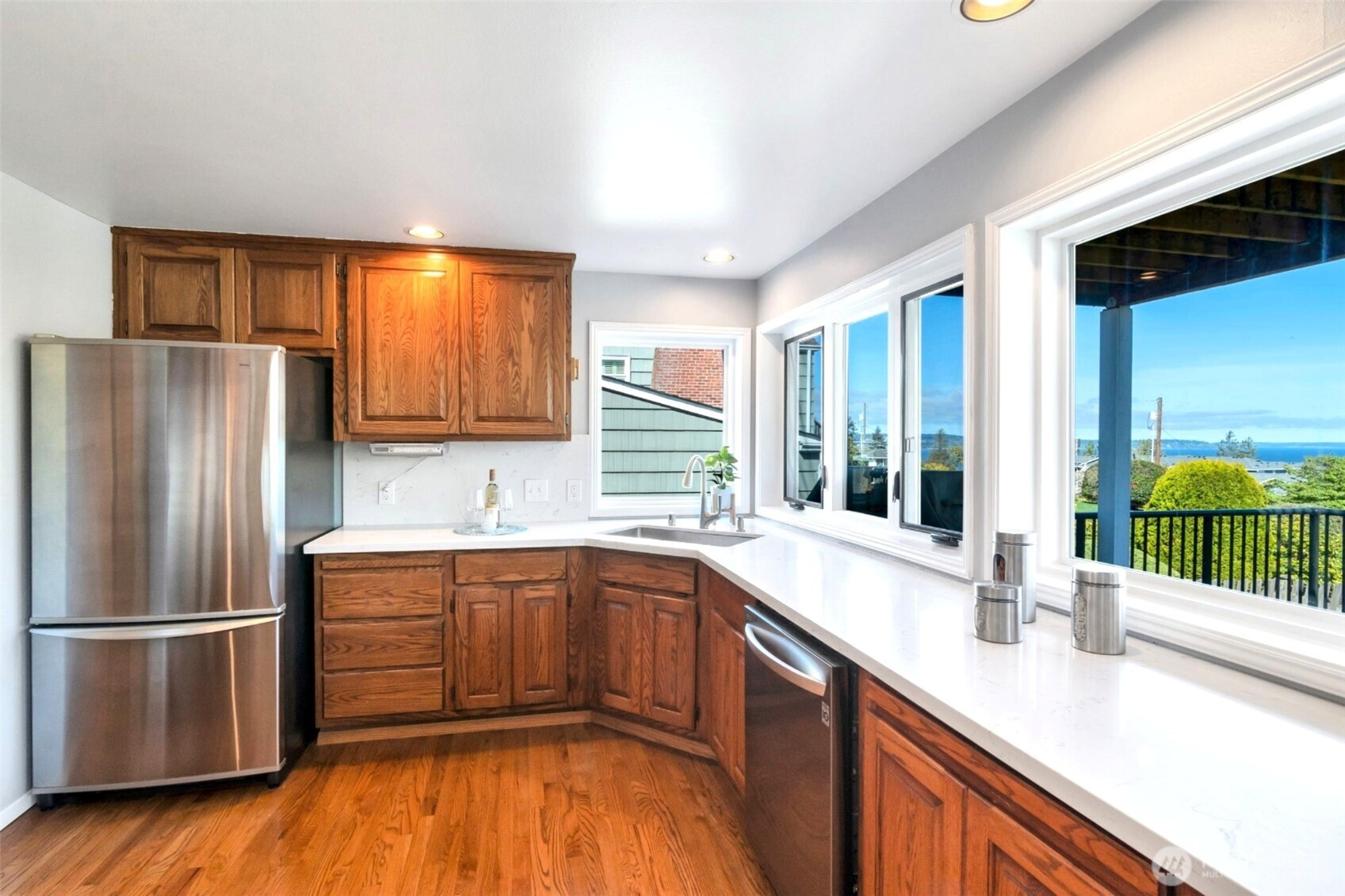 Expansive Sound & Olympic Mountain views from this beautifully remodeled home in Edgewater! Light-filled main level features vaulted ceilings in great room, oversized windows & resurfaced hardwood floors, leading into the oversized chef's kitchen w/ stainless steel appliances & timeless white quartz counters. Versatile, walk out lower-level features new engineered flooring throughout, a large family room, 2 bedrooms, and a newly remodeled bathroom w/ new vanity, sink and fully tiled walk in shower kitchenette area. Other notable upgrades include ductless mini splits, whole house generator, new interior & exterior paint, & immaculately landscaped grounds. Expansive private lot boasting a two tiered deck provides a surreal setting to soak in the awe inspiring views from many angles. Great schools and only a few minutes from bustling downtown Mukilteo and the Ferry! Newly constructed bridge provides a quick and pleasant drive into town nearby.
