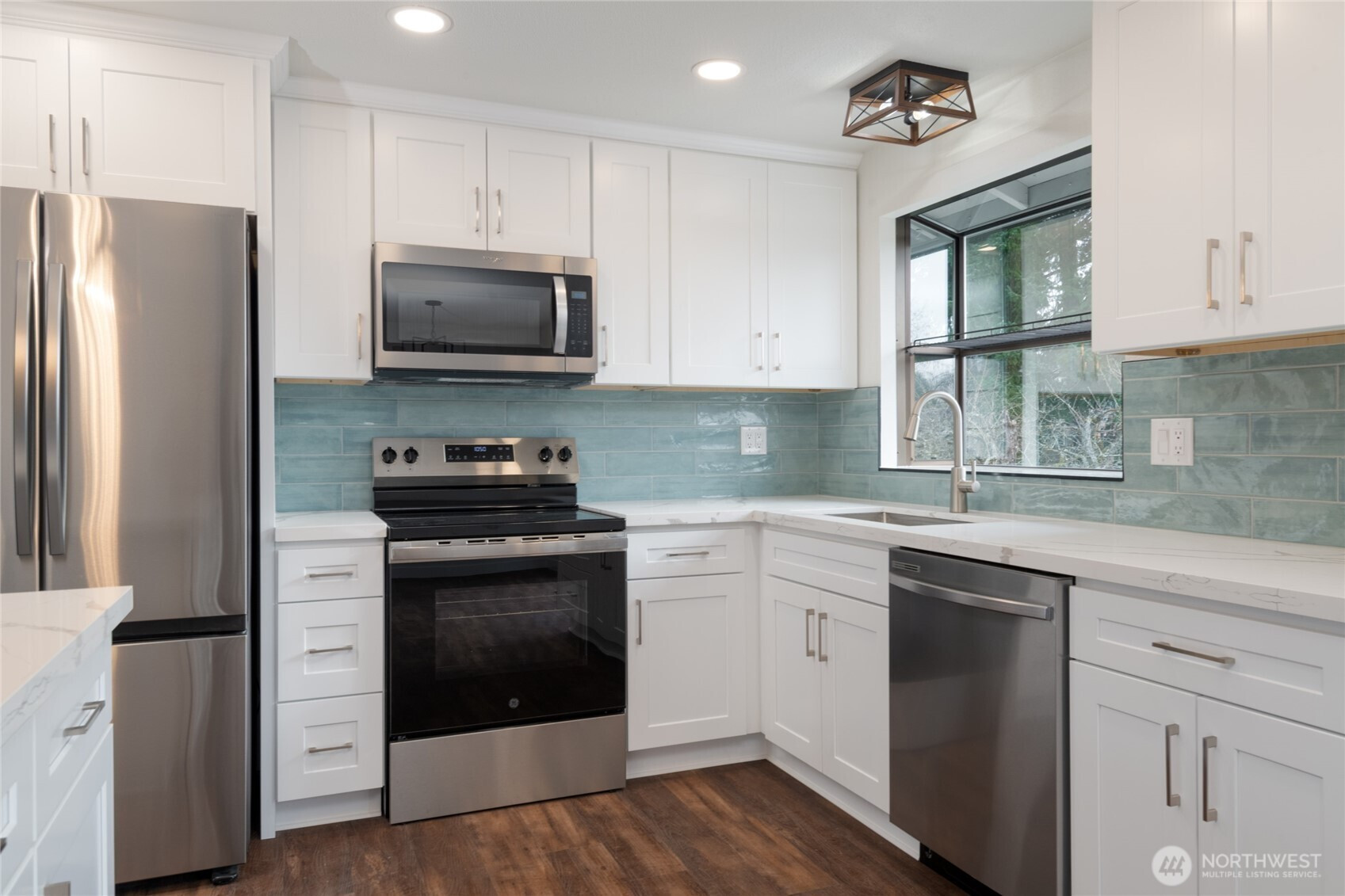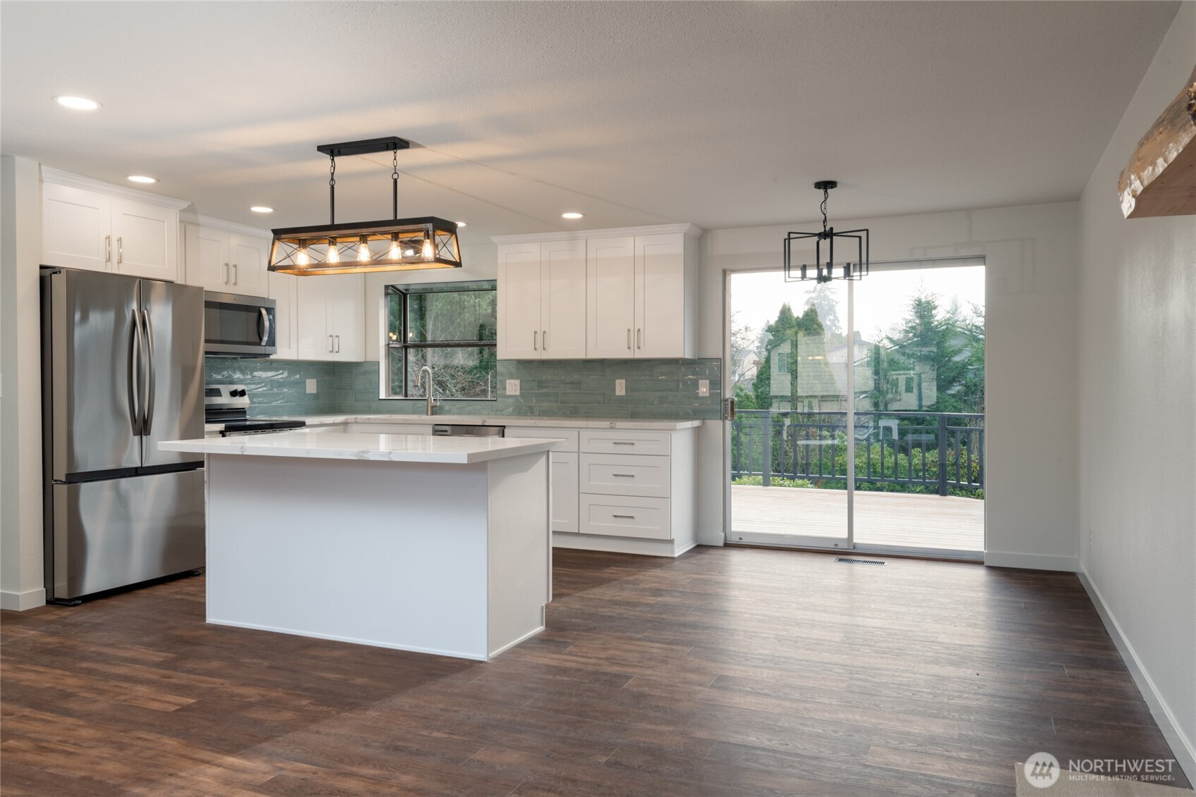 Newly remodeled split level home, minutes to light rail and Alderwood mall. 3 bed/2.25 bath home w/ 1672 sqft finished space, 2 car garage, large deck and fenced yard. Step inside to a huge living room and a spacious floor plan featuring 3 large bedrooms & 3 bathrooms. Large kitchen w/ granite countertops, shaker cabinets, & SS apps. Beautiful deck off dining room with elegant staircase down to backyard. New roof in 2025, as well as all interior finishes, paint, flooring, doors, millwork, tile and vanities in bathrooms. This one is ready to move in! Close to Hwy 405 & I-5 yet on a peaceful street in a neighborhood. Don't miss this one!