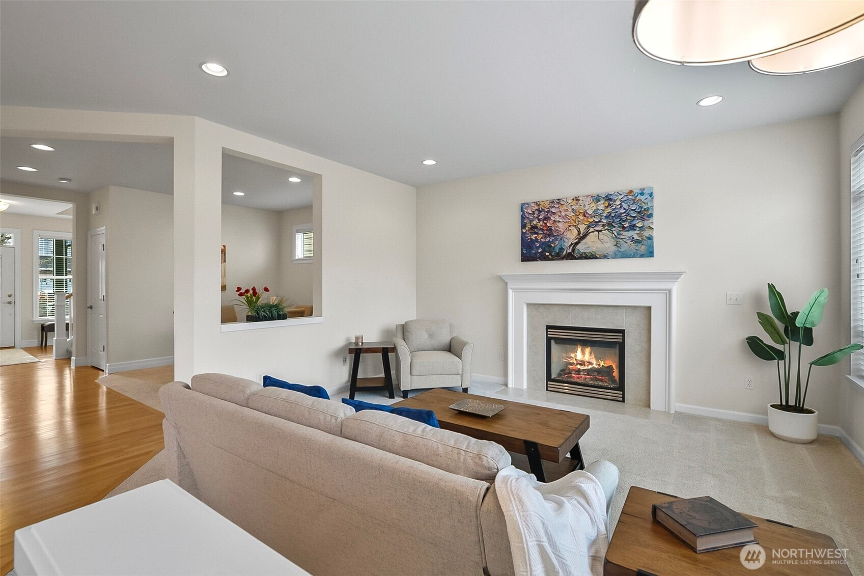 Conveniently located home in Rockport, a highly desirable Bothell/Mill Creek location. One owner Dr Horton resale. Excellent floor plan & home is located on a cul-de-sac. Covered entry is welcoming. Great-room living is open & inviting with a dining room, family room w/cozy gas fireplace & kitchen that features a center island, gas range, lots of storage & lovely, refinished hardwood floors. Primary suite w/elegant tray ceiling, ceiling fan, large walk-in closet & 5-piece bath w/tile flooring. 3 additional bedrooms, guest bath, huge bonus rm w/double door entry & convenient upper-level laundry. Easy-care fenced yard, patio & pavers & a retractable awning. New AC & additional backyard hardscape in 2024. Fresh interior paint 2025. Top-rated schools & welcoming community. Neighborhood has walking paths, a park and a play court. Minutes to Mill Creek Town Center with restaurants & shopping. Easy Hwy access.