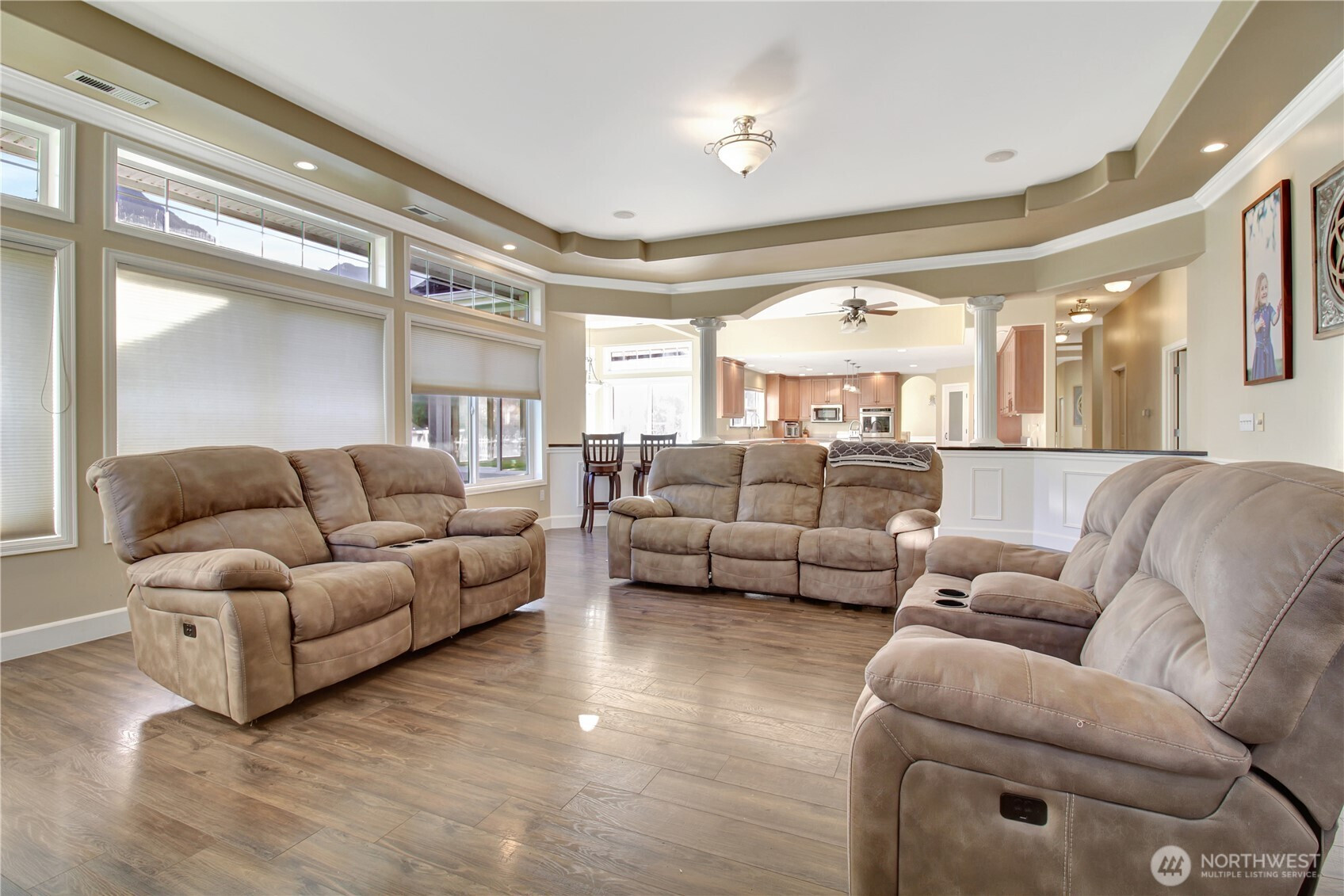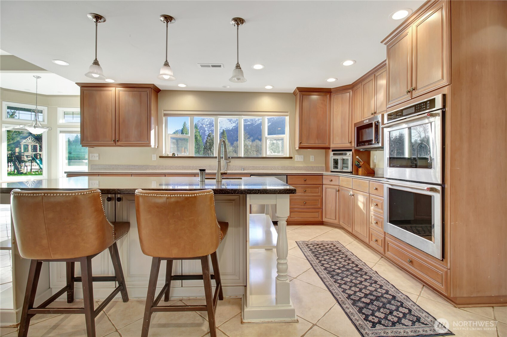 {UNPARALLED MOUNTAIN VIEWS AND YOUR OWN RIVERFRONT} are offered with this custom home on 7 acres of pasture! Bring your horses. . . or not! Inside, a grand entry w/ a wall of windows off the formal dining room framing snow covered, Whitehorse Mountain. Soaring ceilings, tiled entry into dining & kitchen. Oversized den/office off entry with French doors. Primary suite has double door entry, slider to patio, large walk-in closet and private 5 piece bath! Tiled flooring, dual vanity, walk-in tiled shower, claw foot bathtub & Travertine flooring! Meander back out into the living area & explore the gourmet kitchen boasting SS appliances, double oven, abundant cabinetry & seamless Corian countertops. Island has granite slab & eating bar. Walk in pantry for your small appliances too! Family/great room is spacious & offers built in bookshelves-either side of the gas fireplace for cozy movie nights! Off the hallway, 2 bedrooms, a 3/4 bath (wheelchair accessible), utility room w/ sink & cabinetry for additional storage. Oversized, finished 3 car garage (currently being used a gym) is large enough for all of your toys/vehicles. Upstairs (wired for chair lift) is an attached, 1 bedroom, 1 bath fully equipped apt. w/ a stackable washer/dryer. Separate space for relative, caretaker, or additional income! Outside a 2000 sq. ft. patio, fenced yard area, hot tub and an outdoor living area w/ eating bar, built in barbeque & f/p for entertaining + small barn/shop. 536 ft. of riverfront too!!!
