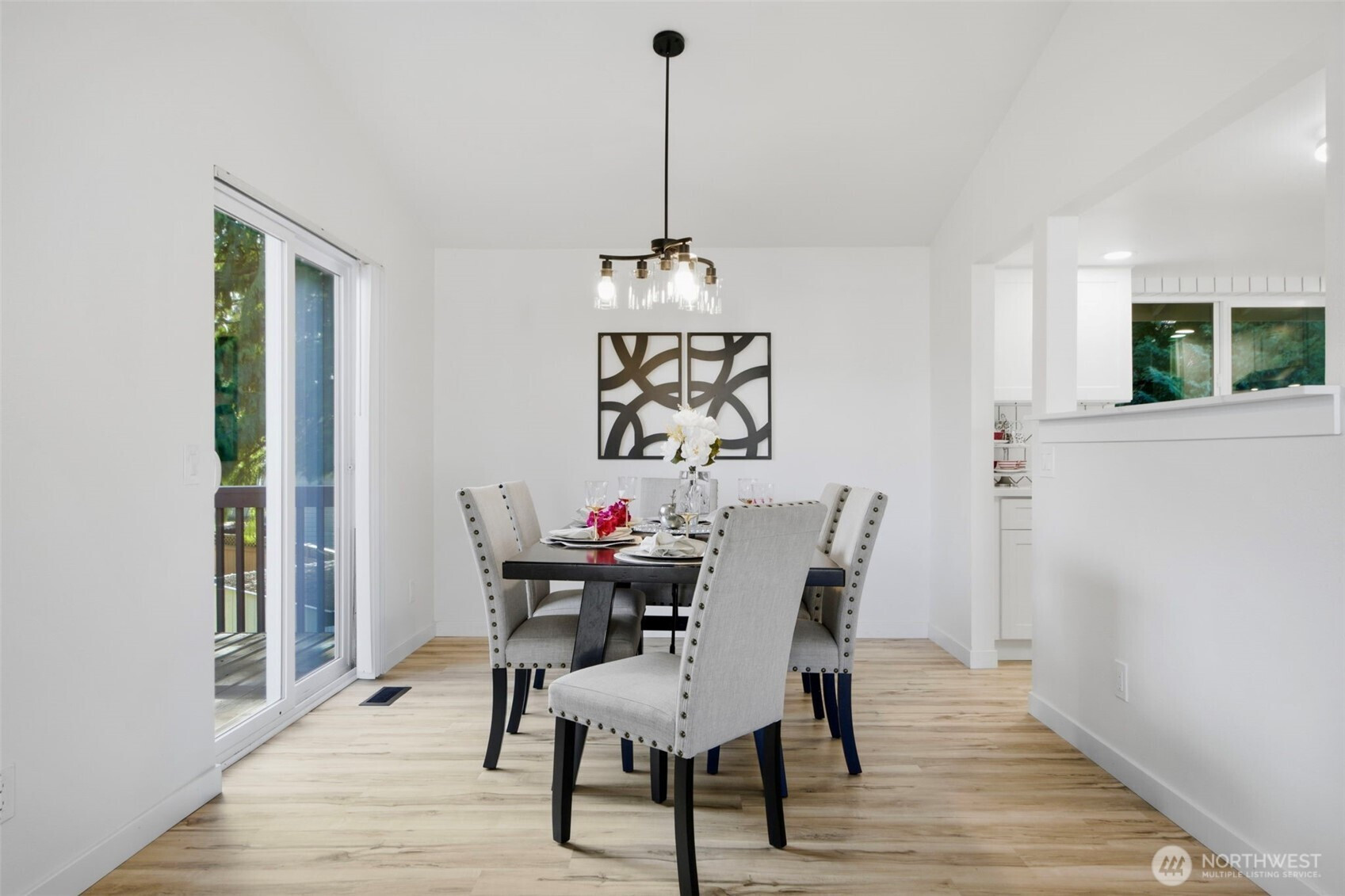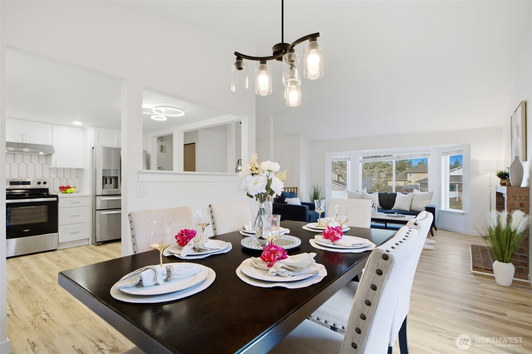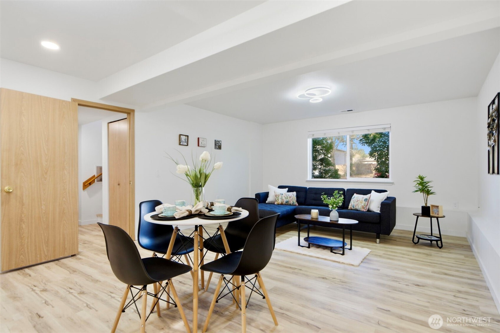 Located on a quiet cul-de-sac, this well-maintained 4-bedroom, 3-bath home offers 1,924 sq ft of versatile living space on a 7,405 sq ft (.170 acre) lot. The bright living room features a dramatic cathedral ceiling and cozy fireplace, creating a warm and inviting atmosphere. A deck just off the main dining area and kitchen provides seamless indoor-outdoor flow for entertaining. The lower level offers excellent flexibility with a bedroom, bathroom and spacious family room, making it ideal for a potential mother-in-law suite.Separate kitchens and laundry areas provide outstanding opportunity for rental income or multigenerational living. Extensive updates include new lighting, fresh interior paint, new electrical, new flooring, new deck. The lower and upper kitchens were updated in December 2025. Furnace was installed at end of 2024. Siding and exterior paint were completed in 2021, and bathrooms were fully updated in 2022. Conveniently located near Spruce Park and within the Edmonds School District, just minutes to Costco, Fred Meyer, Alderwood Mall, Walmart, Target and numerous dining options. Easy access to I-5, I-405 and light rail makes commuting simple. This home combines functionality, modern updates and an excellent location in one attractive package.