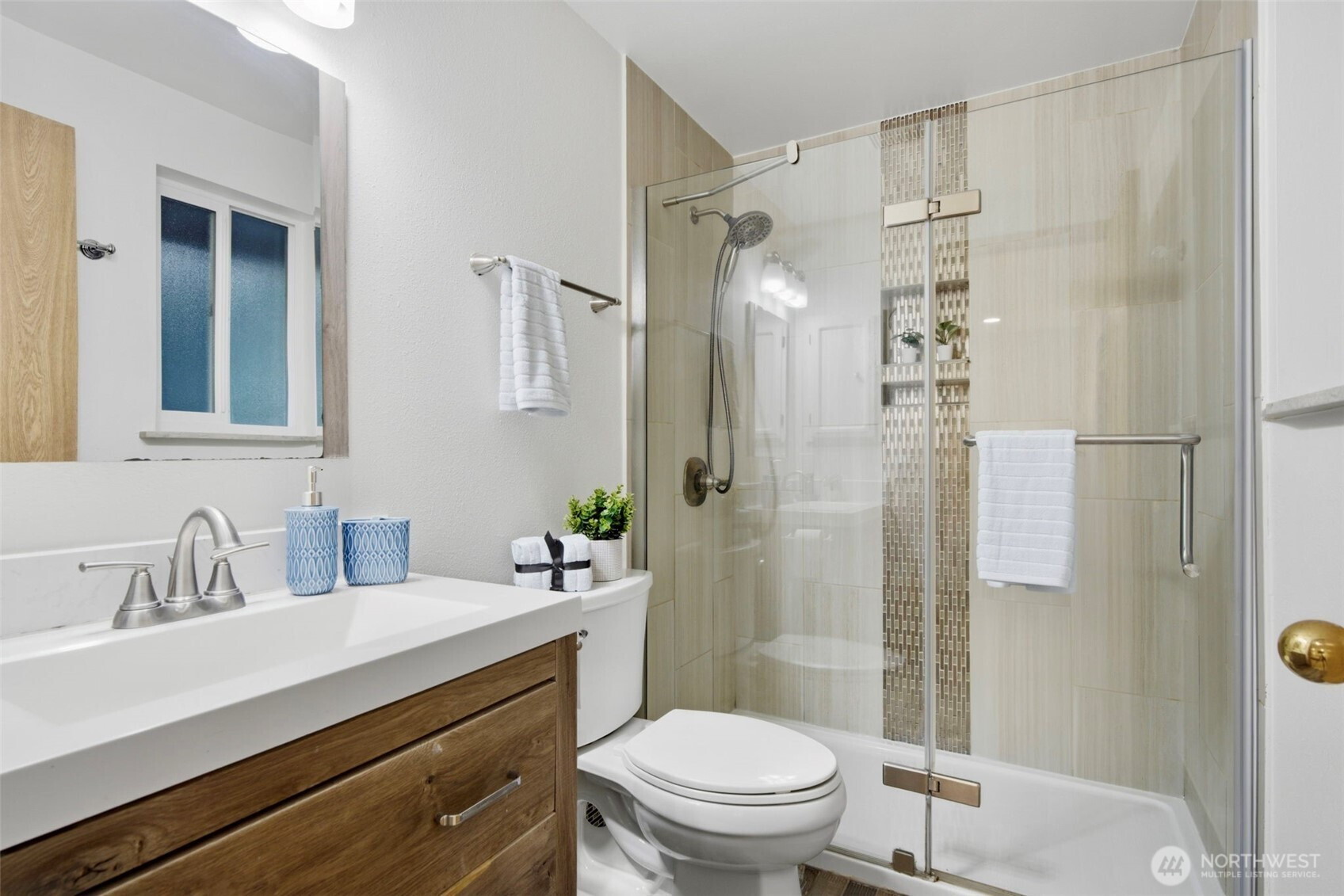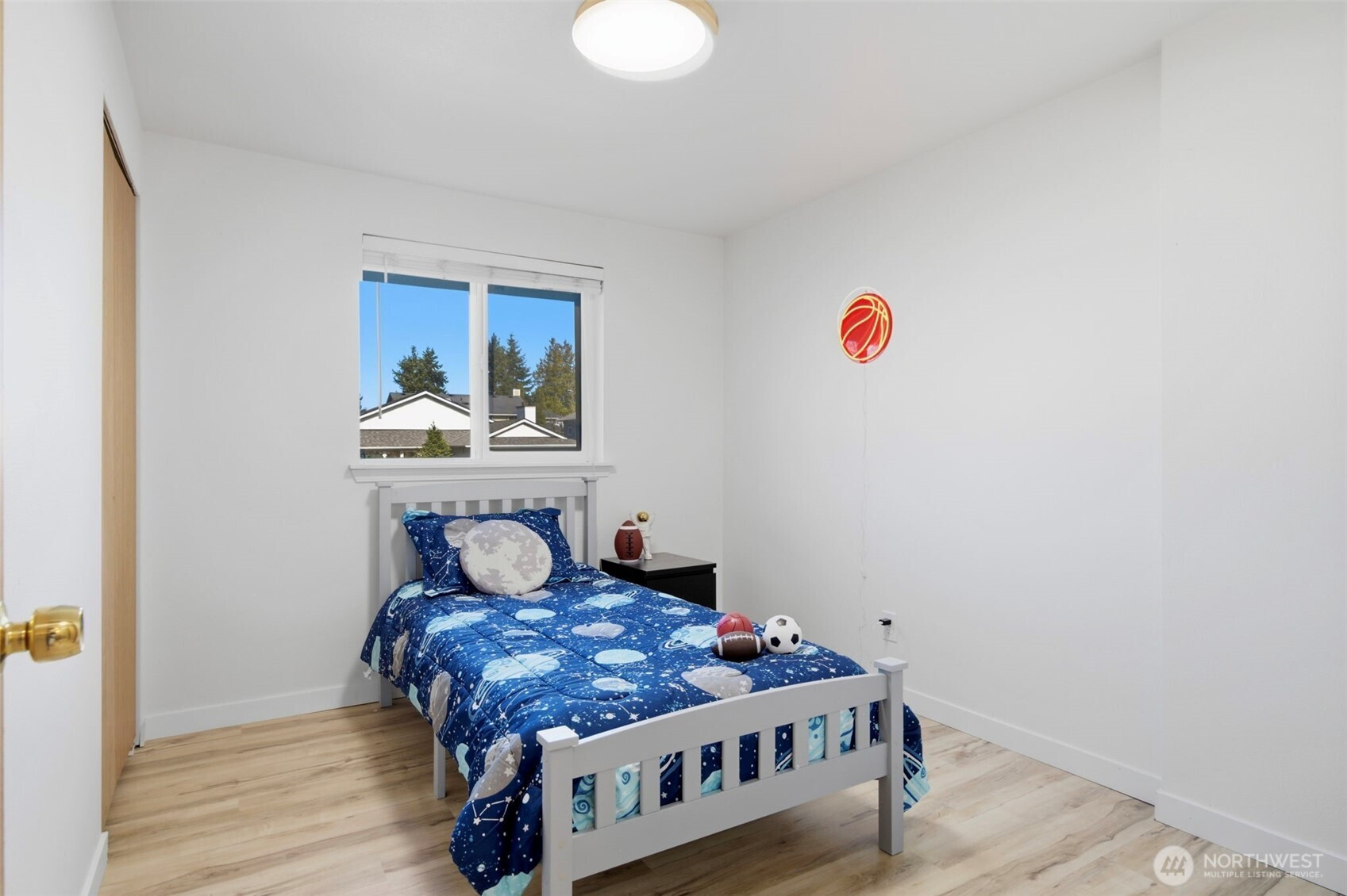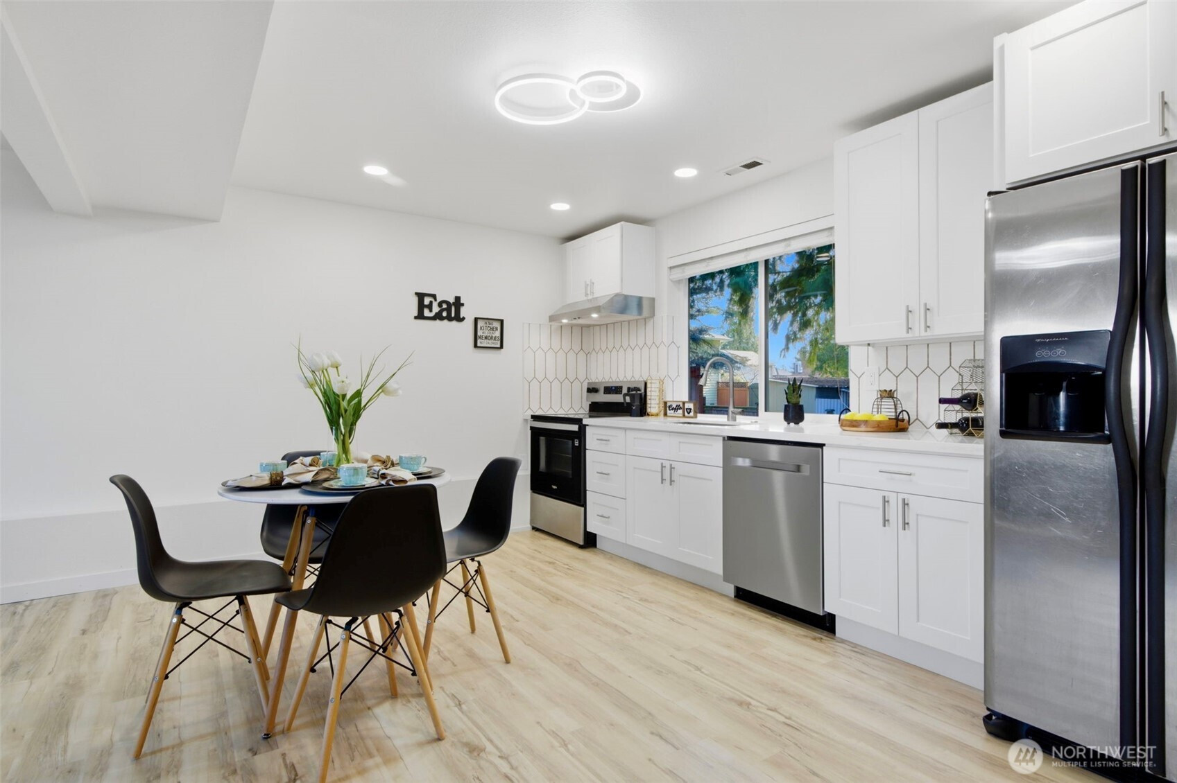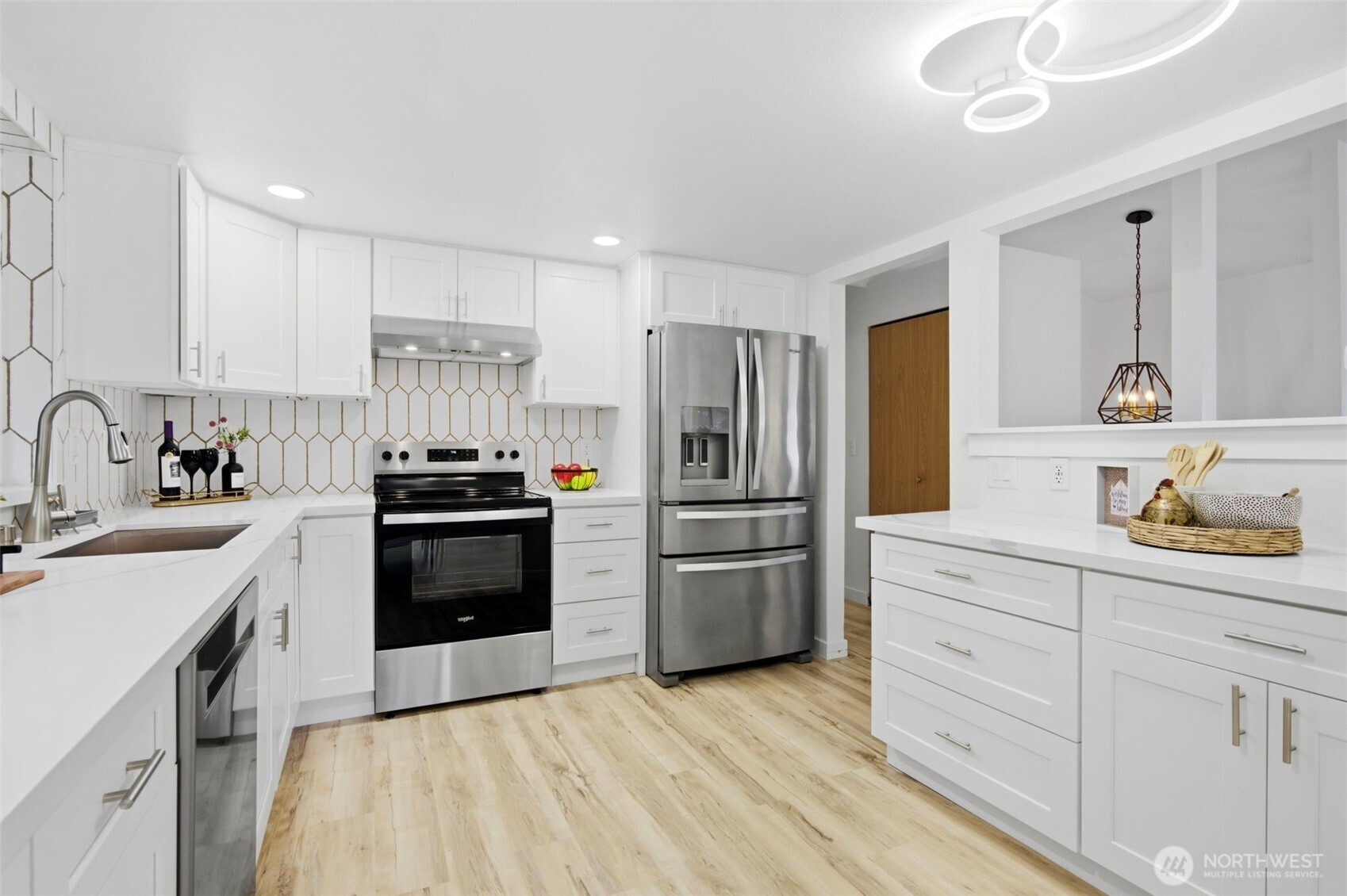 Located on a quiet cul-de-sac, this well-maintained 4-bedroom, 3-bath home offers 1,924 sq ft of versatile living space on a 7,405 sq ft (.170 acre) lot. The bright living room features a dramatic cathedral ceiling and cozy fireplace, creating a warm and inviting atmosphere. A deck just off the main dining area and kitchen provides seamless indoor-outdoor flow for entertaining. The lower level offers excellent flexibility with a bedroom, bathroom and spacious family room, making it ideal for a potential mother-in-law suite.Separate kitchens and laundry areas provide outstanding opportunity for rental income or multigenerational living. Extensive updates include new lighting, fresh interior paint, new electrical, new flooring, new deck. The lower and upper kitchens were updated in December 2025. Furnace was installed at end of 2024. Siding and exterior paint were completed in 2021, and bathrooms were fully updated in 2022. Conveniently located near Spruce Park and within the Edmonds School District, just minutes to Costco, Fred Meyer, Alderwood Mall, Walmart, Target and numerous dining options. Easy access to I-5, I-405 and light rail makes commuting simple. This home combines functionality, modern updates and an excellent location in one attractive package.
