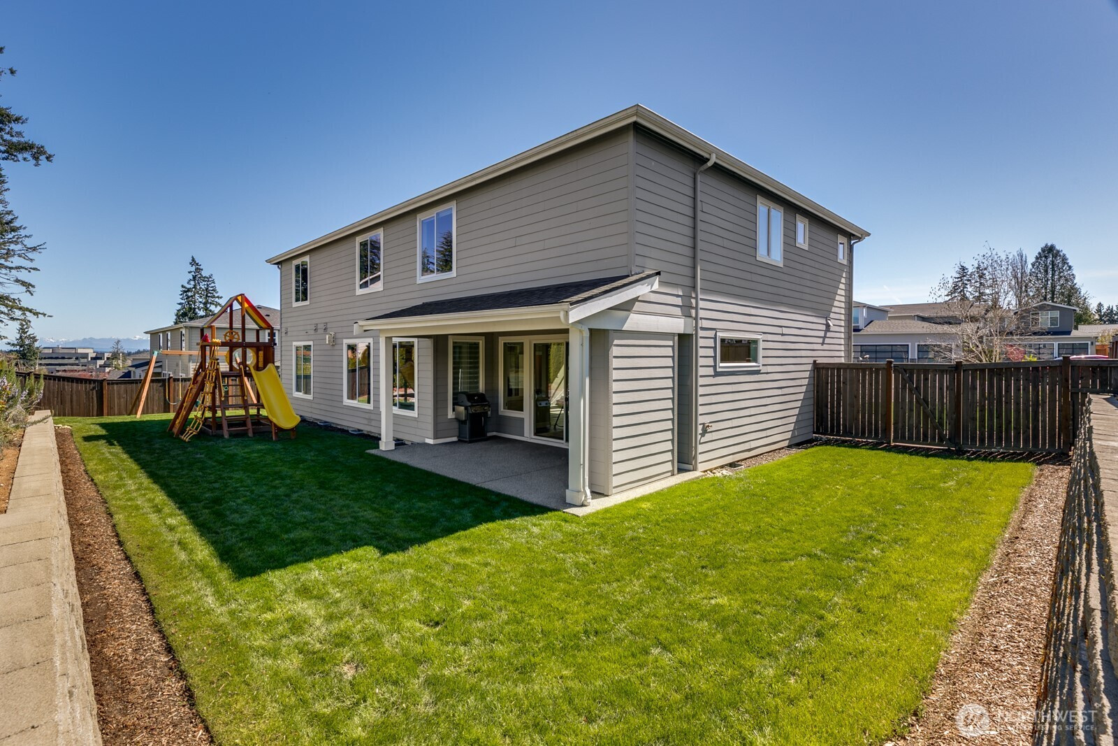 Just listed! Immaculate like new home mountain view home. Prime location just a few blocks to the Light Rail & Alderwood Mall. Enjoy 3,732sf of spacious luxury living. Beautifully situated on the 2nd largest lot in the highly sought after Heritage Estates community. Over $200k of designer upgrades make this impeccable home a dream come true! From dramatic vaulted ceilings that welcomes you home, to designer chandeliers & elegant window blinds to gorgeous hardwoods on both floors and A/C, this home truly has it all. The main floor offers a luxury Guest bedroom w/private bath, a lg Den with French doors for the ideal home office, handy powder bath and huge living room for relaxing around the oversized gas fireplace. The stunning entertainment size kitchen will make every meal a delight w/abundance of custom cabinets, massive island w/modern pendant lights & walk in pantry. The spacious dining room leads to a lg covered patio w/a gas fireplace for year-round outdoor enjoyment! Upstairs, French doors invite you to the exquisite Primary Ensuite complete w/a sitting area & spa inspired bath w/custom WIC. A huge Bonus room captures Mt Rainier & Cascade views. 4 total upper bedrooms & deluxe laundry room offers space for everyone. Outside, the huge yard awaits good times w/beautiful landscaping, irrigation & mtn views! Ultimate 3-car garage w/lofted storage. Outstanding location just 1 light away from I-5, shops, groceries, parks & Rec Center w/pool. Edmonds School District!