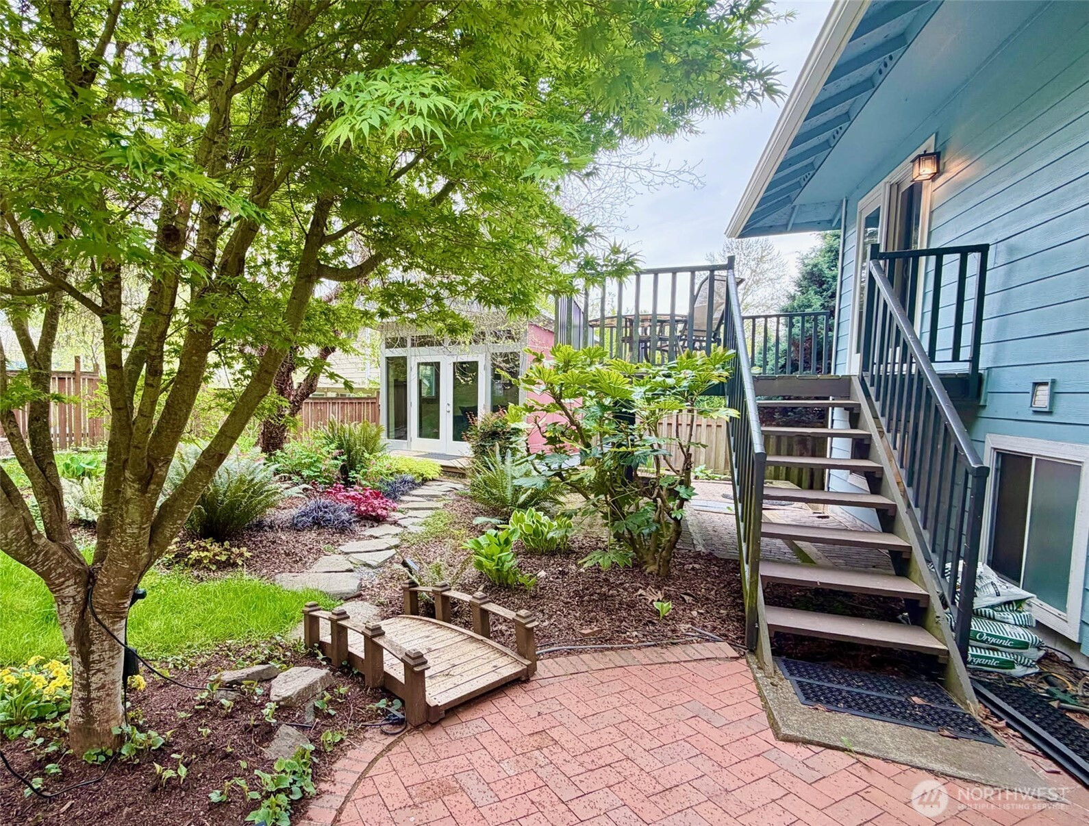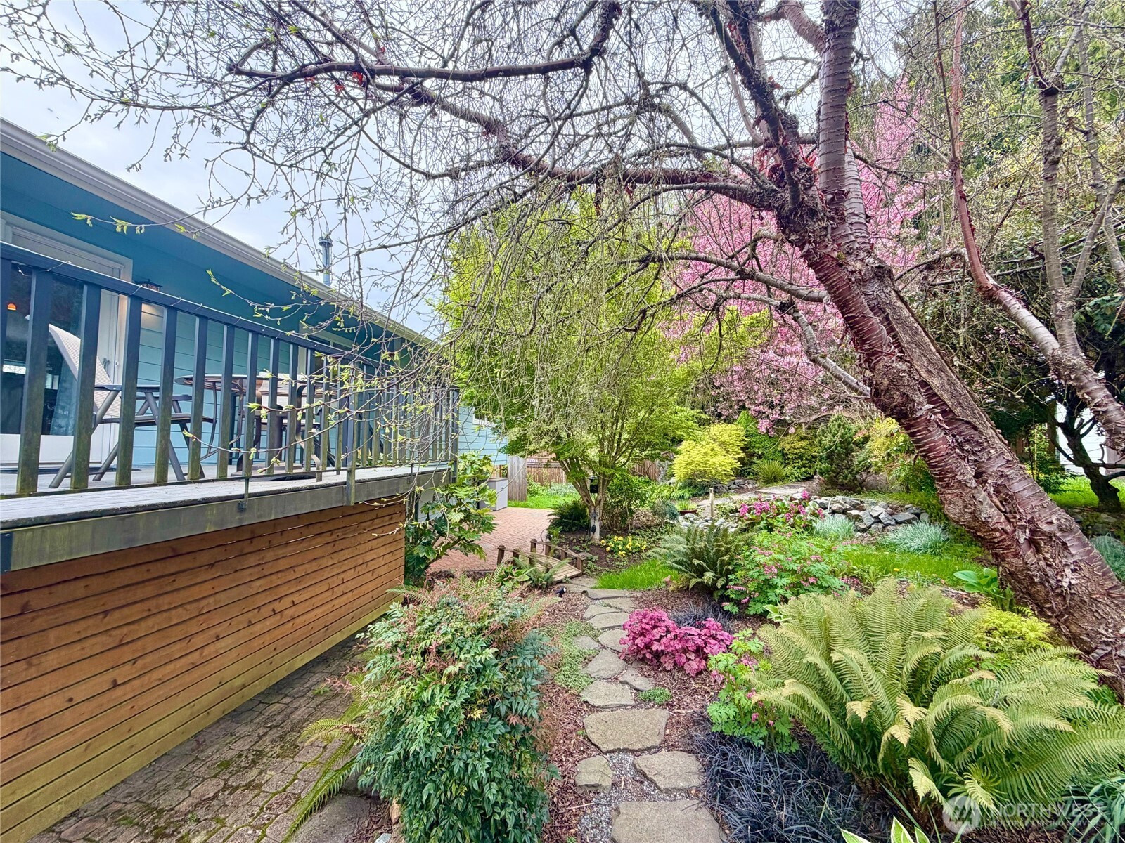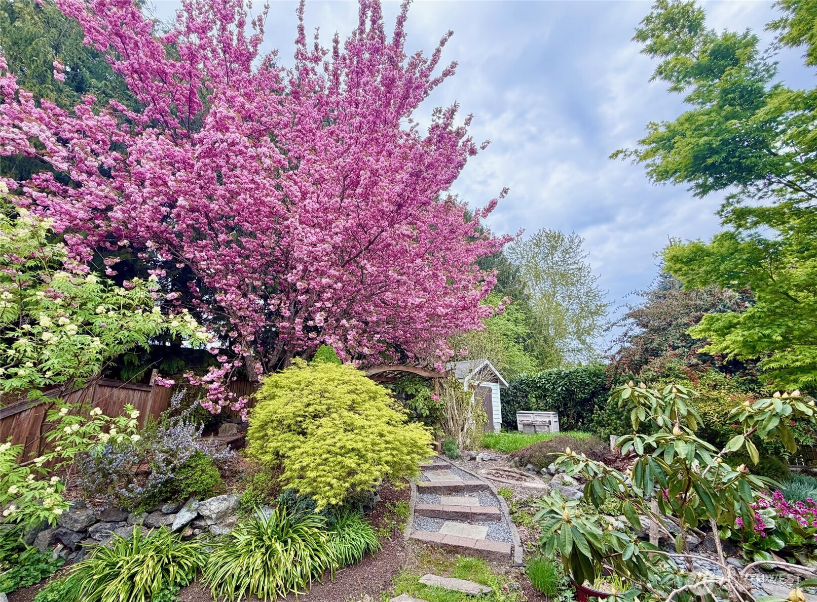 Tucked on a quiet cul-de-sac in a fantastic neighborhood, this beautifully maintained Lynnwood split-level lives large with a gas fireplace, sun-filled living room, a deck with perfect afternoon shade for entertaining, and an open concept kitchen with skylight to keep your winters bright, with double pane windows throughout. Three bedrooms, 2.5 bathrooms, a primary suite with walk-in closet and private bathroom. Downstairs? Total flex space: Movie nights, home gym, play place, office, guest hangout—you name it. EV-ready plug in with an extra-large 2-car garage with plenty of storage space. New vinyl plank flooring, fans and A/C for those heat stretches. Elegant touches with crown molding and wainscotting. And an extra bonus: 30-year roof with ~20 years remaining. The backyard sanctuary is anchored by a show-stopping Red Paperbark Birch, lush with mature landscaping. Enjoy your mornings on the deck with warm beverage in hand and birds as your morning soundtrack. The modern glass-door outbuilding is your yoga studio, meditation space, reading nook or most serene work from home setup ever. A second insulated shed provides even more storage. It’s peaceful, it’s magical, and it’s ready for long spring mornings and summer evenings under the trees. Just minutes from Lynnwood Light Rail, the Interurban Trail, pickleball courts, Whole Foods, Costco, REI, and I-5. A home that feels like a retreat and lives like a hub.