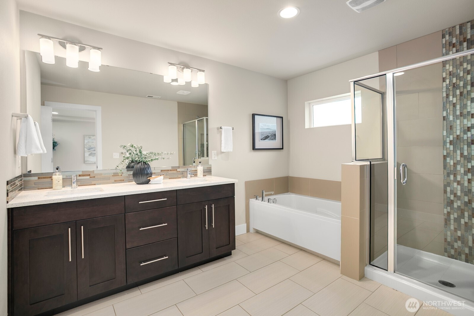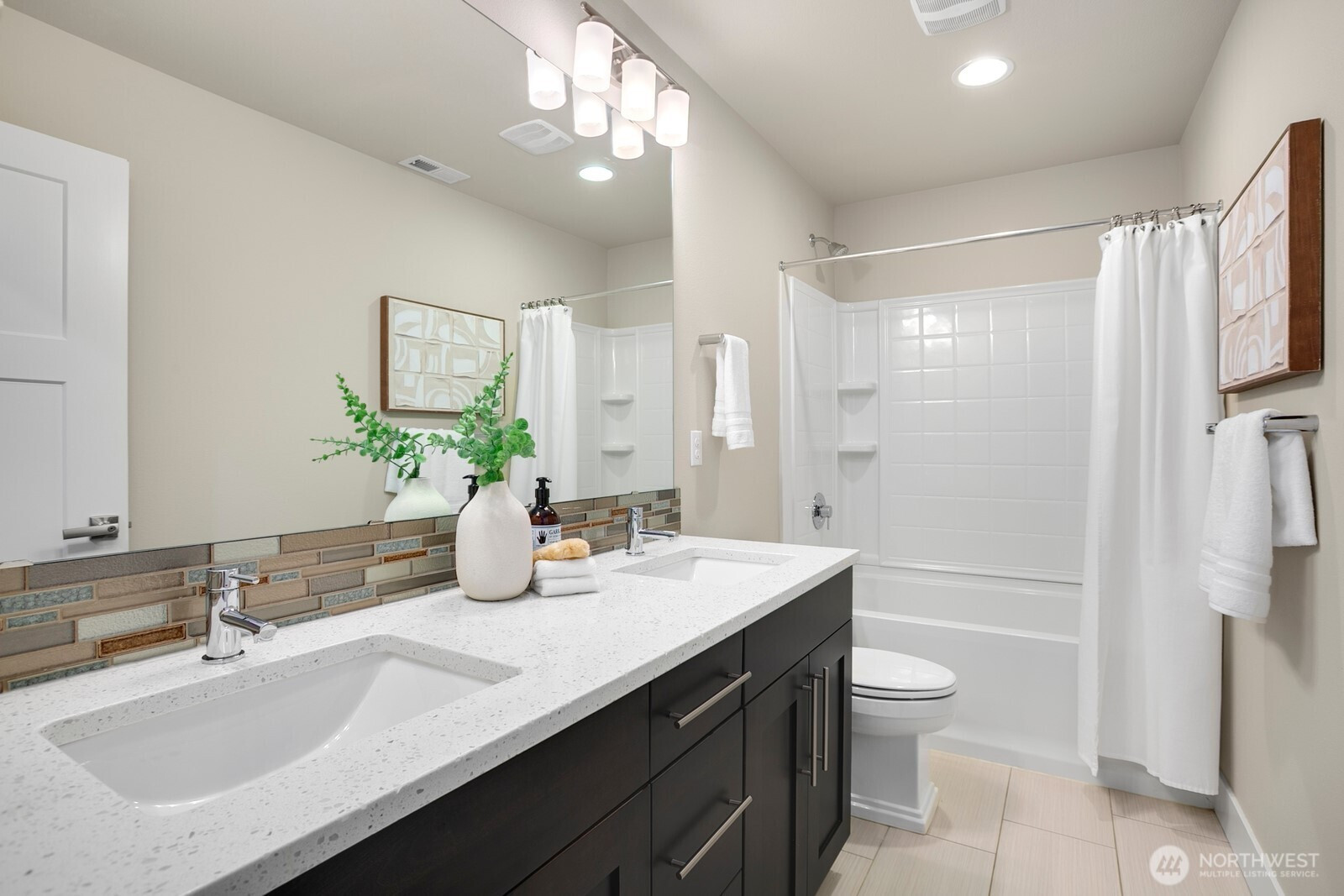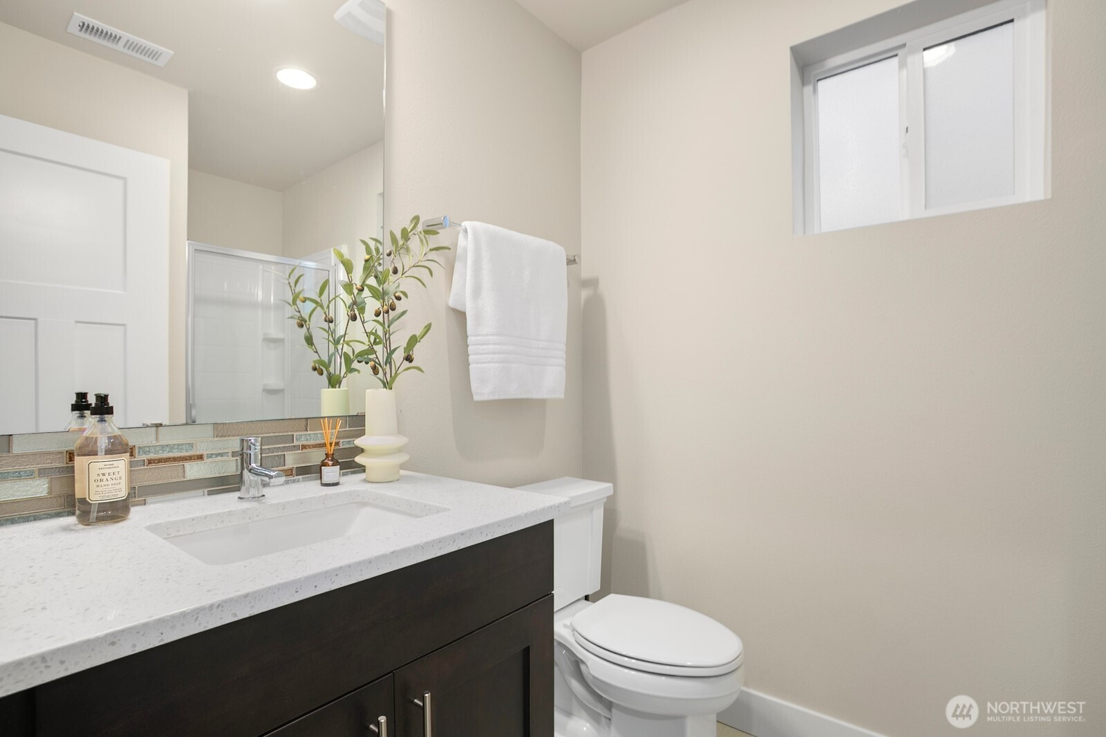 Discover elevated living in this elegantly designed, north facing home, perfectly positioned in one of Bothell’s most desirable neighborhoods within the renowned Northshore School District. Recently refreshed with tasteful paint touch-ups and meticulously maintained, this 5 bedroom, 2.75 bath residence showcases a thoughtfully planned layout that harmonizes modern comfort with understated sophistication. A main level bedroom with a ¾ bath provides flexibility for guests or multi generational living. At the heart of the home, the gourmet kitchen impresses with sleek quartz countertops, a statement 5 burner cooktop with extraction hood, soft close cabinetry, designer pendant lighting, and an expansive pantry seamlessly flowing into grand, light filled living spaces highlighted by soaring ceilings and abundant natural light. Upstairs, the serene primary suite features a private balcony, spa like 5 piece bath, and a generous walk in closet. Designed for modern living, the home also features energy efficient heating and cooling systems for year round comfort. The low maintenance backyard, enhanced with stylish pavers, offers a versatile outdoor setting perfect for entertaining in any season. Ideally located near top rated schools, parks, shopping, dining, and major tech hubs, this pre inspected home offers an exceptional blend of tranquility, convenience, and enduring appeal. Welcome Home!