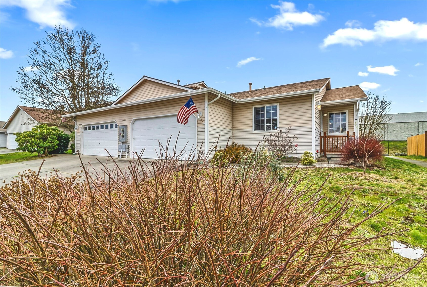 Beautiful single-level condo offering comfort and convenience in a fantastic layout. This charming home features 3 bedrooms and 1.75 baths, with a vaulted living and dining area that feels light and open, complete with a slider leading to the private patio.The spacious kitchen provides abundant cabinetry and generous counter space, perfect for everyday living and entertaining. The primary suite includes a private bath and walk-in closet. You’ll also appreciate the dedicated laundry room and thoughtful storage throughout. Enjoy relaxing on the covered front porch or spending time in the fully fenced backyard with garden shed. A two-car garage adds convenience and extra storage. Community amenities include a playground, basketball court, park, and walking trails. Ideally located in the desirable Smokey Point area, just minutes from I-5, shopping, and dining.
