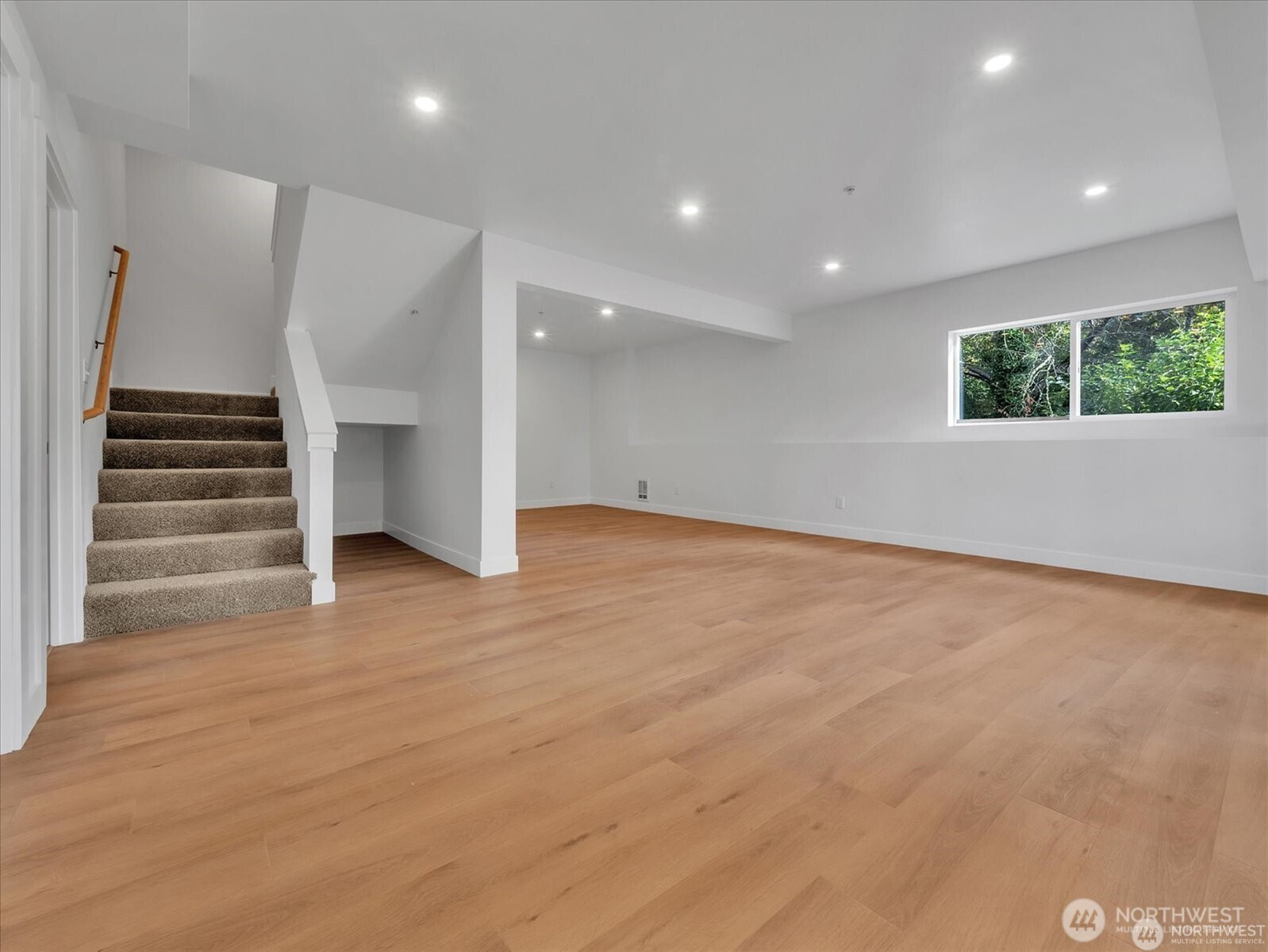 Tucked away at the end of a peaceful private lane, this spacious home offers a welcoming blend of style and comfort. The tiled entry opens to an airy floor plan featuring hardwood floor, gas fireplace, and a kitchen with a breakfast bar. Newly finished daylight basement, tall ceilings, decks on every level enhance the sense of spacious living. The primary suite includes a walk-in closet and luxurious bath. Home is perfect for entertaining; the rich finishes and generous room sizes provide both privacy and elegance. Enjoy the quiet only a green belt next to your backyard can provide. Near Meadowdale Park and beach access. In the award-winning Edmonds school district. Easy access to shopping & freeways.