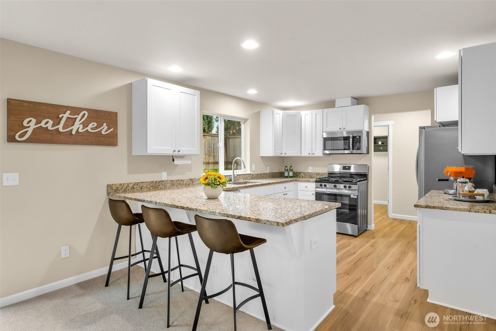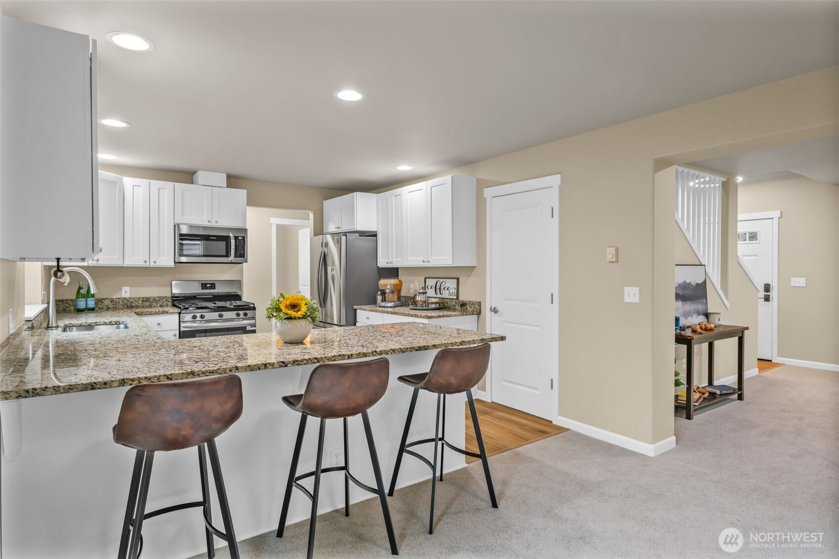 Beautiful Lake Stevens Home! This 3 bedroom, 2.5 bath home offers a well-planned design to make the most of its space! The kitchen shines with brand-new white cabinetry, SS appliances and luxury vinyl flooring that flows throughout. Upstairs, spacious bedrooms provide plenty of room to unwind. Brand new range, microwave, paint, carpet and LVP flooring! Great yard with patio space. Electric charging ready. Located in a great neighborhood that is close to everything. Minutes from multiple parks, dog park, highly rated schools, restaurants, trails and everything Lake Stevens and Frontier Village has to offer. Easy access to Highway 9, Highway 2 and I-5. FHA loan potentially assumable