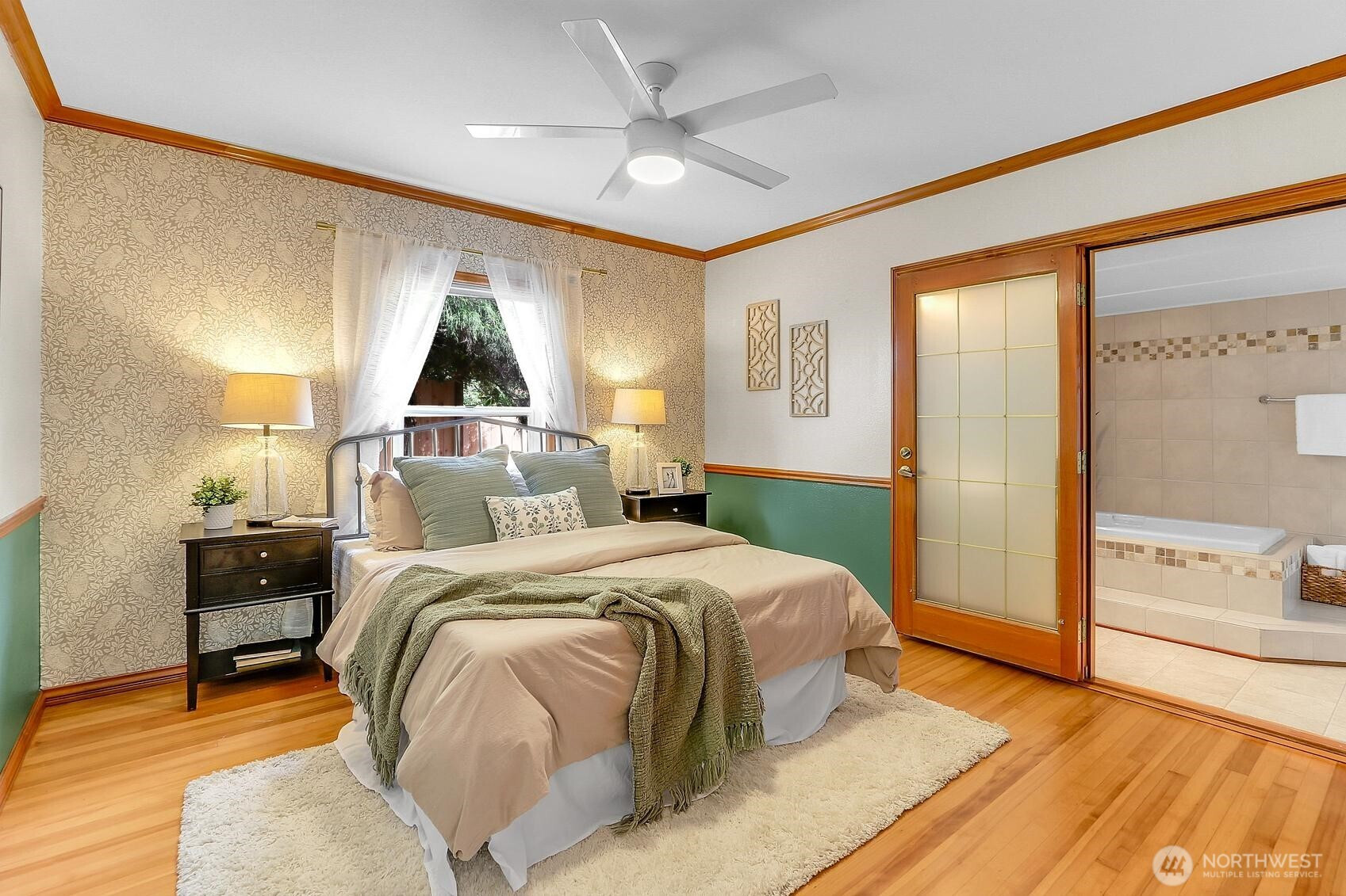 Welcome home to this charming home in the heart of Snohomish. Charm rings throughout as you and your guests are welcomed through either the front porch's French doors or the front door. The mainfloor has many attributes you'll just love; like a primary bedroom with on-suite and oversized walk-in closet, a secondary bedroom (staged as an office), an additional full bath, kitchen w/ new quartz countertops and gas cook top. Upstairs makes great use of space with a TV/gaming area (with separate entrance) with adjoining adorable bedroom, and across the hall is the other upstairs bedroom. Need a bit more room? Don't miss the basement which has separate entrance for a bonus area/extra storage. Off-street parking that fits 2 full size trucks.