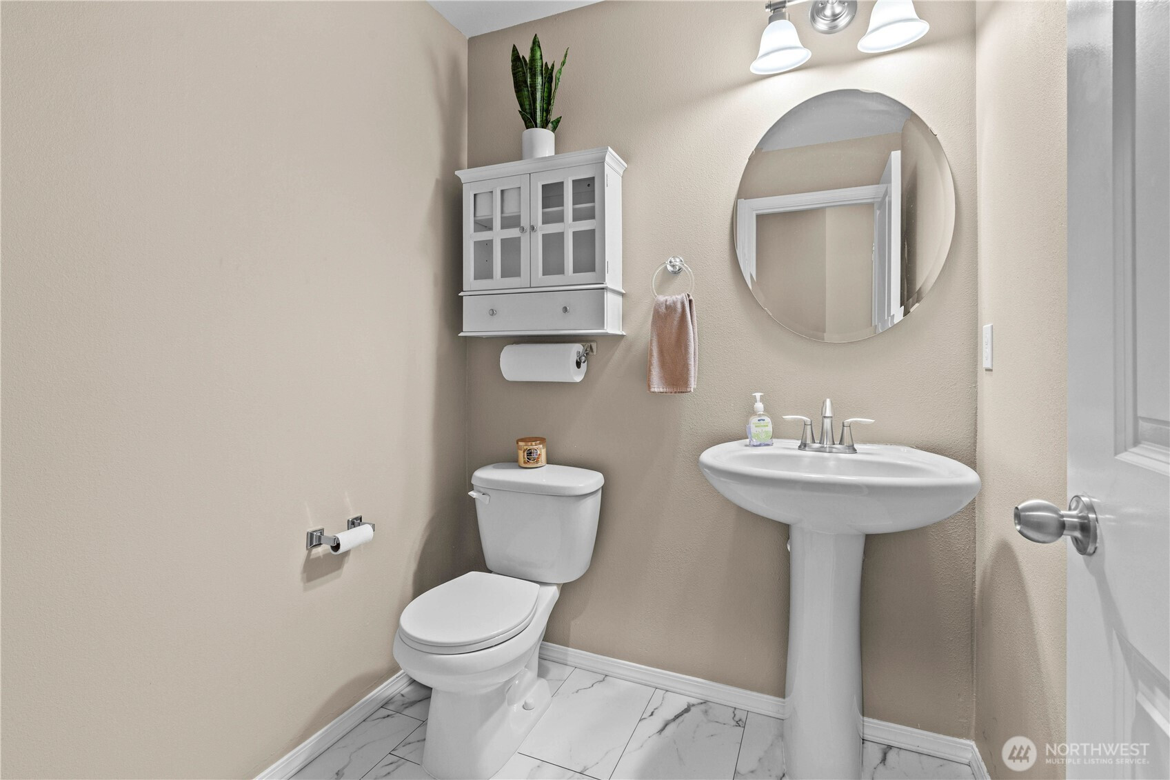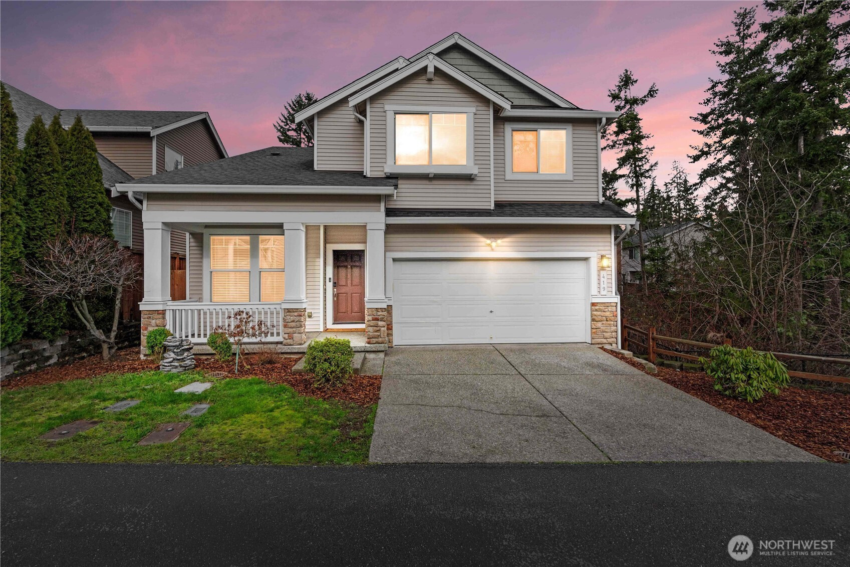 Welcome to this stunning home at The Crossings, located next to a greenbelt. Step inside to find beautiful new paint and fresh new carpet, complementing gorgeous hardwood floors and vaulted ceilings. The kitchen has a spacious island, pantry & granite countertops, enhanced by modern stainless steel appliances. The master bedroom features a large walk-in closet & a lavish 5-piece bath with a soothing soaking tub. Three additional well-sized bedrooms offer flexibility, and a recently remodeled downstairs bathroom adds modern elegance. Enjoy a 2-car garage with electrical outlet for EV charging, new water heater and a fully fenced, low-maintenance yard. The community offers playground, guest parking, and pet waste stations. Conveniently located near I-5, 405, Boeing, Park and Ride, athletic club, shopping, dining and amenities, this home perfectly blends comfort & convenience.