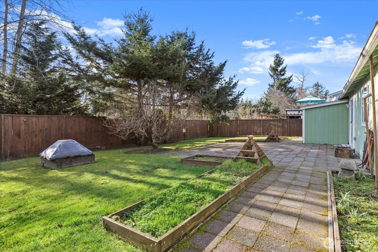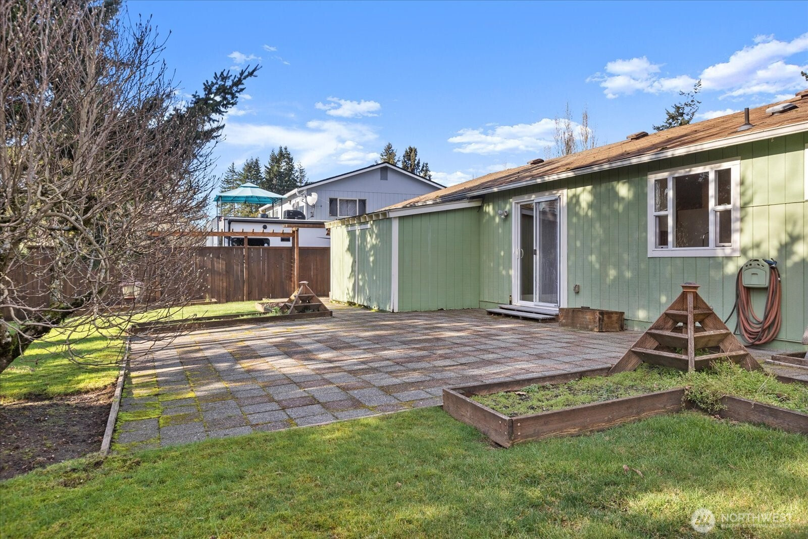 A wonderful alternative to condo living without the added HOA fees! This charming single-family home is tucked away on a quiet cul-de-sac and offers a beautifully landscaped, fully fenced yard with spacious patio, garden shed, and inviting fire pit, perfect for relaxing or entertaining. The oversized two-car garage provides extra storage and convenient direct entry into the home. Inside, you’ll find three generously sized bedrooms and a bright, welcoming living room anchored by an expansive window that floods the space with natural light. The beautifully remodeled bathroom shines, with added value and opportunity to easily add a second bathroom, a rare bonus at this price point. Double-pane windows, added insulation, and A/C provide year-round comfort. Pre-inspection available for added peace of mind.