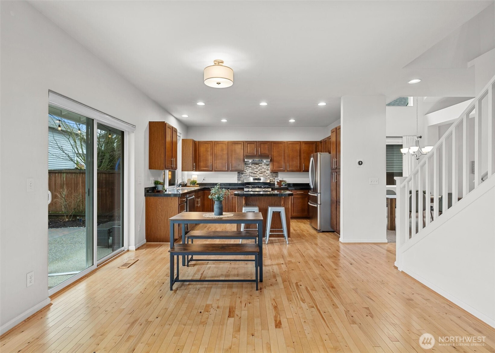 A covered front porch welcomes you inside this 4-bed 2.5-bath home. Vaulted ceilings enhance the formal living & dining rooms, creating a bright, light-filled atmosphere. Hardwood floors flow through the main level, leading to an open kitchen w/eating island, granite tile countertops, breakfast nook & a family room w/cozy gas fireplace. Main-floor 1/2 bath adds convenience. Step outside to a private backyard w/extensive patio work & low-maintenance landscaping. Upstairs an Owner’s suite features a 5-piece ensuite & WIC w/custom organizer. Overlook downstairs as you head to the 3 additional bedrooms, full bath & laundry room. Excellent proximity to I-5, shopping & amenities, all within Mukilteo School District. 2 Car Garage + Pre-Inspected!!