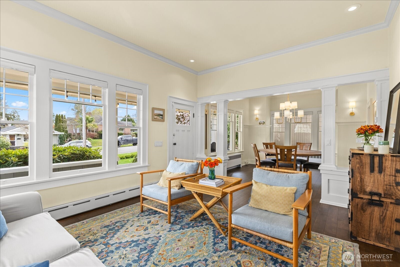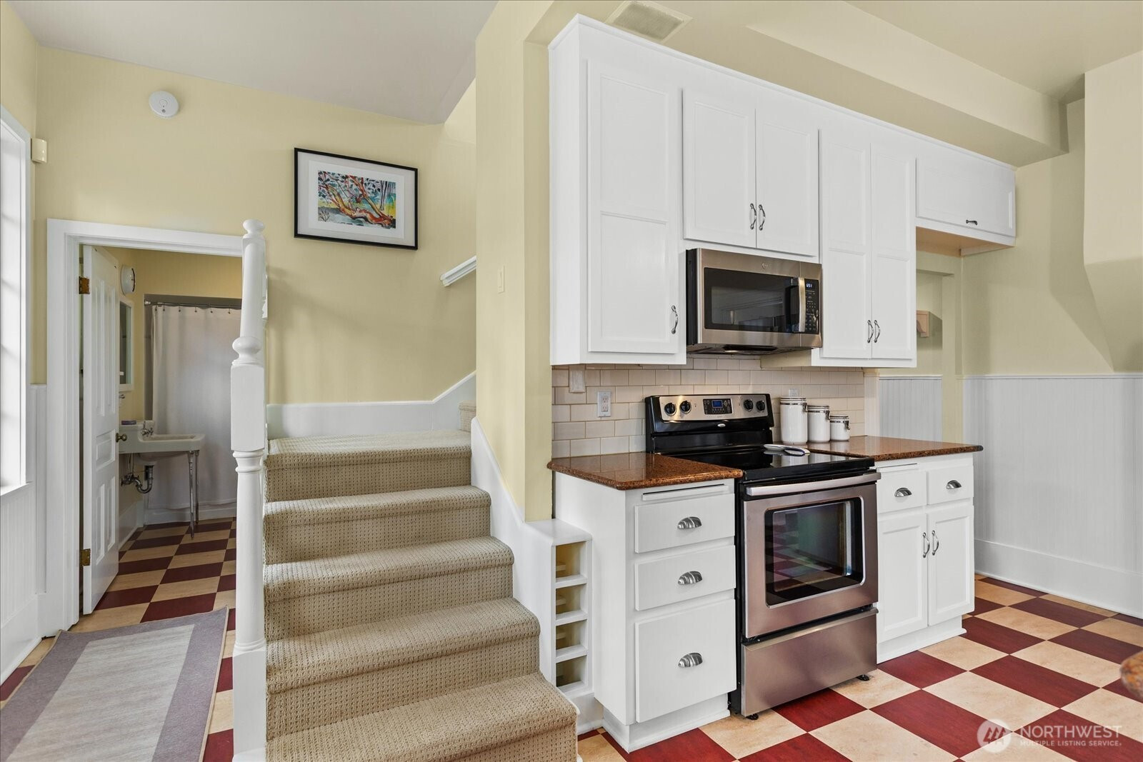 Picturesque 1896 home in the heart of Snohomish! Charming covered front porch welcomes you into the timeless grace of the Wershing House, full of character and thoughtful updates throughout. Engineered hardwoods, updated wiring, new light fixtures, new plumbing fixtures. Updated kitchen with high ceilings, newer appliances, granite counters and plenty of cabinet space. Delightful formal living room and adjoining dining room filled with abundant natural light and period details. Bedroom on main with full bath off living areas, plus an ample laundry room. A wide stairwell leads up to a bright landing- a bonus space perfect for a reading room or play area. Primary bedroom boasts an ensuite full bath- relaxing soaking tub & separate stand up shower. Two additional bedrooms upstairs. Top-down/bottom-up blinds, skylights, and newer carpet. Built-ins throughout the home provide extra storage and harken back to a simpler time. Outside, enjoy a fully fenced backyard with beautiful landscaping, garden beds, and a patio perfect for entertaining or unwinding. The detached 2 car garage adds versatility (a 408 SF bonus room!) possible exercise studio or hobby space- including a wood burning stove...huge potential! The home is situated one block off 'historic designation' street so you can remodel as you wish. Located within walking distance to downtown shops and restaurants, Snohomish Aquatic Center, the library, parks, and Centennial Trail. Your chance to own a piece of Snohomish history!