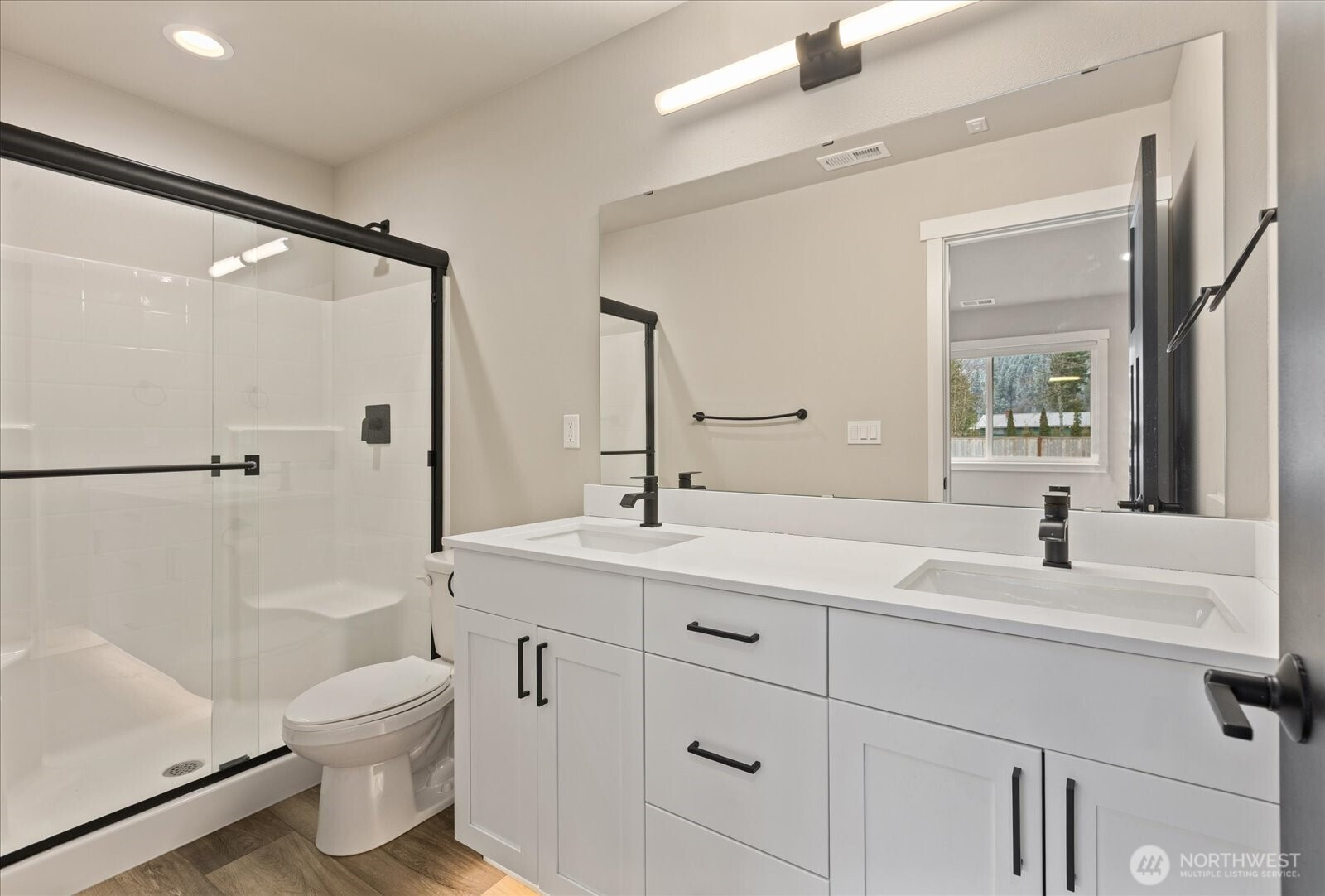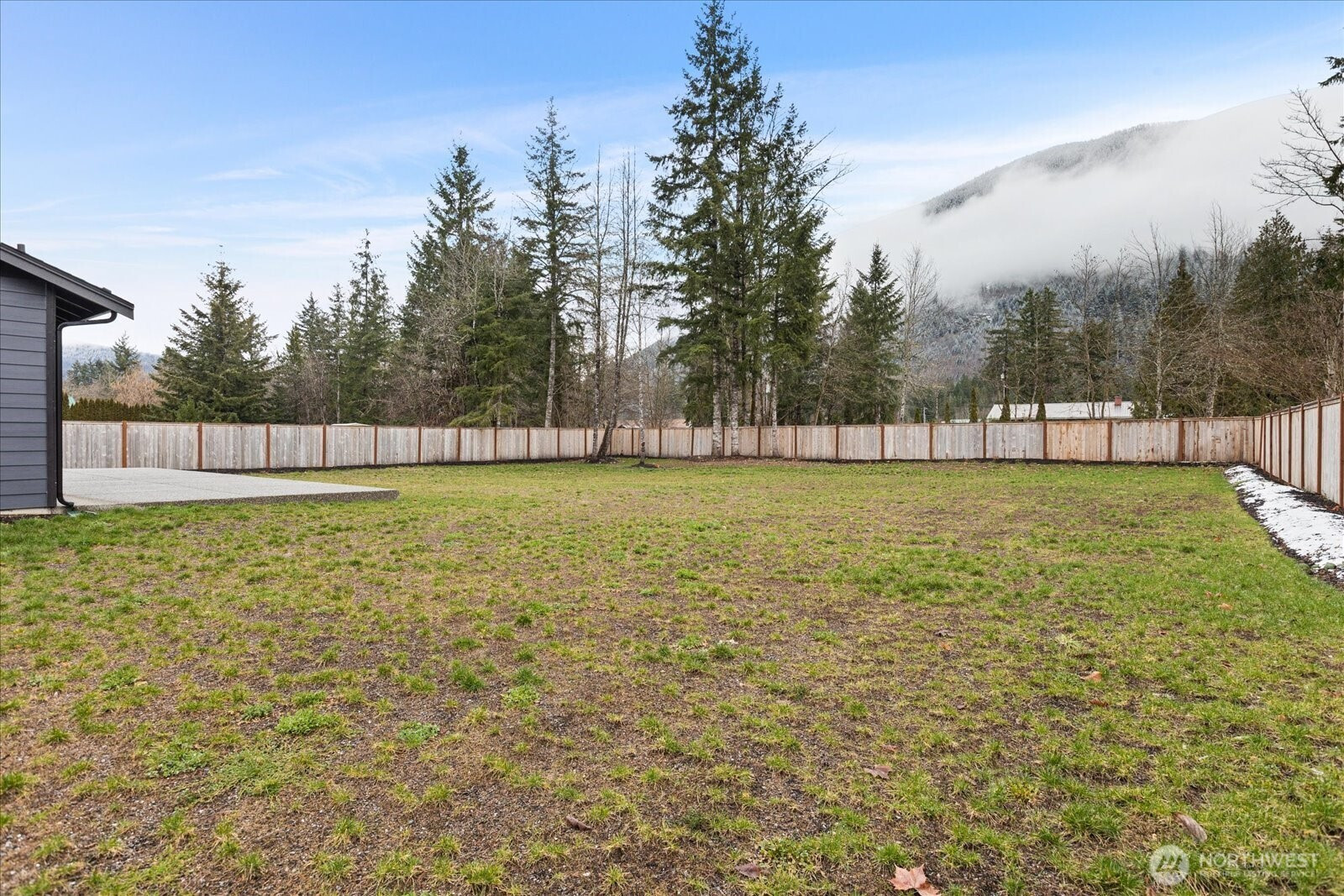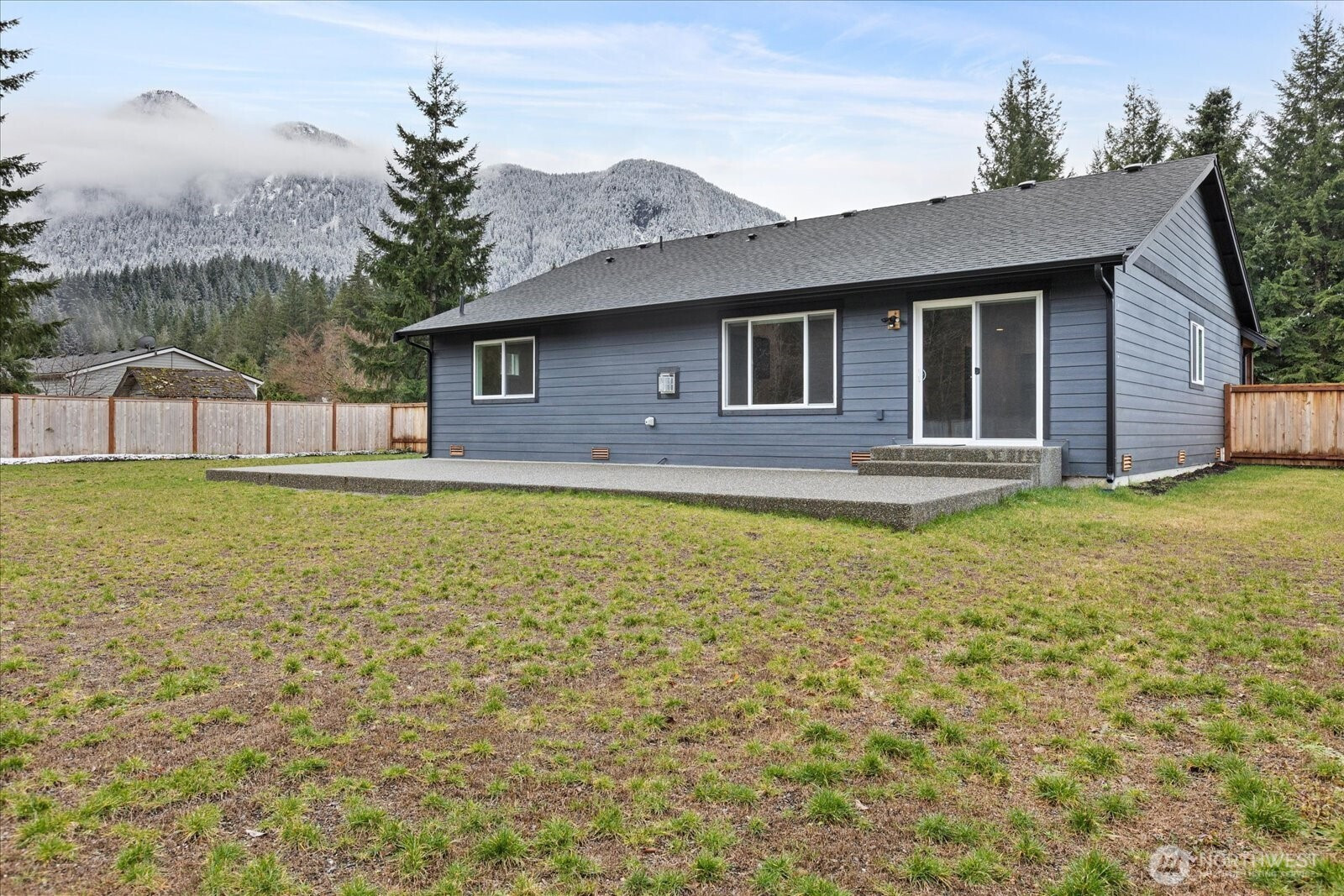 Stunning custom rambler offering exceptional single-level living on a spacious half-acre lot. This 4-bedroom, 2-bath home spans 1,574 SQFT and showcases quality craftsmanship and modern finishes throughout. A welcoming entry, light-filled layout featuring a kitchen designed for both everyday living and entertaining, with ample counter space, quality cabinetry, and a seamless flow into the dining and living areas. A propane fireplace creates a warm focal point in the living room, while the fully ducted heat pump with air conditioning ensures year-round comfort and efficiency. The primary suite provides a peaceful retreat with a well-appointed ensuite bath and generous closet space. Three additional bedrooms offer flexibility for guests, a home office, or hobby space. Outside, the professionally landscaped and fully fenced yard delivers privacy, usability, and curb appeal, with plenty of room for outdoor entertaining, gardening, or play. The property includes an approved drain field for a future 1-bedroom DADU, offering excellent potential for multigenerational living, guest accommodations, or rental income. Set on a charming looping street, the home captures gorgeous mountain views and enjoys a convenient location just moments from local schools, parks, and ball fields. This beautifully finished home blends comfort, functionality, and long-term flexibility in a peaceful setting.