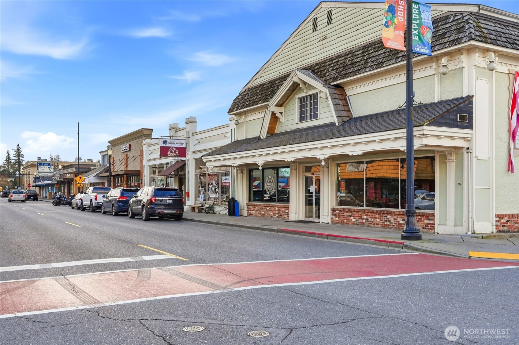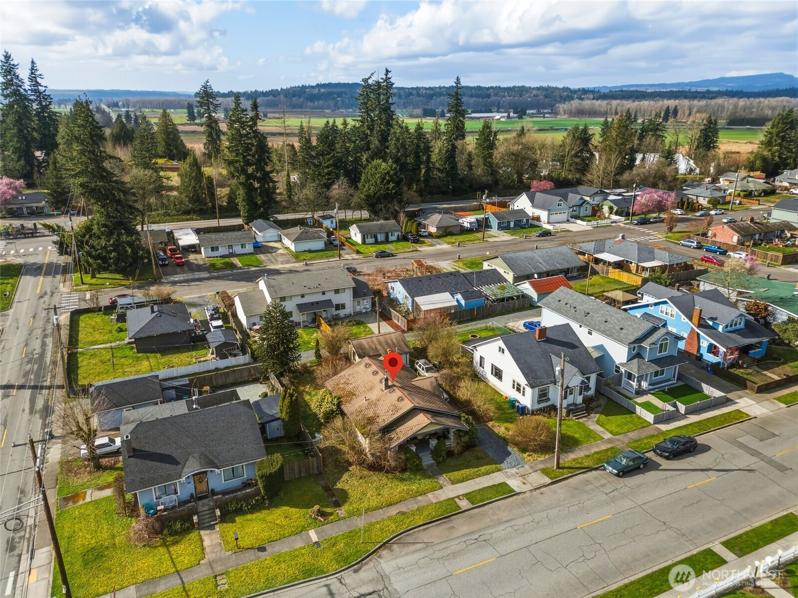 OPPORTUNITY KNOCKS! Step into the charm of yesteryear with this 1933 Craftsman bungalow in the heart of Arlington. Just a short stroll to downtown shops, restaurants, and local events, this home offers the perfect blend of small-town living and everyday convenience. Original hardwood floors add warmth and character, while the cozy gas free-standing stove creates an inviting focal point in the main living area. The kitchen features an eating nook perfect for morning coffee or casual dinners, with room to reimagine and make it your own. The main floor offers two bedrooms and one bathroom. Downstairs, the basement includes a laundry area and provides exciting potential to finish for additional living space. Modern updates include gas forced air heat, newer HWT, vinyl siding & vinyl double pane windows. Situated on a rare double lot, this property truly stands out. The detached one-car garage with shop space opens the door to endless possibilities — hobbies, storage, or potential future DADU conversion (buyer to verify).Whether you’re looking to build sweat equity, invest, or restore a timeless 1933 charmer to its full glory, this Arlington home is brimming with opportunity. Bring your vision and unlock the potential.
