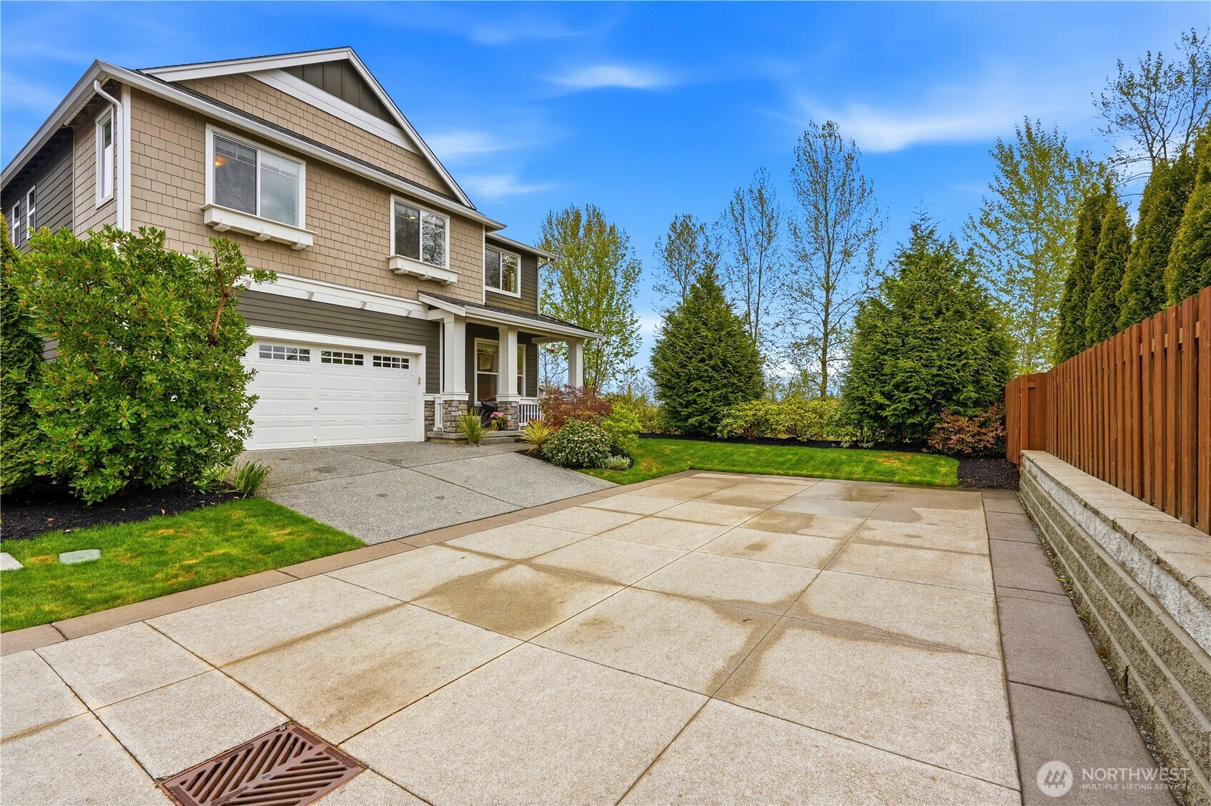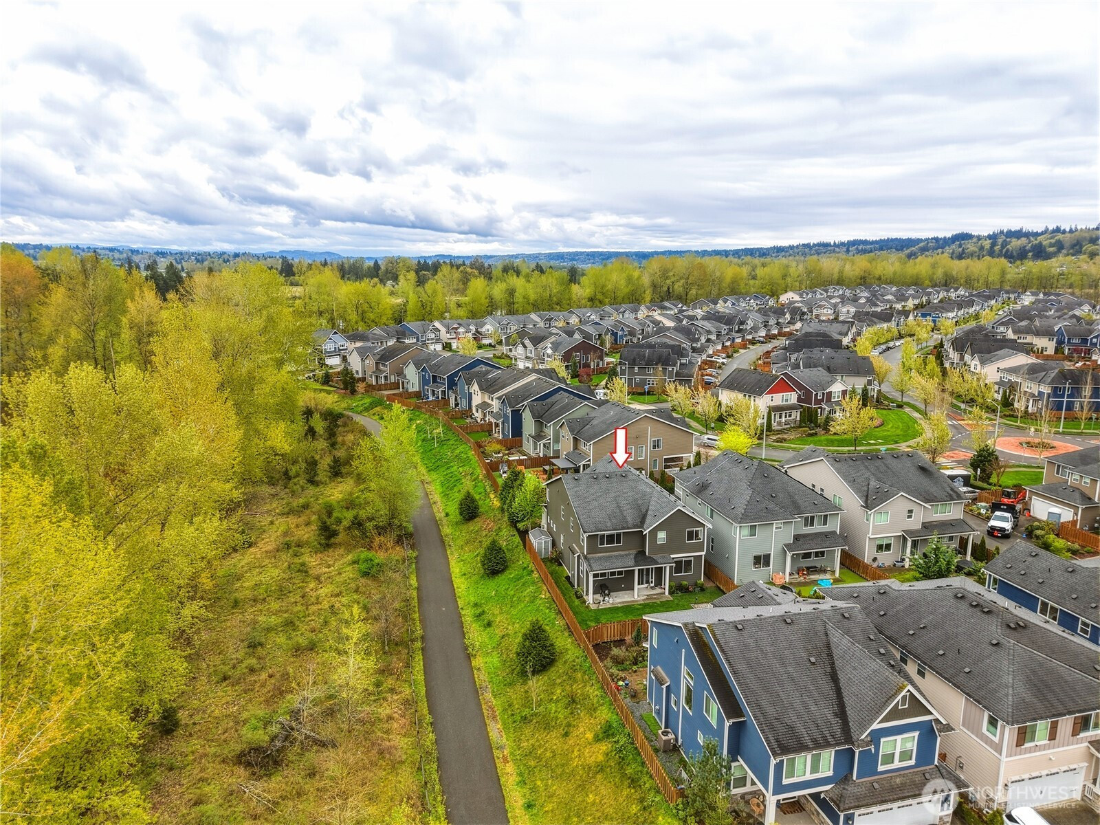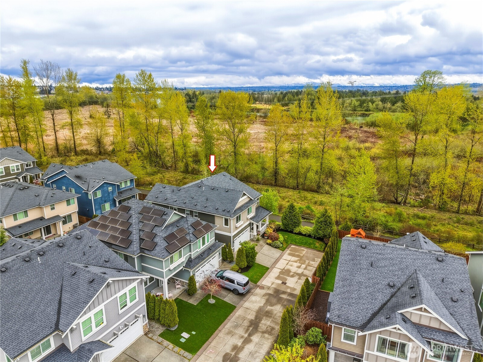 Rare find in the coveted Overlook at Riverfront community! This stunning 2907 sq ft home offers space, privacy, and upgrades today's buyers are looking for. Tucked at the end of the street, enjoy true seclusion with no through traffic, plus an impressive 6 parking spaces total including 2 car garage, 2 car driveway, and 2 rare private off street spots. Built in 2017, the open main level boasts soaring ceilings and a great room feel with beautiful laminate hardwood floors, ceiling fan, and custom fit white blinds throughout. The kitchen impresses with stainless appliances, granite countertops, and soft-close drawers and cabinets. A main level bedroom paired with a 3/4 bath makes for an ideal guest suite or home office. Upstairs, plush carpet adds warmth to the remaining bedrooms served by two full baths. The primary suite is appointed with granite countertops and its own en suite bath, offering a private retreat within the home. The oversized 400 sq ft garage includes three ceiling storage systems and a built-in sprinkler control panel. Outside, enjoy a fully landscaped yard with an automated sprinkler system, eave lighting, a generous hardscaped patio, and a garden shed perfect for Pacific Northwest entertaining. Steps from a scenic walking trail along the river. All of this for $975,000 — a compelling value in today's market!