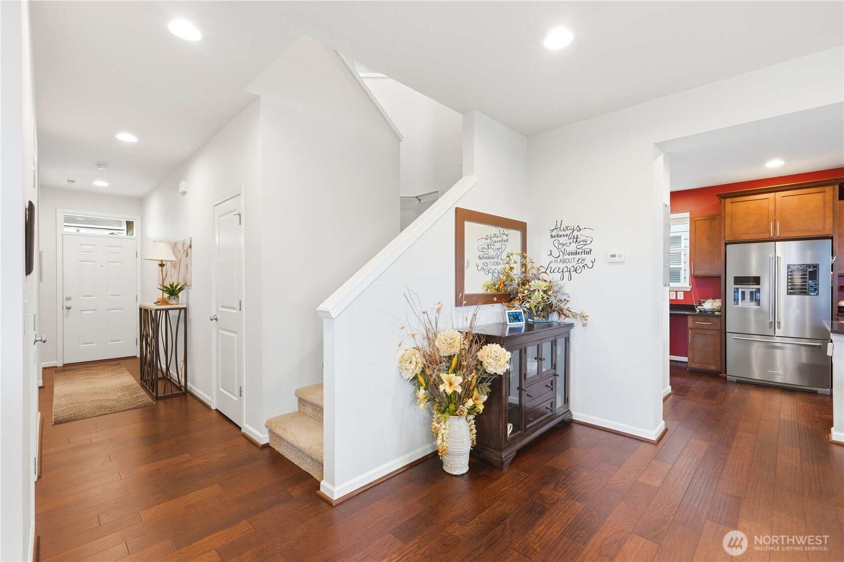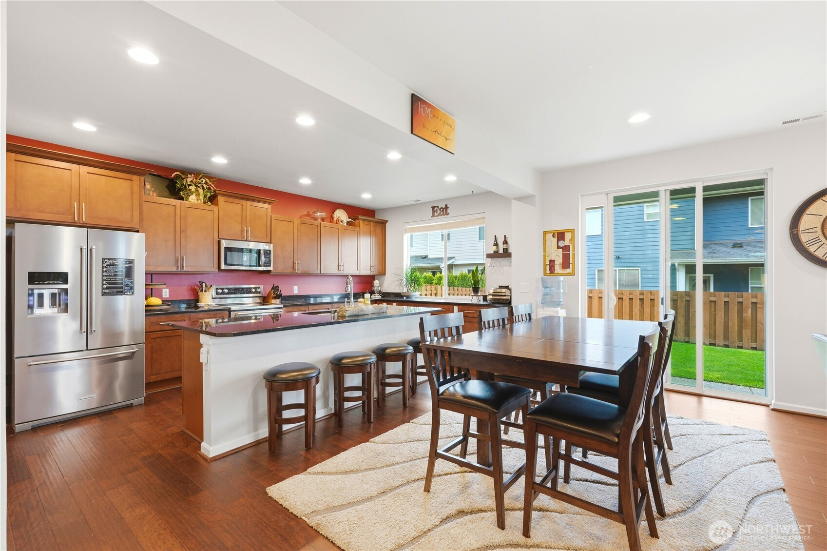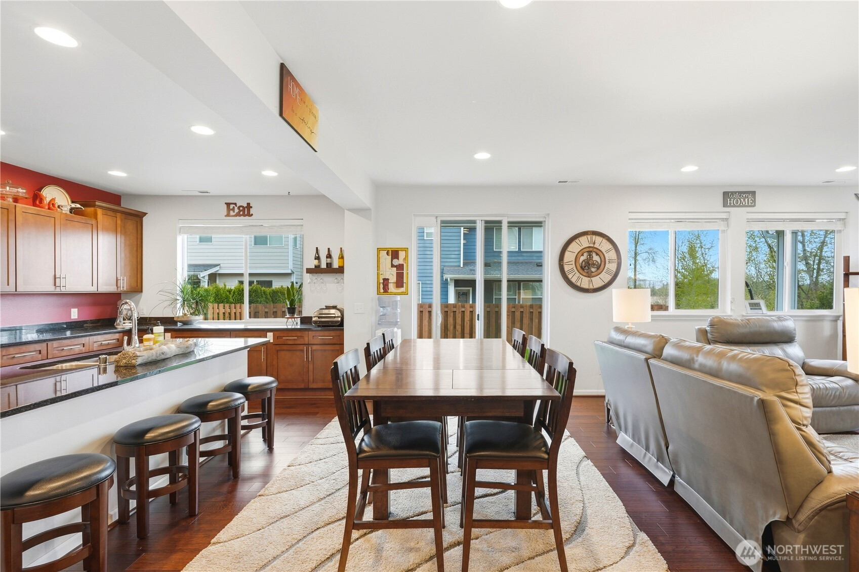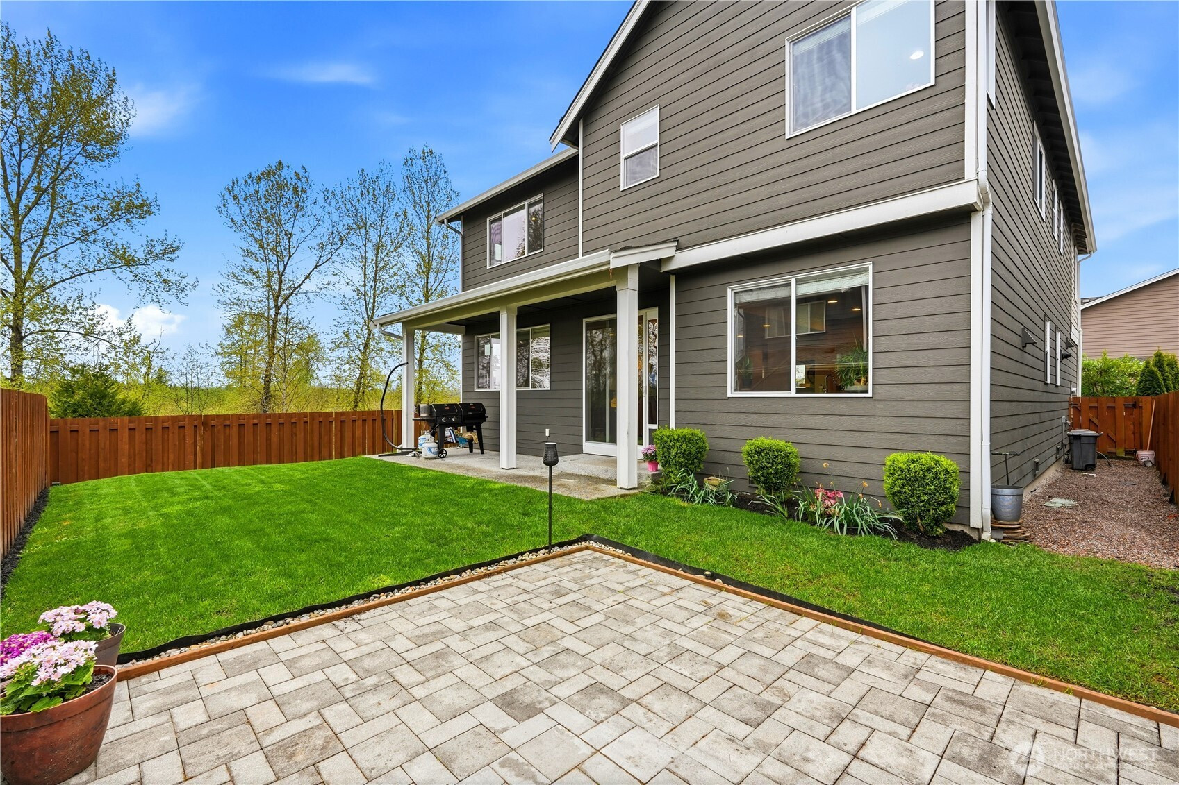 Rare find in the coveted Overlook at Riverfront community! This stunning 2907 sq ft home offers space, privacy, and upgrades today's buyers are looking for. Tucked at the end of the street, enjoy true seclusion with no through traffic, plus an impressive 6 parking spaces total including 2 car garage, 2 car driveway, and 2 rare private off street spots. Built in 2017, the open main level boasts soaring ceilings and a great room feel with beautiful laminate hardwood floors, ceiling fan, and custom fit white blinds throughout. The kitchen impresses with stainless appliances, granite countertops, and soft-close drawers and cabinets. A main level bedroom paired with a 3/4 bath makes for an ideal guest suite or home office. Upstairs, plush carpet adds warmth to the remaining bedrooms served by two full baths. The primary suite is appointed with granite countertops and its own en suite bath, offering a private retreat within the home. The oversized 400 sq ft garage includes three ceiling storage systems and a built-in sprinkler control panel. Outside, enjoy a fully landscaped yard with an automated sprinkler system, eave lighting, a generous hardscaped patio, and a garden shed perfect for Pacific Northwest entertaining. Steps from a scenic walking trail along the river. All of this for $975,000 — a compelling value in today's market!