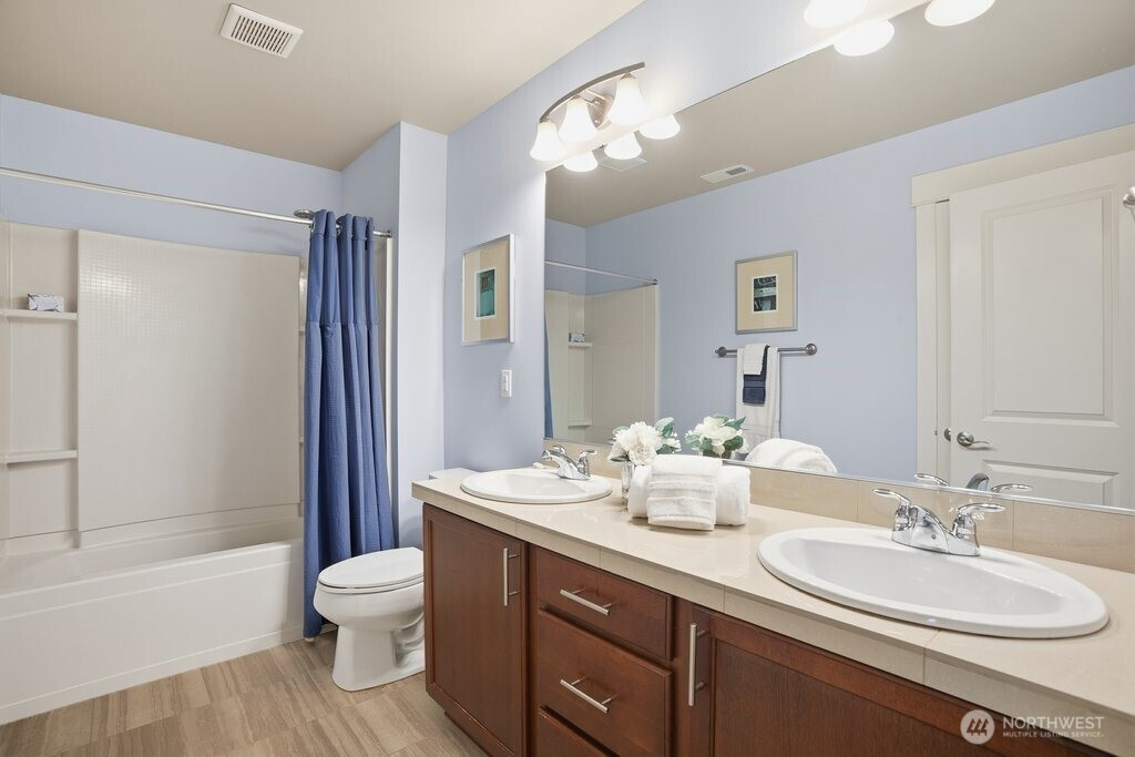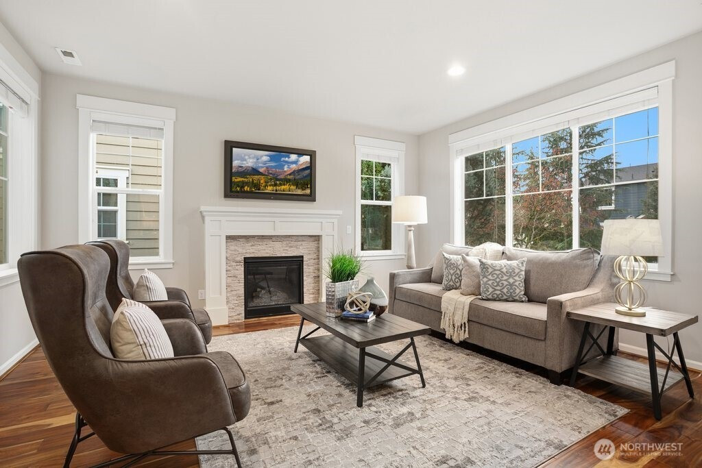 Nestled within the highly regarded Northshore School District, Timber Creek is a sought-after master-planned community celebrated for its thoughtful design and picturesque surroundings. Residents enjoy access to a community clubhouse with pool, miles of walking trails, and 50 acres of preserved open space, creating a peaceful and connected lifestyle. This inviting two-story home offers charming curb appeal with a tucked-away garage and timeless exterior that enhances the neighborhood streetscape. Inside, a well-designed layout showcases spacious bedrooms and inviting living areas that effortlessly adapt to a variety of needs. Fresh interior paint and new carpet throughout add a crisp, refreshed feel, making the home move-in ready. The generous primary suite features a luxurious ensuite bath and walk-in closet, providing a serene retreat at the end of the day. Well-maintained and designed for everyday living, this home blends comfort and functionality with a warm, welcoming atmosphere. Convenient access to I-5 and I-405 adds to its appeal, making commuting and daily errands simple and efficient.