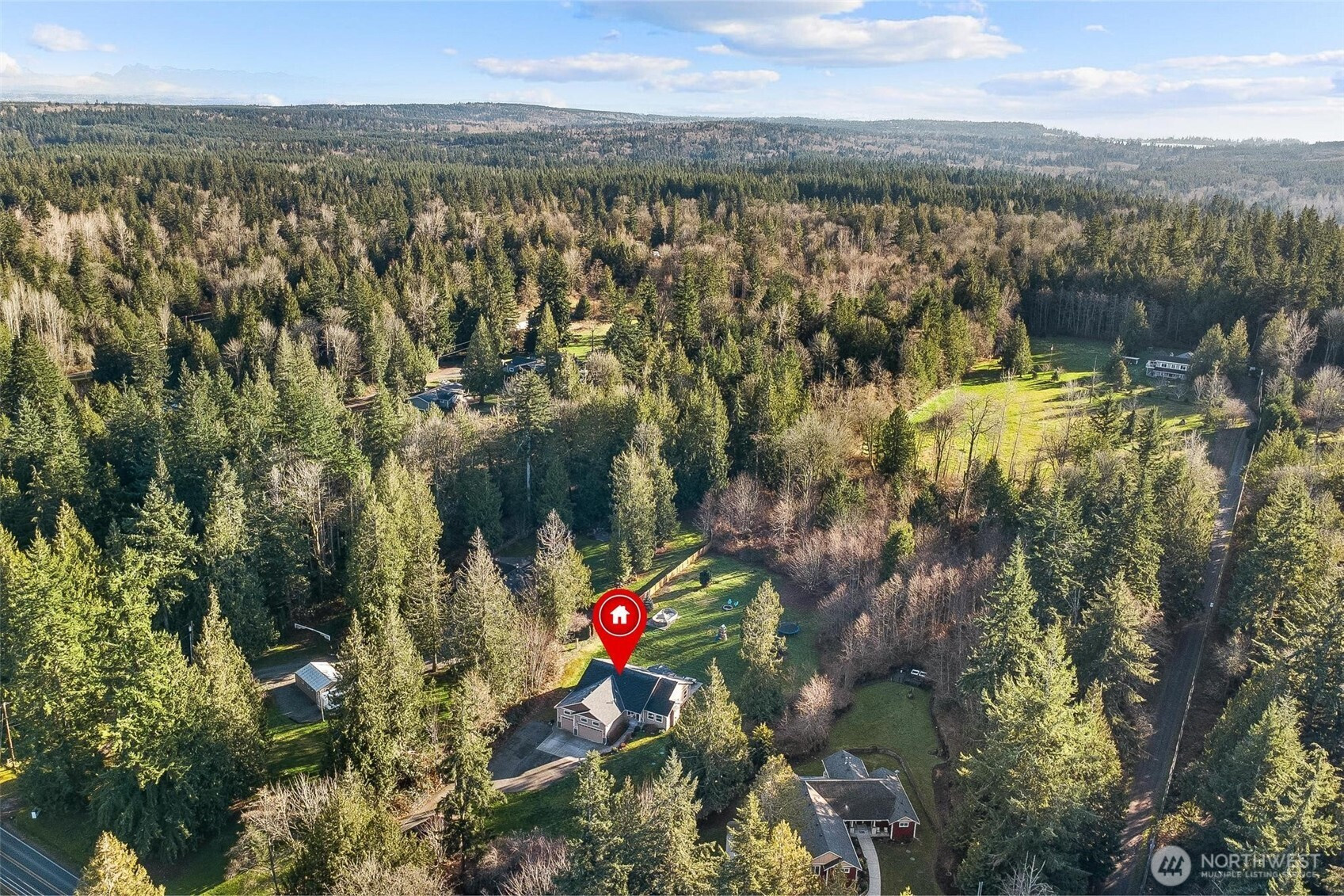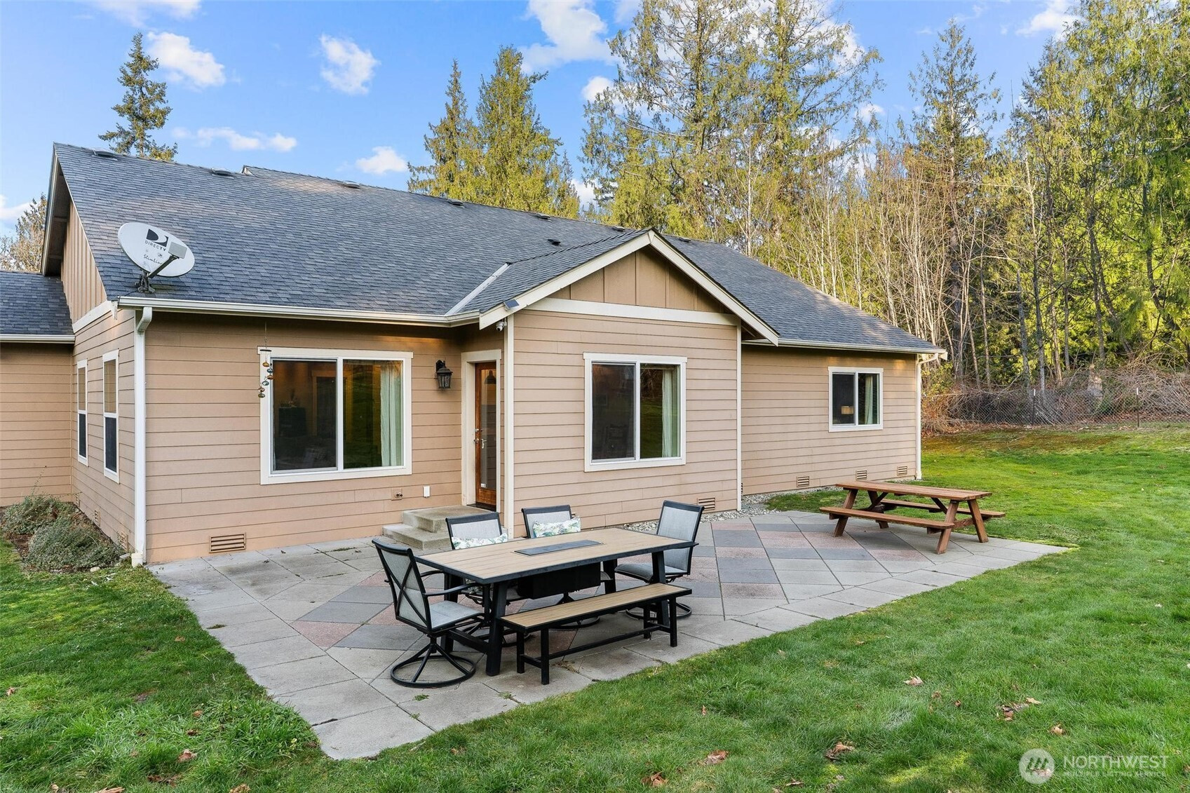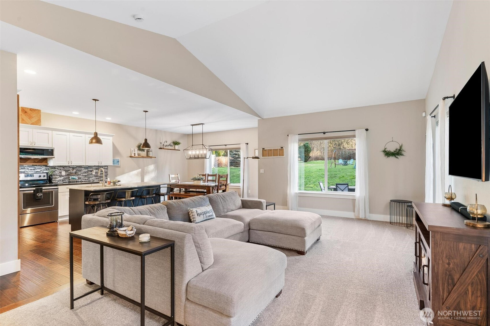 Tucked away on a peaceful 2.58-acre lot with no HOA, this immaculate rambler offers privacy, space, and convenience. Bright natural light fills the home, featuring two living areas with vaulted ceilings and an open flow between the kitchen, dining, and main living space. Kitchen includes white cabinetry, stone countertops, ample storage, and a large island. Spacious primary suite with walk-in closet and five-piece bath. Well-sized secondary bedrooms and move-in-ready condition throughout. The expansive backyard is mostly flat and backs to forestry, offering exceptional privacy and usability. Invisible fence in place, ideal for pets. Above ground pool, trampoline and playground to stay with the home. Minutes to Lake Goodwin, Lake Shoecraft, Warm Beach, and Kayak Point. Approximately 15 minutes to I-5, shopping, dining and entertainment. Welcome home!