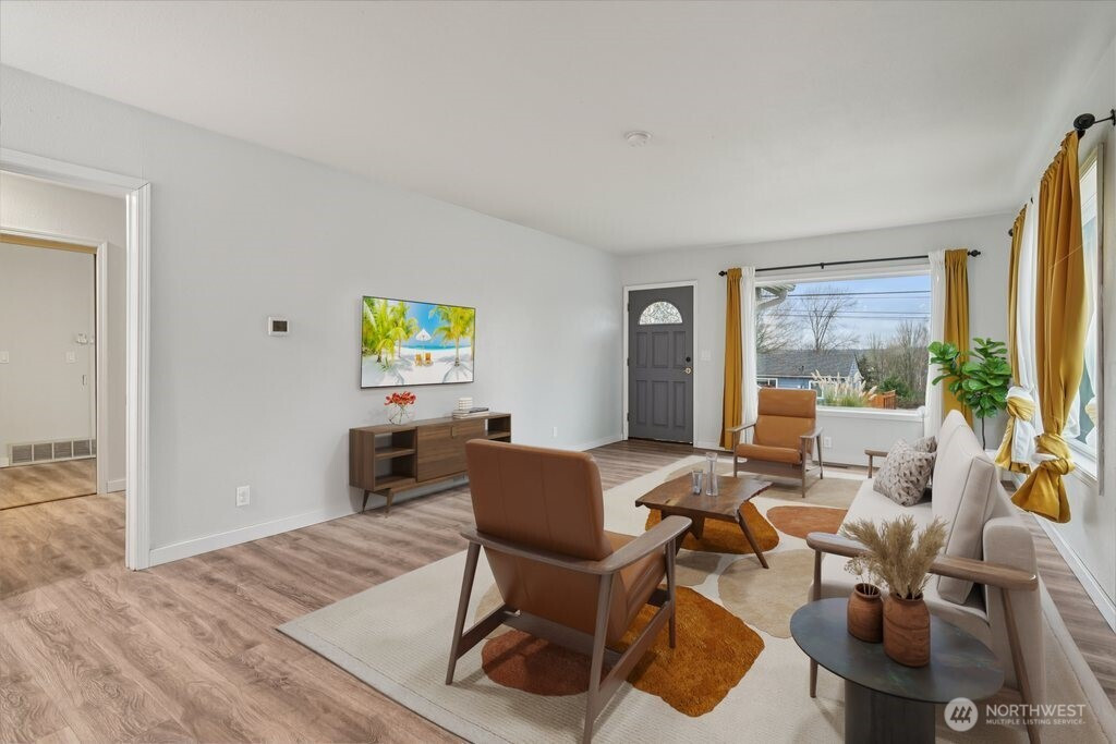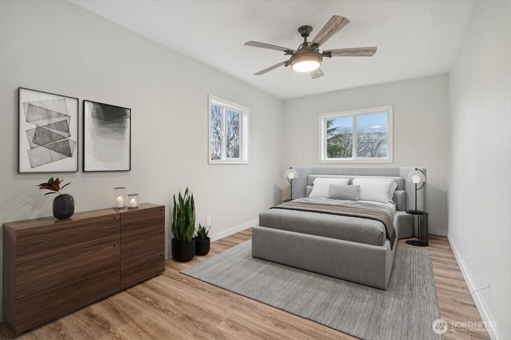 This charming home showcases a light & bright interior, large living room, Cascade views, laminate flooring, modern kitchen w/stainless appliances, induction stove, pantry, & mud room. French doors open to the covered composite deck & fully fenced yard. Main-floor primary bedroom offers dual closets & direct bathroom access. Upstairs, you’ll find new carpet in 2 large bedrooms w/ample storage. Key systems include gas furnace, gas water heater, 200-amp panel & energy-efficient dbl pane vinyl windows . Newer shed w/barn door access, on & off street parking, alley access, concrete pad, & RV parking. Seconds away from Lowell Park playground, off-leash park & pickleball courts! Easy Boeing, I-5, downtown Everett access & all appliances included!