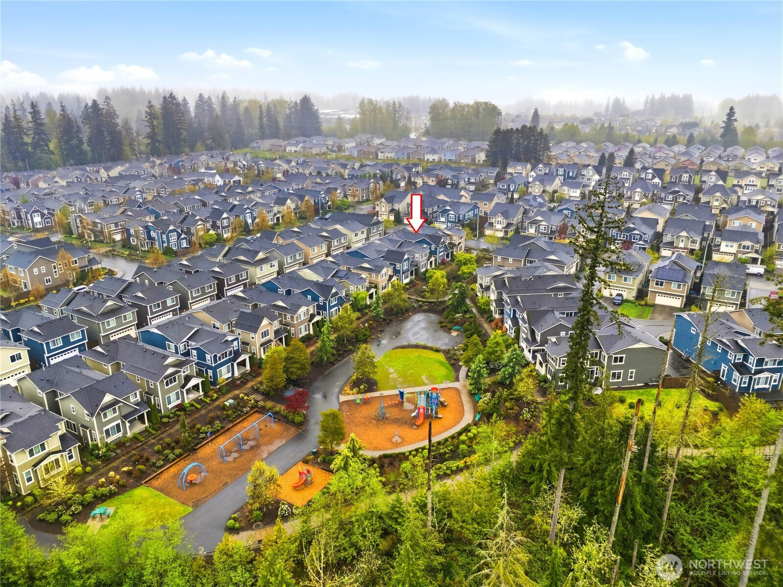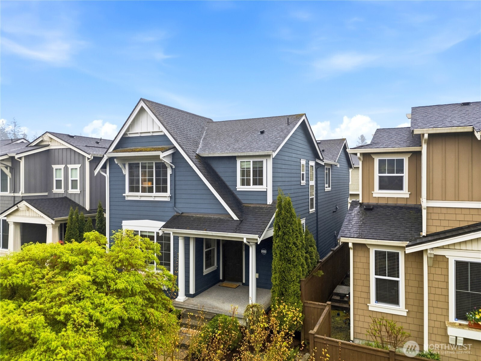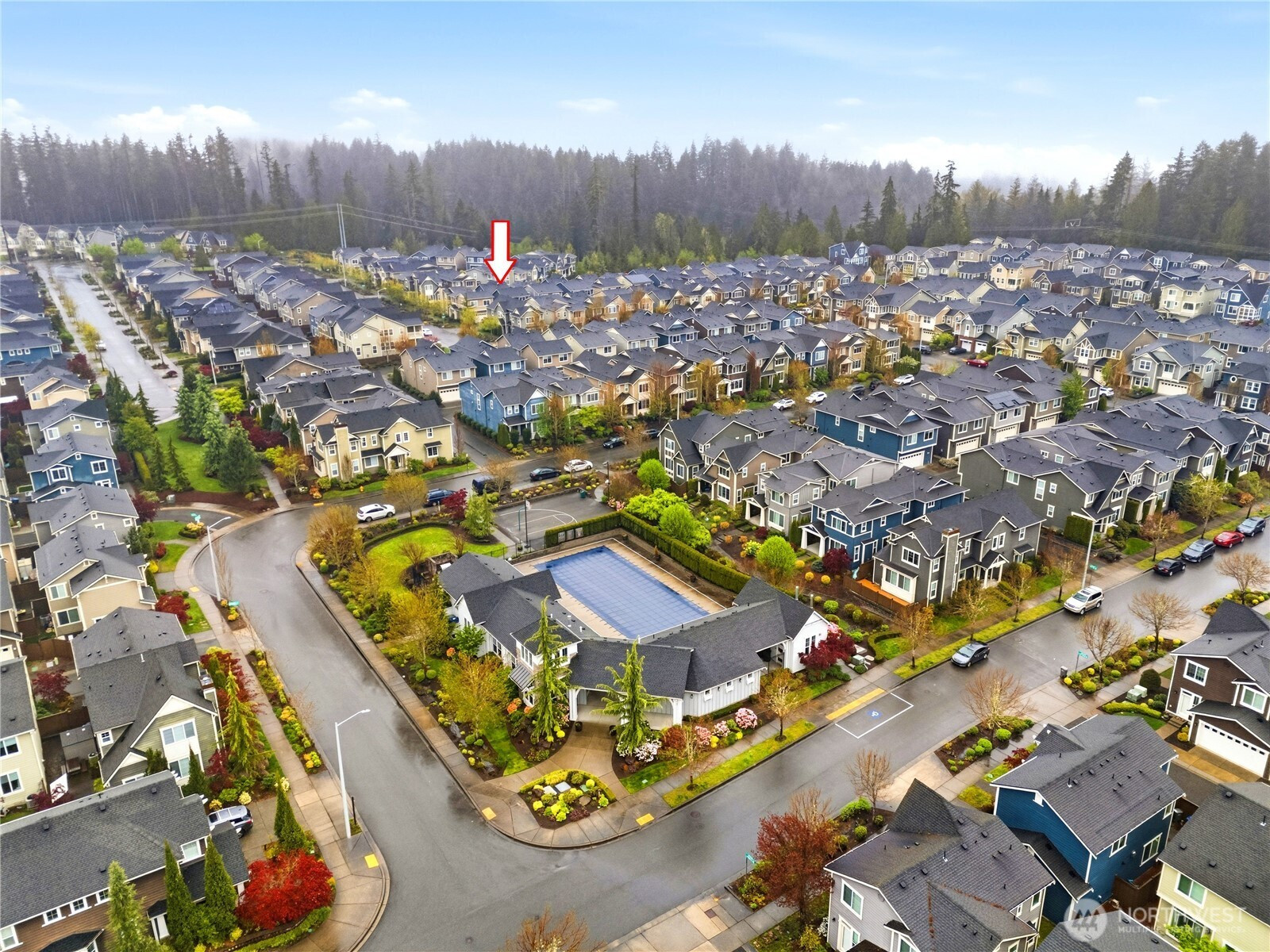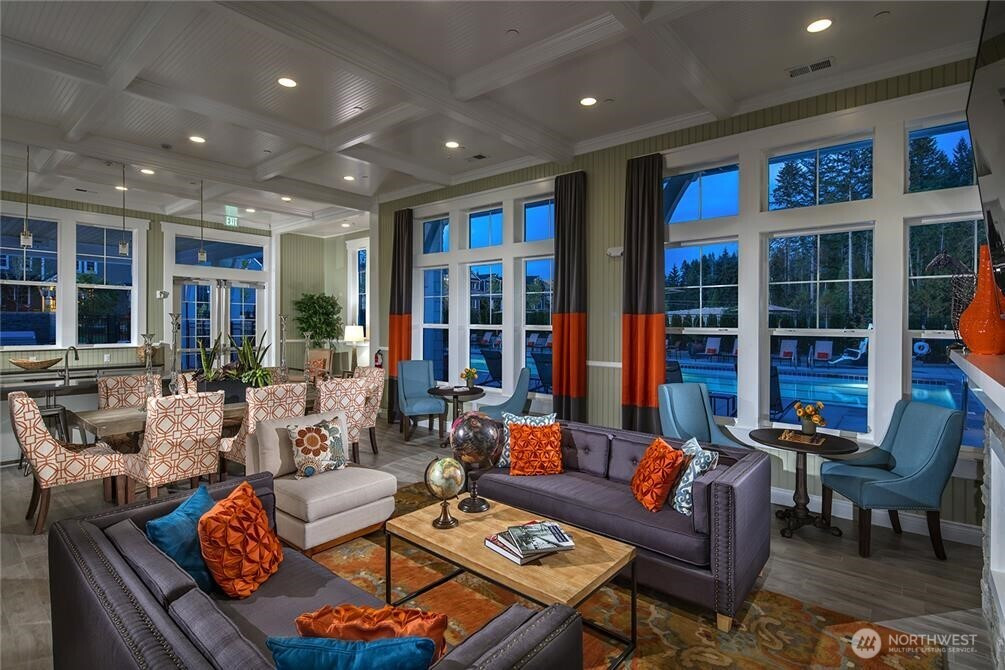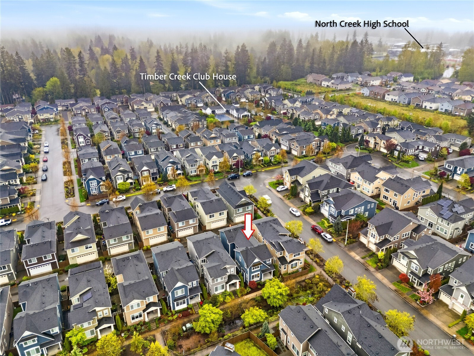 Welcome to the highly desirable Timber Creek community! This beautifully updated north-facing 3 bed, 2.5 bath home with a spacious loft (easily convertible to a 4th bedroom) offers 2,210 sqft of bright, functional living. Enjoy fresh new paint, brand-new carpet, hardwood floors on the main level, and abundant natural light throughout. The chef’s kitchen features granite countertops, tile backsplash, and ample cabinetry, flowing into the inviting living space with a floor-to-ceiling tiled fireplace feature wall. Upstairs, the spa-inspired primary suite boasts marble countertops, tile floors, soaking tub, and a fully tiled walk-in shower. Additional highlights include central A/C, EV charging outlet, extensive garage storage, and tile flooring in all bathrooms. The versatile loft is perfect for a home office, media room, or future bedroom with projector setup potential. Ideally located just a 5-minute walk to North Creek High School in the award-winning Northshore School District, and directly across from the community park. Enjoy resort-style amenities including an Olympic-size pool, cabana, basketball court, and walking trails. Low HOA and beautifully maintained community make this a must-see!