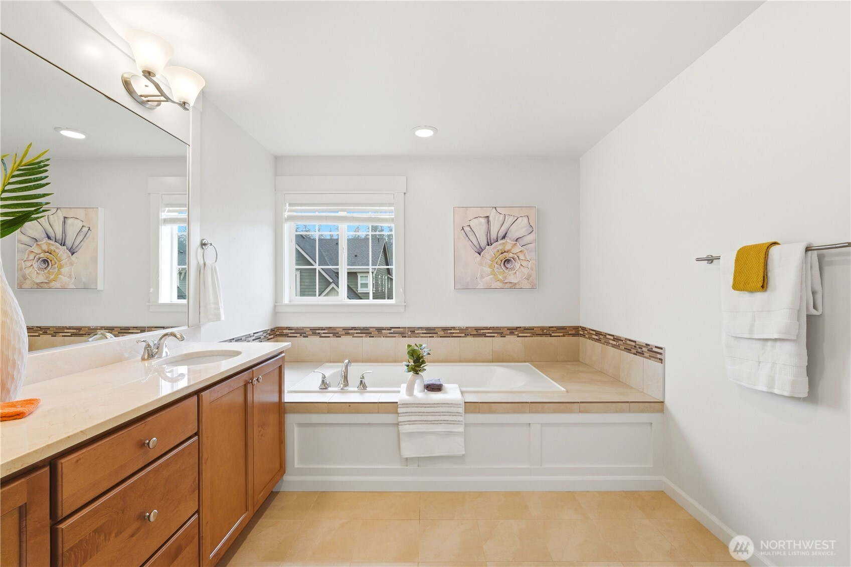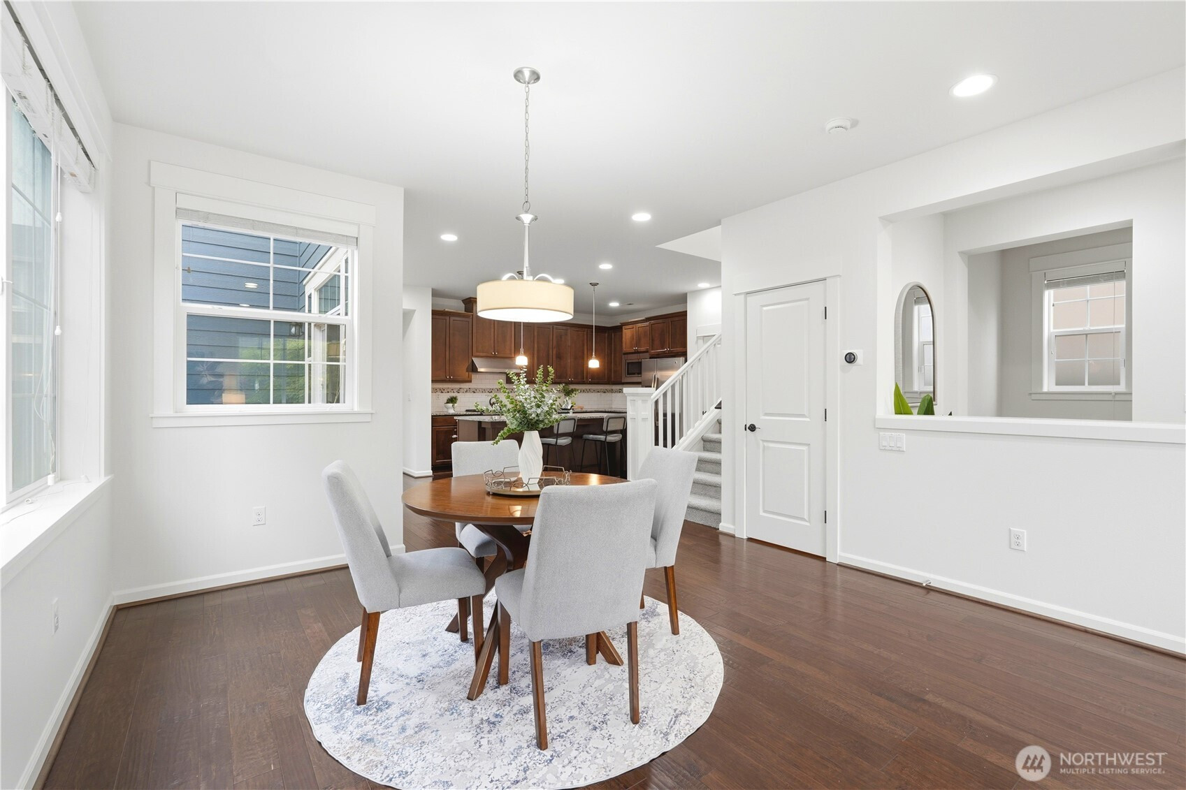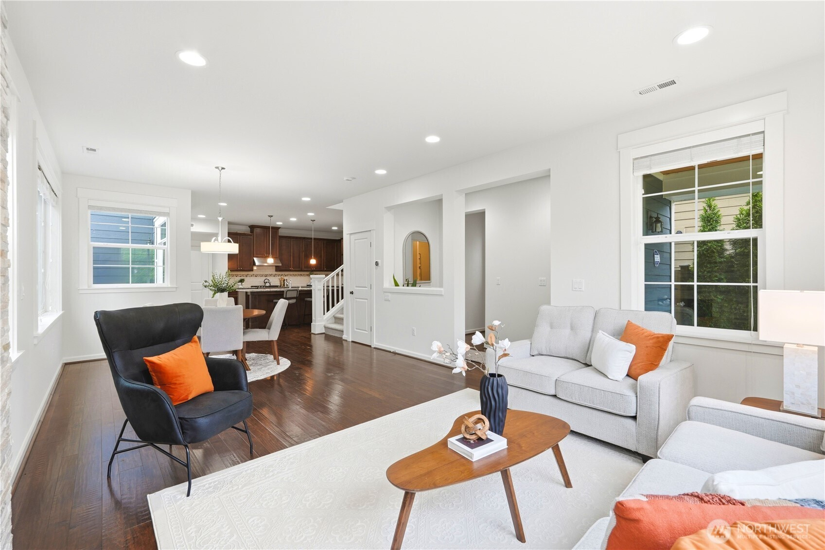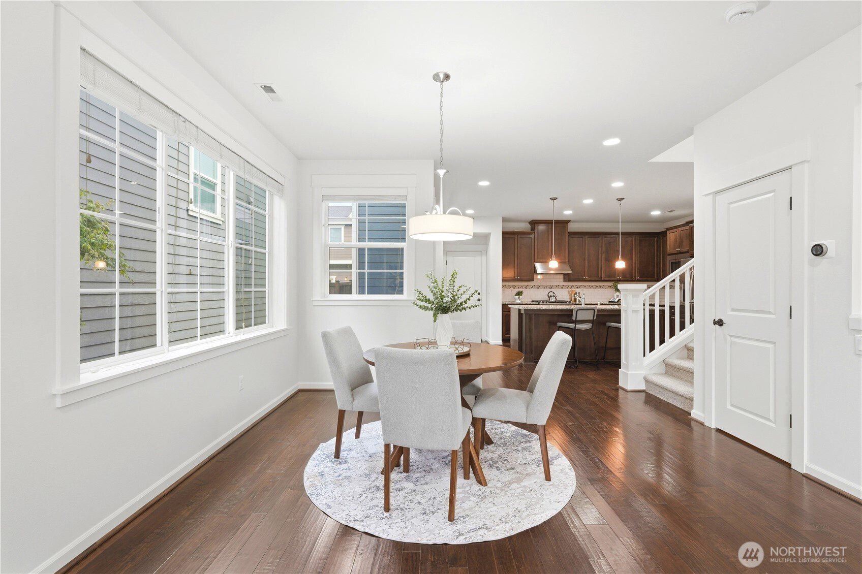 Welcome to the highly desirable Timber Creek community! This beautifully updated north-facing 3 bed, 2.5 bath home with a spacious loft (easily convertible to a 4th bedroom) offers 2,210 sqft of bright, functional living. Enjoy fresh new paint, brand-new carpet, hardwood floors on the main level, and abundant natural light throughout. The chef’s kitchen features granite countertops, tile backsplash, and ample cabinetry, flowing into the inviting living space with a floor-to-ceiling tiled fireplace feature wall. Upstairs, the spa-inspired primary suite boasts marble countertops, tile floors, soaking tub, and a fully tiled walk-in shower. Additional highlights include central A/C, EV charging outlet, extensive garage storage, and tile flooring in all bathrooms. The versatile loft is perfect for a home office, media room, or future bedroom with projector setup potential. Ideally located just a 5-minute walk to North Creek High School in the award-winning Northshore School District, and directly across from the community park. Enjoy resort-style amenities including an Olympic-size pool, cabana, basketball court, and walking trails. Low HOA and beautifully maintained community make this a must-see!