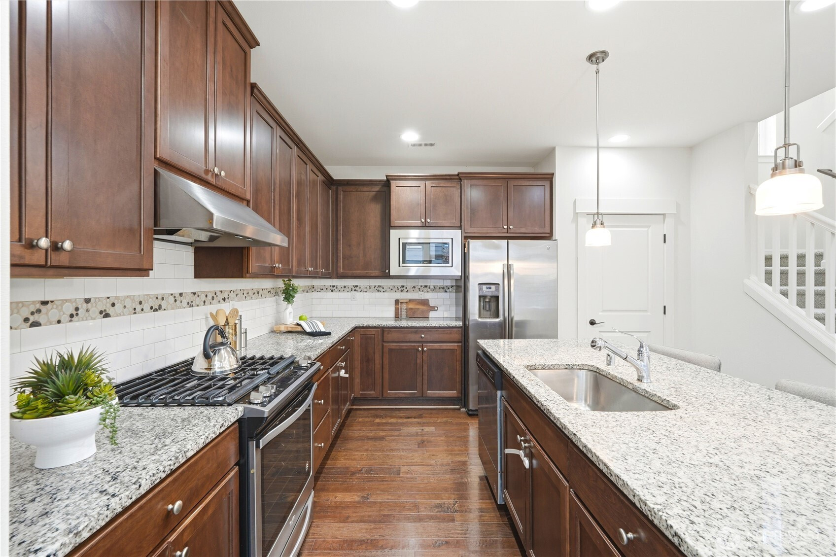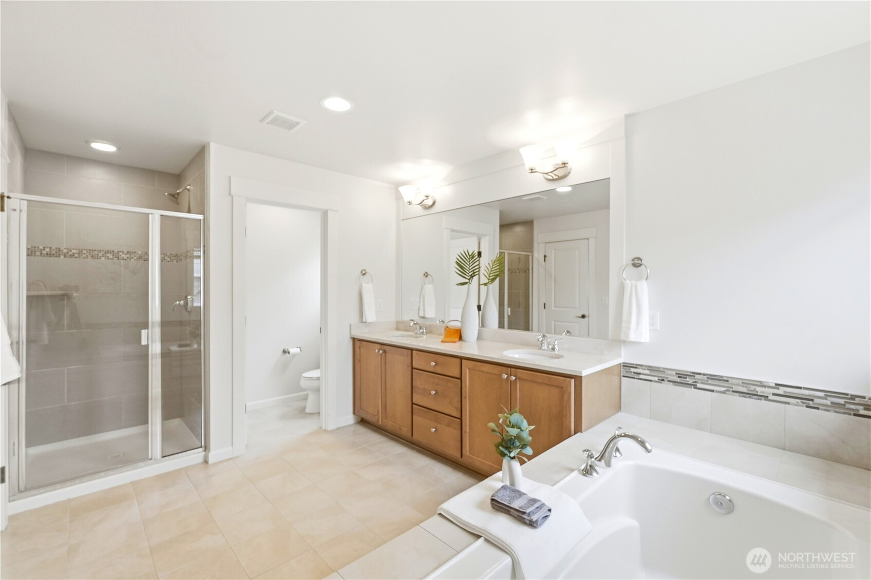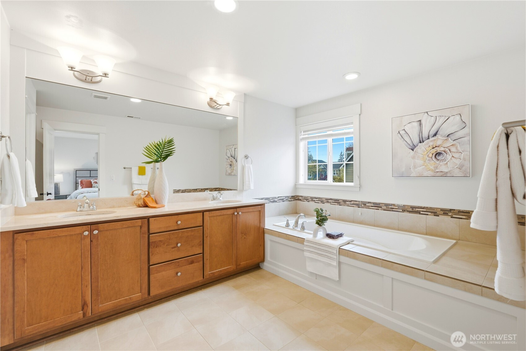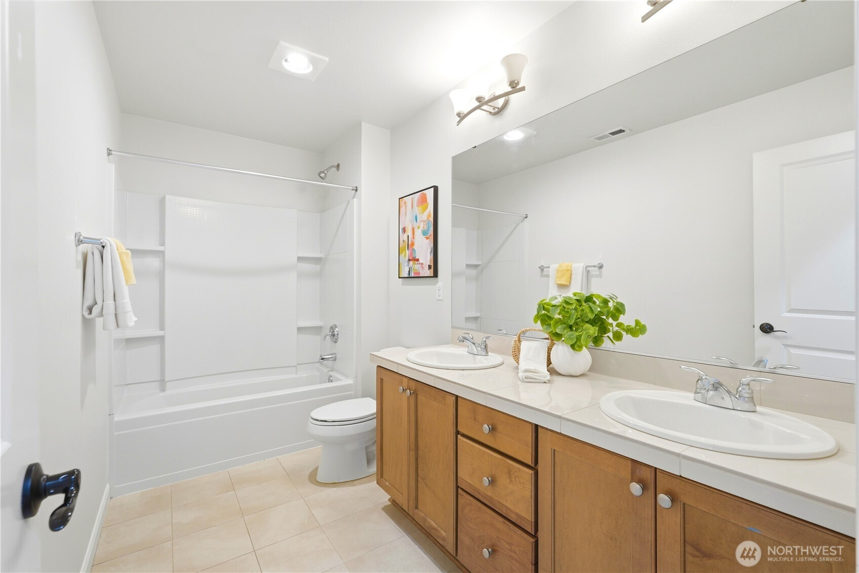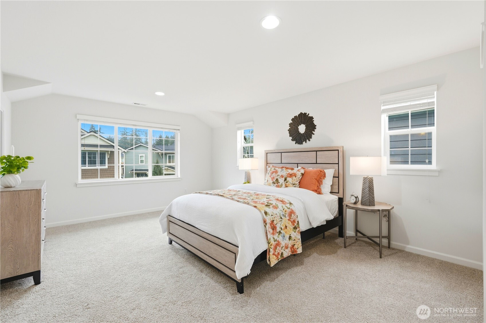 Welcome to the highly desirable Timber Creek community! This beautifully updated north-facing 3 bed, 2.5 bath home with a spacious loft (easily convertible to a 4th bedroom) offers 2,210 sqft of bright, functional living. Enjoy fresh new paint, brand-new carpet, hardwood floors on the main level, and abundant natural light throughout. The chef’s kitchen features granite countertops, tile backsplash, and ample cabinetry, flowing into the inviting living space with a floor-to-ceiling tiled fireplace feature wall. Upstairs, the spa-inspired primary suite boasts marble countertops, tile floors, soaking tub, and a fully tiled walk-in shower. Additional highlights include central A/C, EV charging outlet, extensive garage storage, and tile flooring in all bathrooms. The versatile loft is perfect for a home office, media room, or future bedroom with projector setup potential. Ideally located just a 5-minute walk to North Creek High School in the award-winning Northshore School District, and directly across from the community park. Enjoy resort-style amenities including an Olympic-size pool, cabana, basketball court, and walking trails. Low HOA and beautifully maintained community make this a must-see!