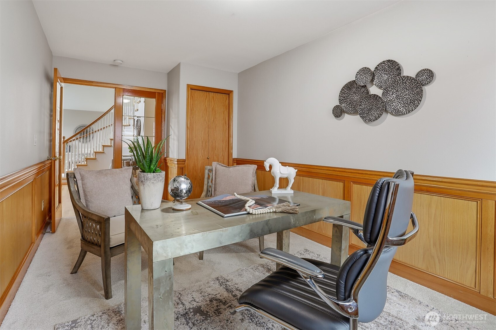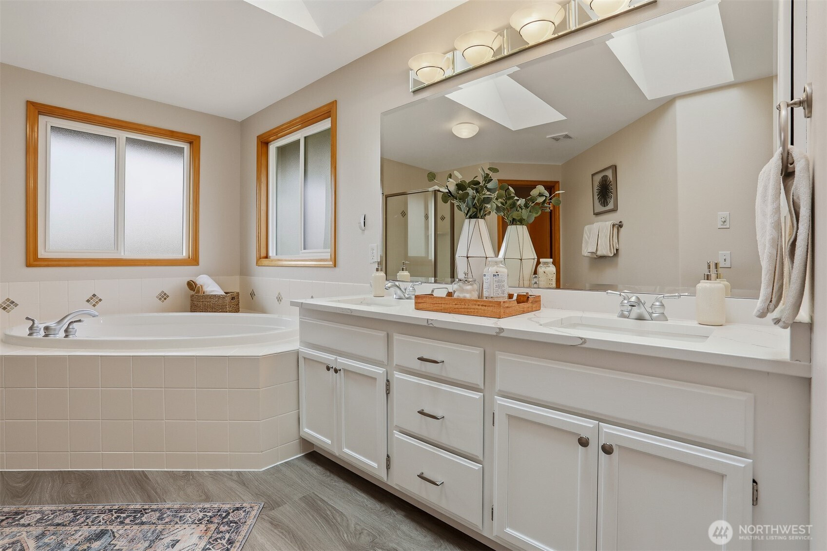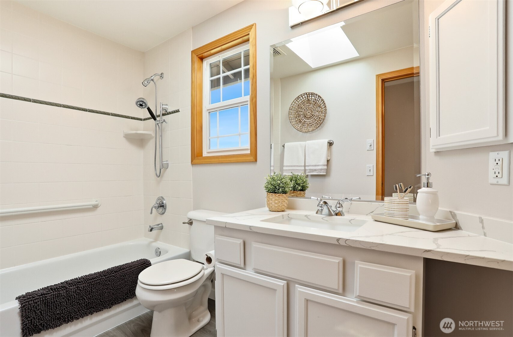 First time on the market, this immaculate Reykdal resale in the desirable Apple Tree community beautifully blends timeless Craftsman design with modern elegance. A grand entryway, with soaring ceilings and a winding staircase, welcomes you into a light-filled interior with large picture windows, fresh interior and exterior paint, lush new carpeting, and beautifully refinished hardwood floors. The versatile main floor is designed for today's needs, offering a dedicated office/den that can serve as a fourth bedroom, complete with stunning French doors and a refreshed ¾ bath—ideal for guests or multi-generational living. At the heart of the home, the formal living and dining rooms flow into a sunlit, open-concept chef's kitchen equipped with quartz countertops and a huge island. This area seamlessly connects to the eating nook and family room, where you can cozy up by the gas fireplace. Upstairs, retreat to a spacious primary suite featuring a 5-piece bath, alongside two additional bedrooms and a massive bonus room—perfect for a home theater, gym, or play area. Step outside to your private backyard oasis, situated on an expansive lot complete with an entertaining patio wired for a hot tub, and mature landscaping. Located on a quiet street near community parks and trails, this home is just minutes from Willis Tucker Park. With easy access to Mill Creek and Bothell, this move-in-ready gem is the one you've been searching for, with a pre-inspection provided for your review!