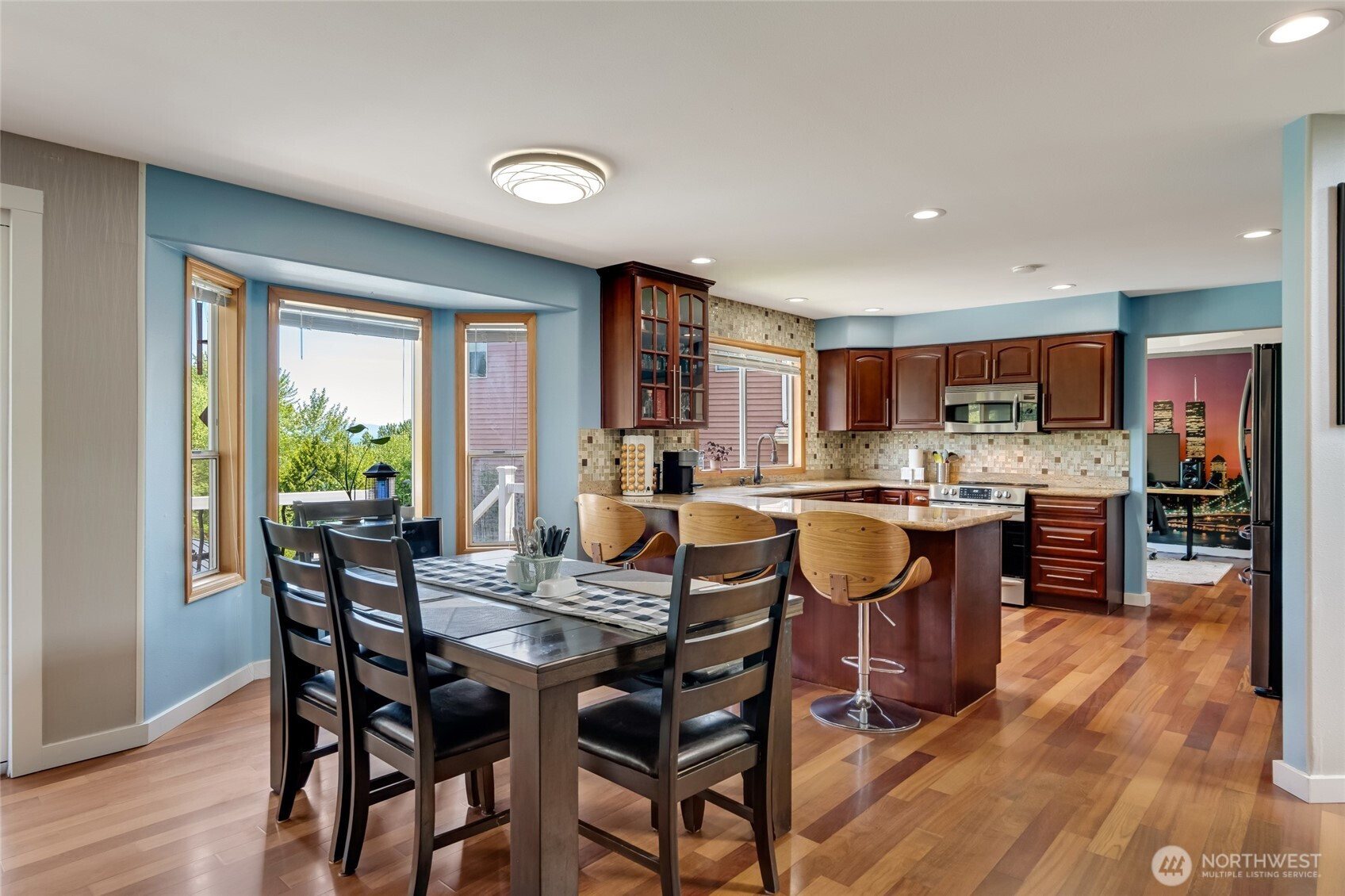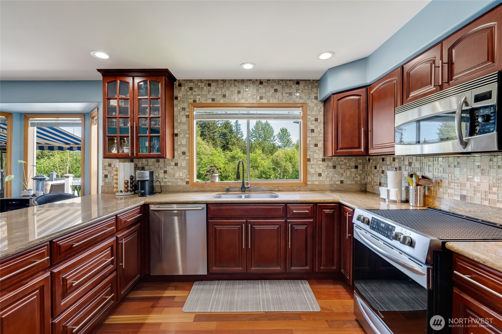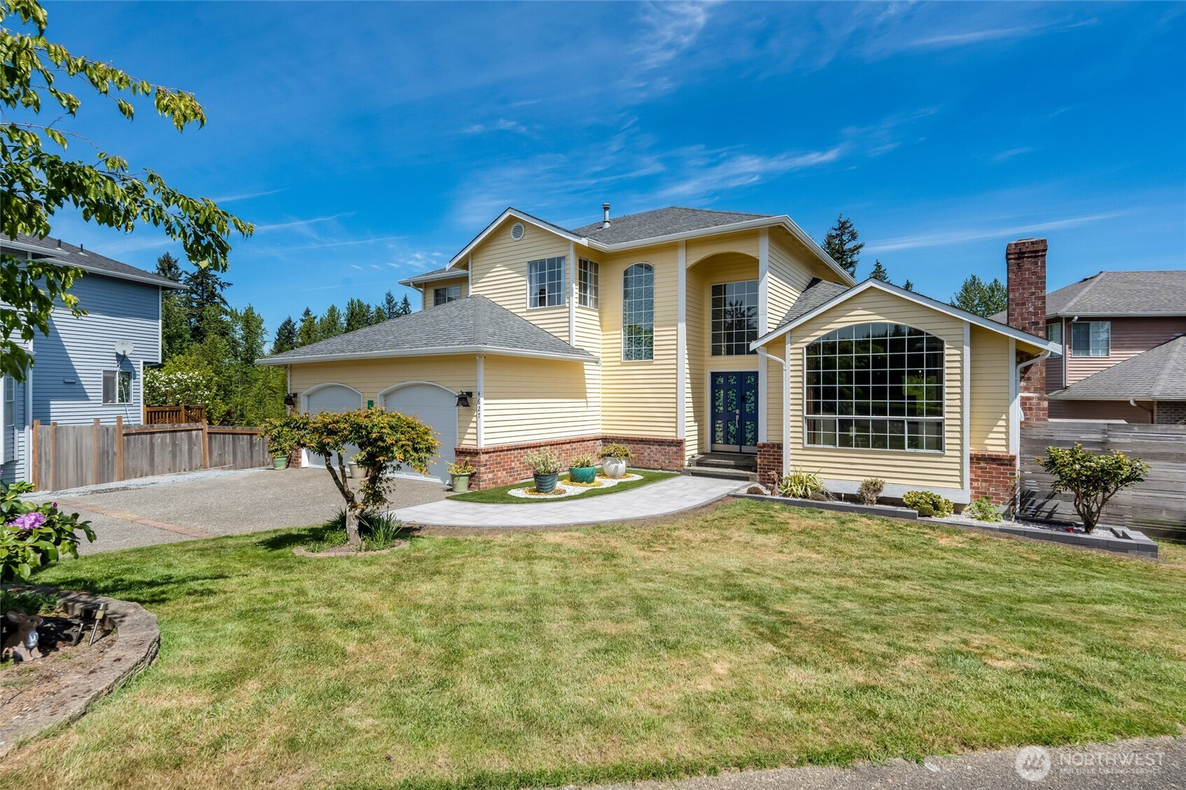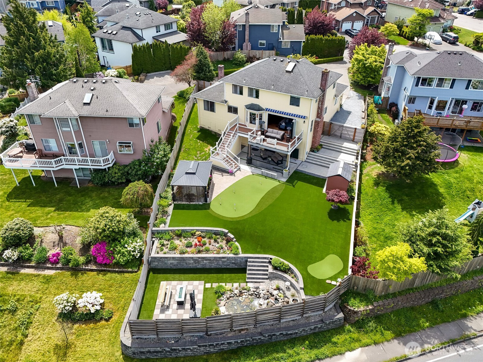 Experience luxury living with breathtaking views of the Cascade Mountains and Snohomish Valley in this stunning 2-story home with a finished basement. Perfect for entertaining, the turf backyard features a putting green, koi pond with waterfall, and lush gardens. A dramatic accordion door opens to a composite deck with motorized awning—ideal for indoor-outdoor gatherings. Main Level Features Bold Hardwood Floors leading to the chef’s kitchen boasting slab granite counters, full-height tile backsplash, and stainless appliances. Ideal spacious basement offers potential as a separate living unit or create the bonus room of your dreams! Retreat to a view-filled primary suite with a spa-like 5-piece bath and a custom-designed walk-in closet.