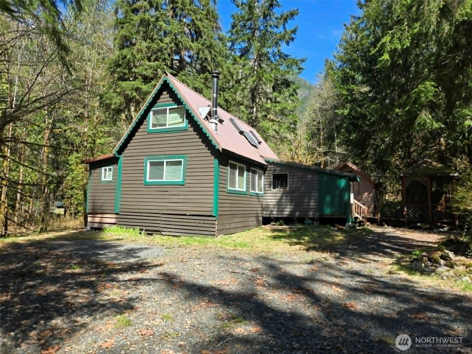 Escape to this delightful 2-bedroom, 1-full bath cabin nestled on 90’ of serene creek front property, surrounded by the natural beauty of Silverton. Perfectly situated along the Mountain Loop Highway, this retreat offers easy access to hiking, fishing, and a myriad of outdoor activities. This cozy cabin is powered by a 12k Kohler generator and features a battery bank inverter for your convenience. Enjoy modern comforts with new exterior paint, updated electrical panel, and a wood stove that adds warmth and charm to your living space. Step outside to experience nature at it’s finest, with a spacious shed for extra storage. The property comes equipped with all essential appliances, making it an ideal vacation home or year-round residence. Immerse yourself in tranquil Creekside living and take advantage of the ample opportunities for recreation right at your doorstep. Don’t miss the chance to own a slice of paradise.