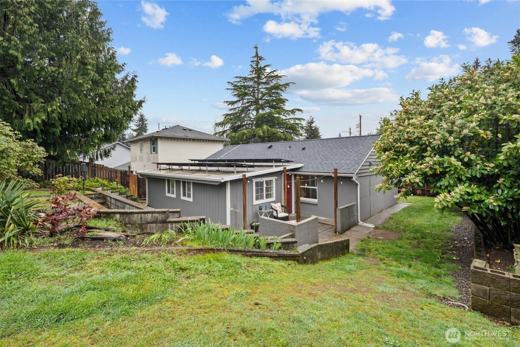 Step into a home that pays you back! This MOVE-IN-READY Mountlake Terrace rambler features a fully owned solar panel system (to be Paid in Full by Seller at Closing) providing immediate ENERGY SAVINGS! Tucked away in a peaceful, established neighborhood, this home offers the ultimate balance of quiet residential living and premier connectivity. The inviting & refreshed interior shines and is ready for you! Enjoy the brand NEW CARPET and FRESH INTERIOR PAINT throughout, paired with timeless QUARTZ COUNTERTOPS and versatile living spaces designed to fit your lifestyle! Plus, the premium Washer & Dryer set is included! Major updates provide total peace of mind, including a NEWER ROOF, solar installation, and updated garage door (all 2021). The oversized backyard is a private retreat full of potential - ideal for relaxing, entertaining, or creating your dream Outdoor Oasis! Commuters will love the PRIME LOCATION: Less than one mile to the LIGHT RAIL STATION and I-5 for an effortless Seattle commute! Nature lovers will adore the proximity to 60-acre Terrace Creek Park, which features trails, playgrounds, and more! Shopping, Dining, and entertainment await at Alderwood Mall and the surrounding areas, offering something for everyone! This is the TURNKEY OPPORTUNITY you’ve been waiting for! Whether you're searching for a starter home or a Smart INVESTMENT OPPORTUNITY, this property checks all the boxes! Welcome Home ~