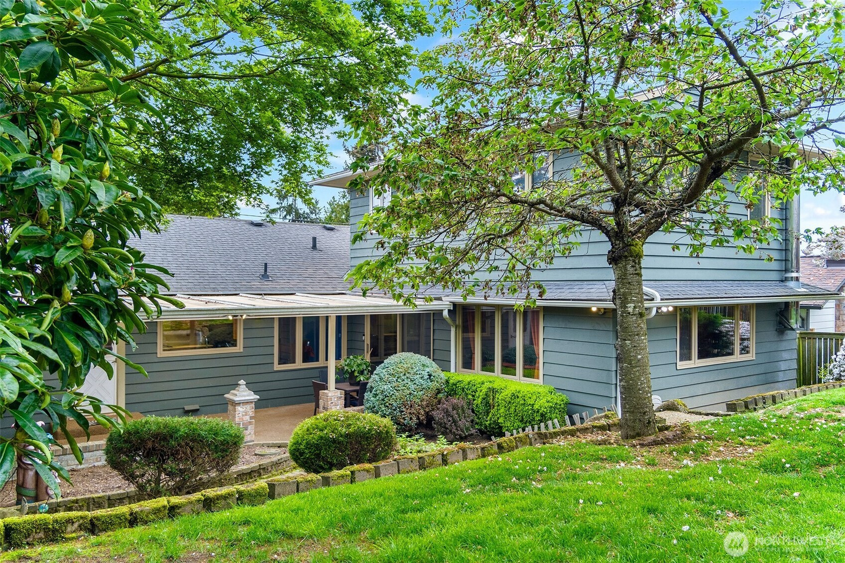 Fall in love with this charming mid-century home offering 1,920 square feet of comfort and character. With three bedrooms, two distinctive bathrooms, and an expansive family room, the layout provides both space and flexibility while maintaining its vintage appeal. Recent updates include new vinyl plank flooring and carpet (2025), fresh exterior paint (2023), added crawlspace insulation, and a partially remodeled main-floor bathroom. Thoughtful built-ins throughout the home add both charm and practical storage. Step outside to a fully fenced backyard retreat featuring a covered patio, mature landscaping, terraced garden beds, and a storage shed—perfect for relaxing or entertaining. Ideally located near parks and schools with easy access to I-5, this rare gem is one perfect package!