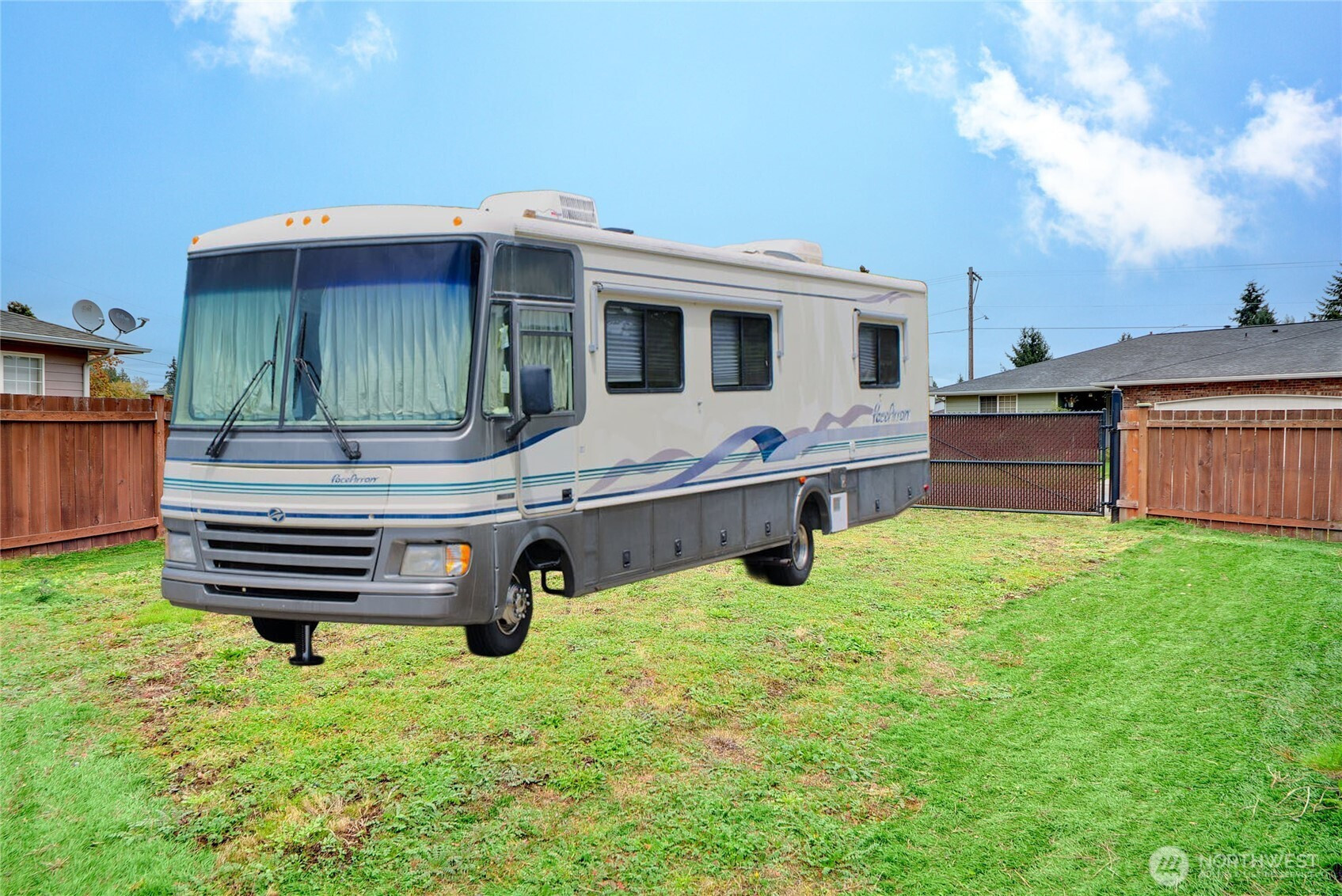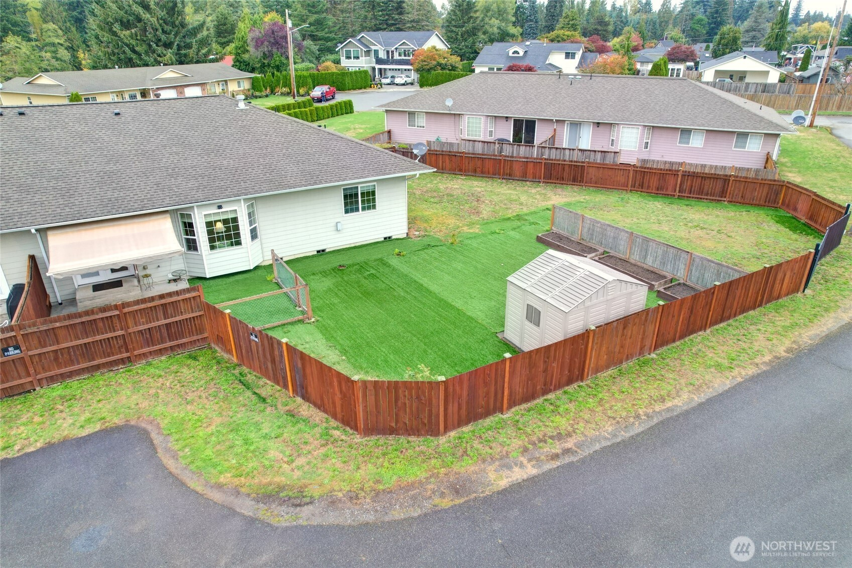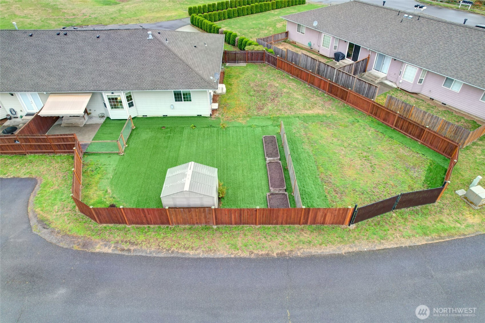 This beautifully maintained rambler-style condo offers an open floor plan with vaulted ceilings, a kitchen featuring granite countertops, stainless steel appliances, pantry, and eating bar. The kitchen flows into the dining and living areas with a cozy fireplace—perfect for cool evenings. The spacious primary bedroom includes a coved ceiling, double closets, and private ¾ bath. A second large bedroom and full bath provide extra space. Step through sliding doors to a private patio with retractable awning. The fully fenced yard, mostly turf, has room for RV parking or a garden oasis—ideal for entertaining and relaxing.