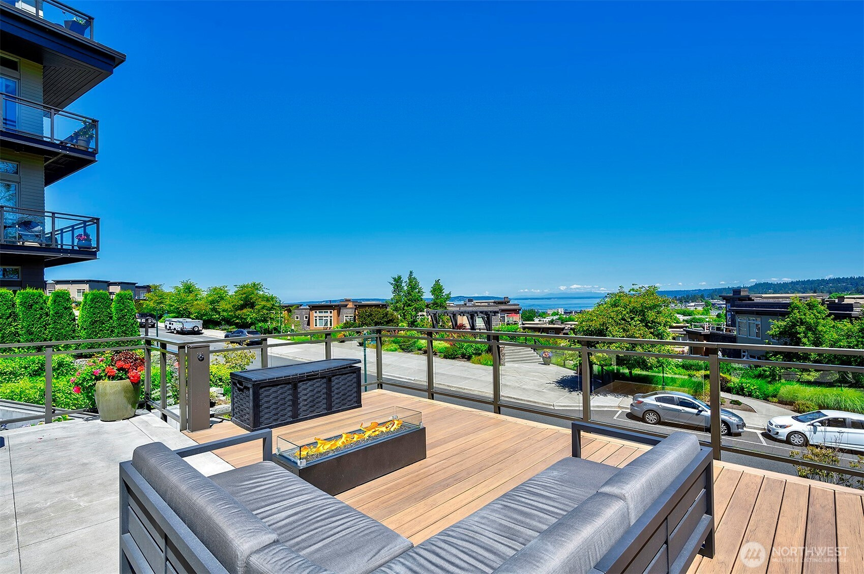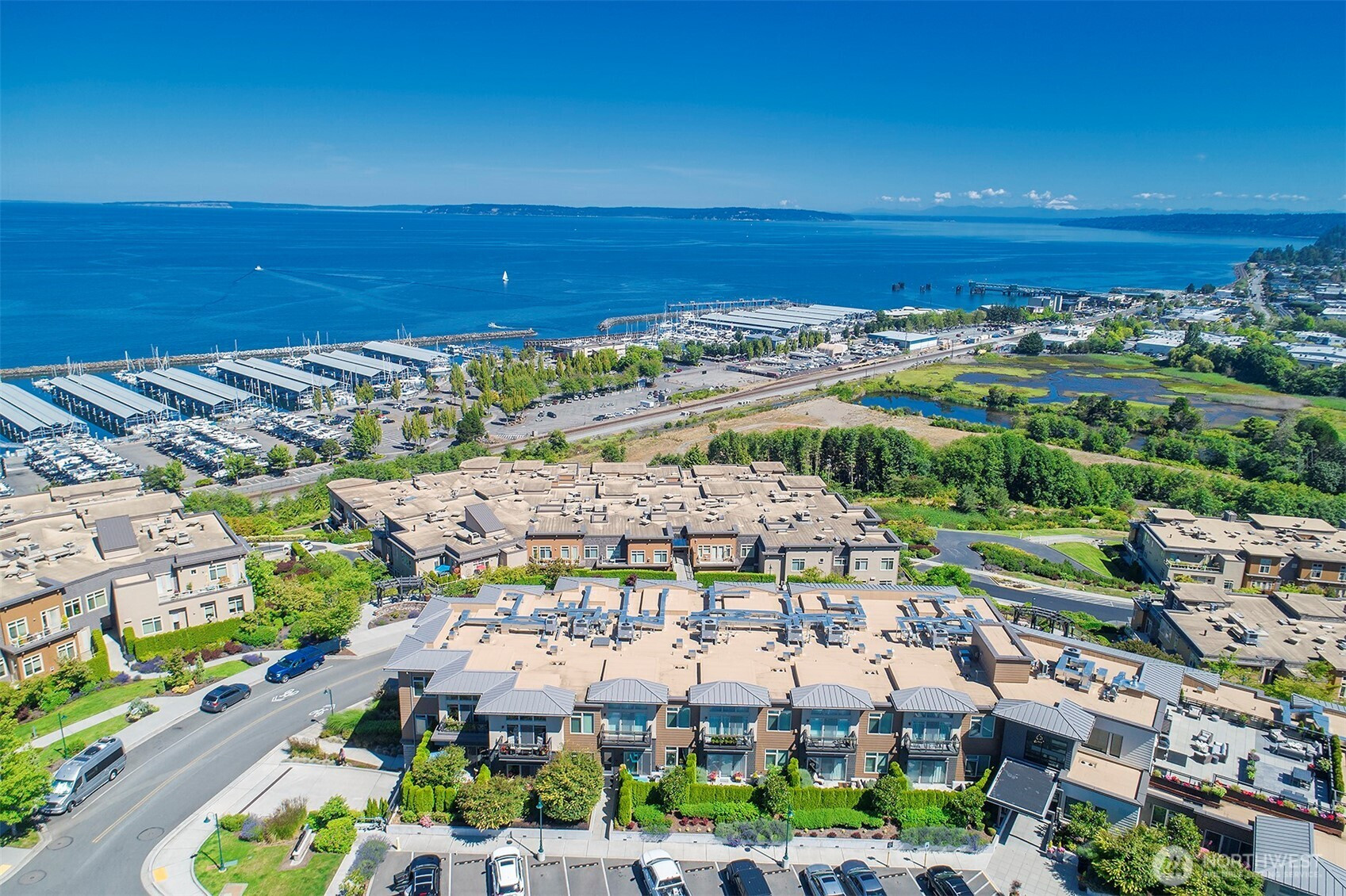 Experience refined resort-style living at coveted 50 Pine Street Condominiums, where luxury meets effortless living. This elegant lock-and-leave residence offers light-filled interiors and partial Sound and Mountain views from every room. Gleaming engineered hardwood floors flow through the entry, kitchen, and living spaces, creating a warm, sophisticated ambiance. The inviting living room features a cozy fireplace and custom plantation shutters, while the gourmet kitchen impresses with slab quartz countertops, stainless steel appliances, and beautifully updated cabinetry—perfect for entertaining. The view owner’s suite is a tranquil retreat with a spa-inspired bath and generous walk-in closet. A thoughtfully designed guest bedroom with walk-in closet and full bath ensures comfort for visitors. The full laundry room with abundant storage adds everyday functionality, and the private patio provides a peaceful place to unwind. Just a short stroll from Edmonds’ charming shops, dining, and waterfront. Amenities include a stunning rooftop deck with 180-degree views of Puget Sound, the Olympics, and Mt. Baker, reservable community spaces, a view courtyard with fireplace and state-of-the-art exercise facility. Two parking spaces, and additional storage included. Welcome home!