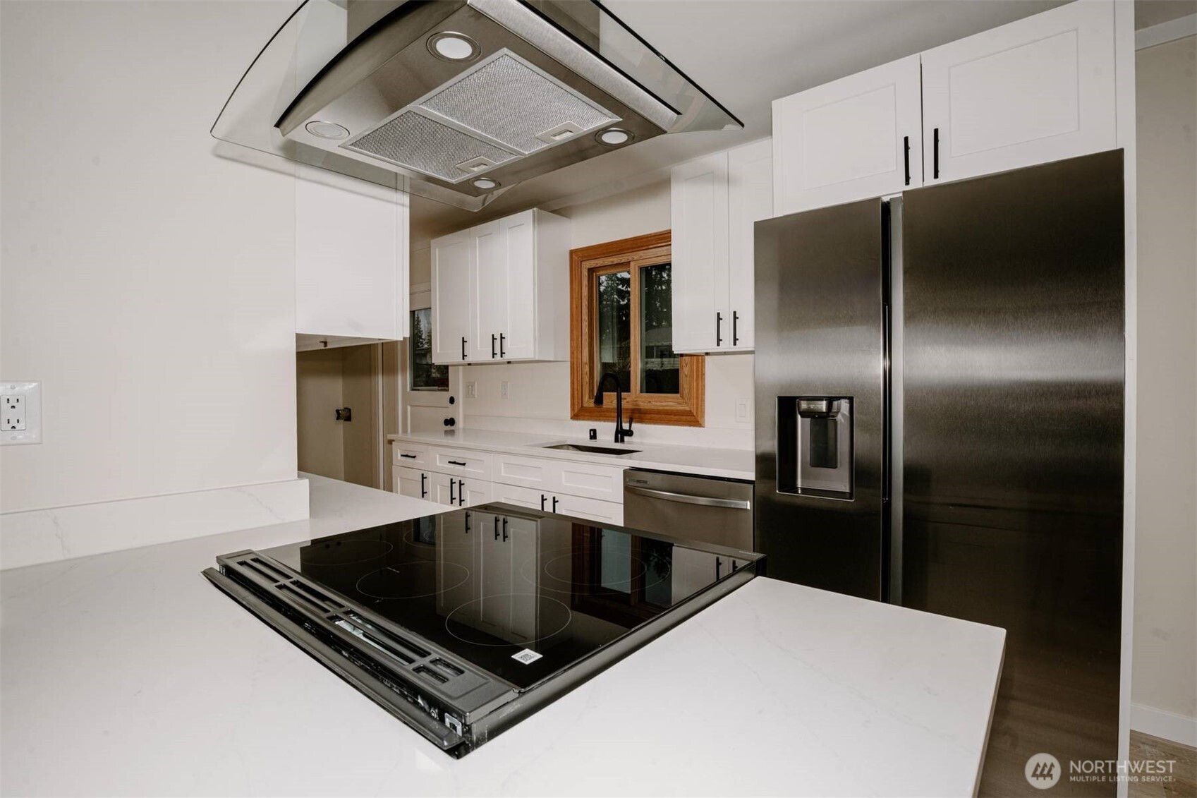 Cute, move-in-ready rambler in Mountlake Terrace set on a large, fully usable lot! This clean and well-maintained home features new flooring throughout and a cozy stove for added warmth and charm. The bright kitchen includes white cabinets, Quartz countertops, and new stainless-steel appliances, dishwasher, refrigerator, and electric range. Enjoy the spacious yard with firepit, perfect for entertaining, gardening, or relaxing. A carport and storage shed add convenience. Great location close to parks, shopping, and commuter routes. A wonderful move in ready place to call home!
