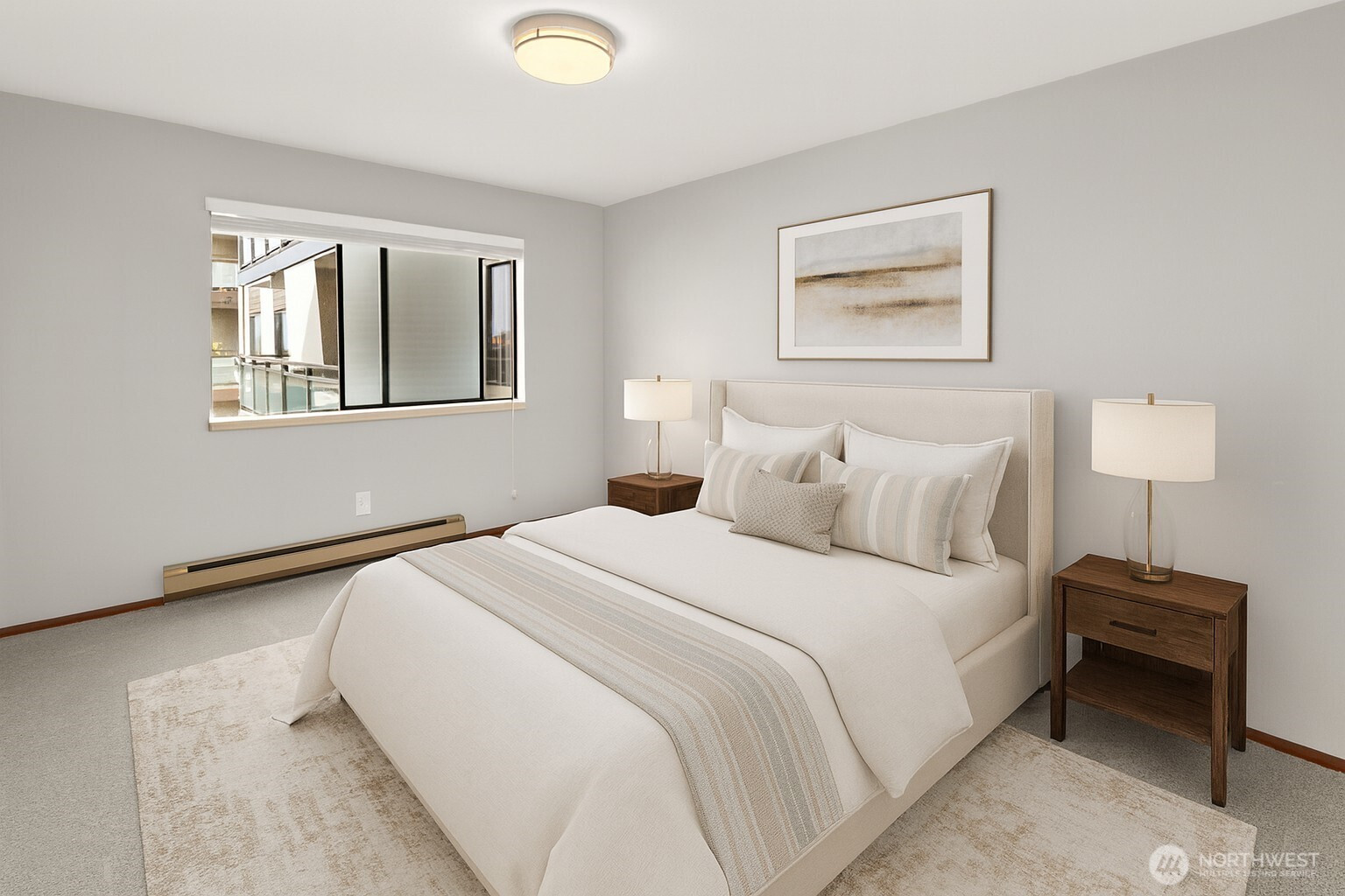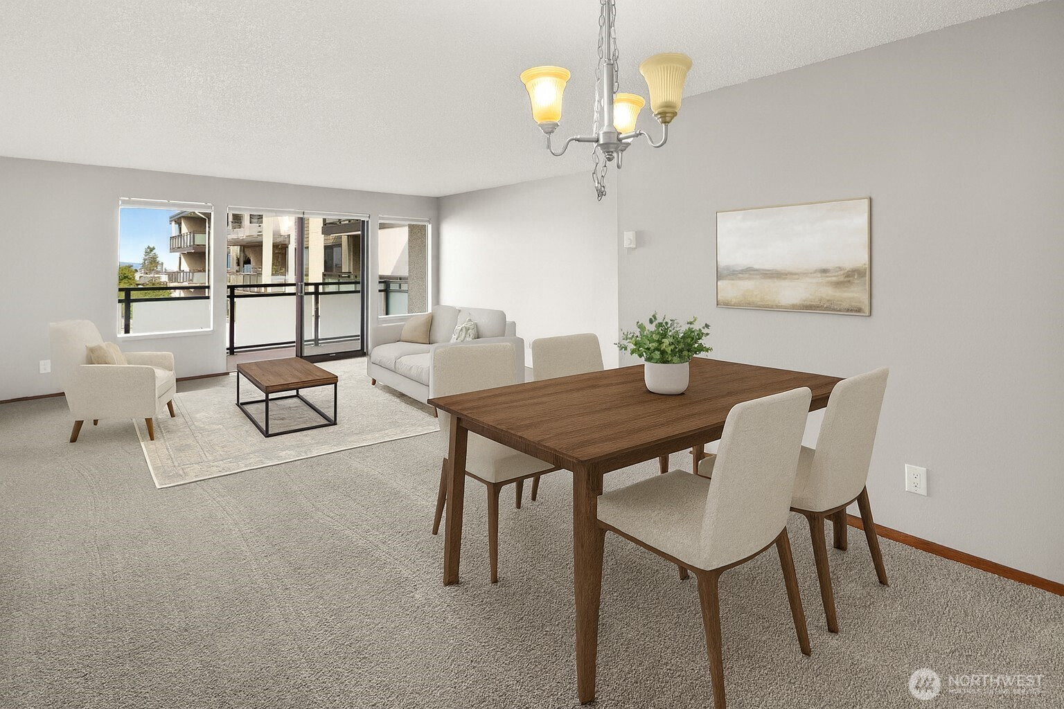 Discover a breathtaking view condo in the desirable Edmonds Bowl, just a short walk from downtown. Enjoy stunning Puget Sound and Whidbey Island views from your private balcony. This secure, well-managed complex offers an elevator, covered parking and storage space. The unit boasts new paint and carpet, two bedrooms, 1.5 baths, and a convenient in-unit washer/dryer. A spacious kitchen with ample storage completes this exceptional home. Instructions to the unit are in Remarks !