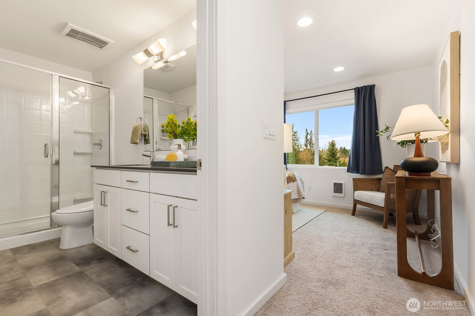 Welcome to this beautifully crafted townhome nestled in the desirable Meadowdale community—where comfort, convenience, and modern living come together seamlessly. The thoughtfully designed open-concept layout creates a warm and inviting atmosphere, perfect for both everyday living and entertaining. The kitchen is a standout feature, complete with sleek GE stainless steel appliances, bar seating, soft-close cabinetry, and a spacious pantry offering plenty of storage. Each generously sized bedroom includes its own private en-suite, providing flexibility and privacy for guests or multi-generational living. The entry-level suite opens directly to a secluded patio—an ideal spot to enjoy your morning coffee or unwind at the end of the day. Additional highlights include A/C for year-round comfort in the downstairs, driveway parking, and a one-car garage with built-in storage and a brand-new water heater—adding both practicality and peace of mind. Enjoy an unbeatable location just moments from I-5, making commuting a breeze, while also being close to shopping, dining, and local schools. You’ll love the easy access to Beverly Elementary, Meadowdale Community Park, scenic Meadowdale Beach and Trail as well as Alderwood Mall and downtown Edmonds. Plus, nearby restaurants and popular food trucks are all within walking distance, making this home the perfect blend of lifestyle and location.