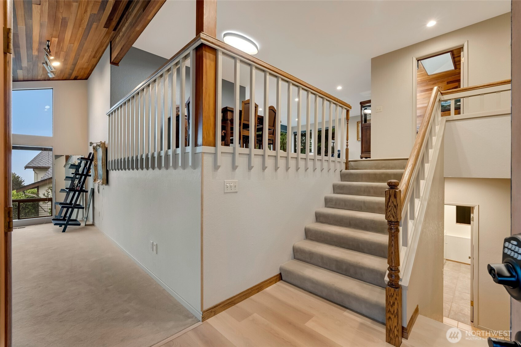 (503) 893-8874Discover this spacious 3,274 sq. ft. home on a beautifully landscaped third-acre lot perched above Mukilteo Blvd. Featuring 3 bedrooms plus a large bonus room in the basement, this home offers plenty of space for work, play, or relaxation. The refreshed main living areas provide 2 separate living rooms, one w/ fireplace & dining room. The remodeled kitchen offers an abundance of natural light, refinished cabinets, SS apps, LVP flooring & can lighting. The large primary bedroom boasts vaulted ceilings, en suite bath & private deck. Enjoy serene outdoor spaces, w/ sound & island views, perfect for entertaining. Ample storage & thoughtful design, this home is a rare find in a prime location. Two 220 amp services in the 3 car garage.