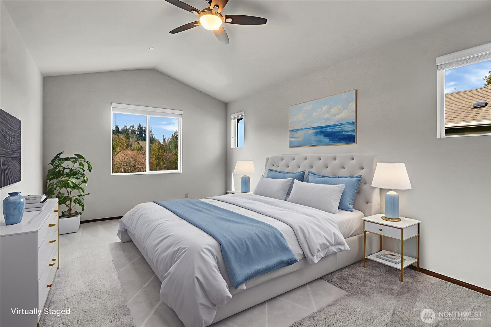 Perched above Glenwood Ave, this exceptional home offers convenient access to Downtown Everett, scenic parks, and beautiful beaches. Fresh interior paint and brand-new carpet throughout make this home truly move-in ready. The open, spacious floor plan creates a bright and airy living area featuring a large modern kitchen, generous dining room, and a cozy living room with a gas fireplace. The expansive primary suite showcases vaulted ceilings, a full bath, and a large walk-in closet. A sizable main-level family room provides flexible space to fit all your needs. Step outside to enjoy a beautifully maintained landscaped setting with a concrete patio and serene green views—creating a peaceful, private outdoor retreat. Even better, all front and backyard landscaping is professionally maintained and included in the dues for effortless year-round curb appeal. With two living areas, three spacious bedrooms, 2.5 bathrooms, and an extra large 2-car garage, this home delivers comfort, style, and convenience.