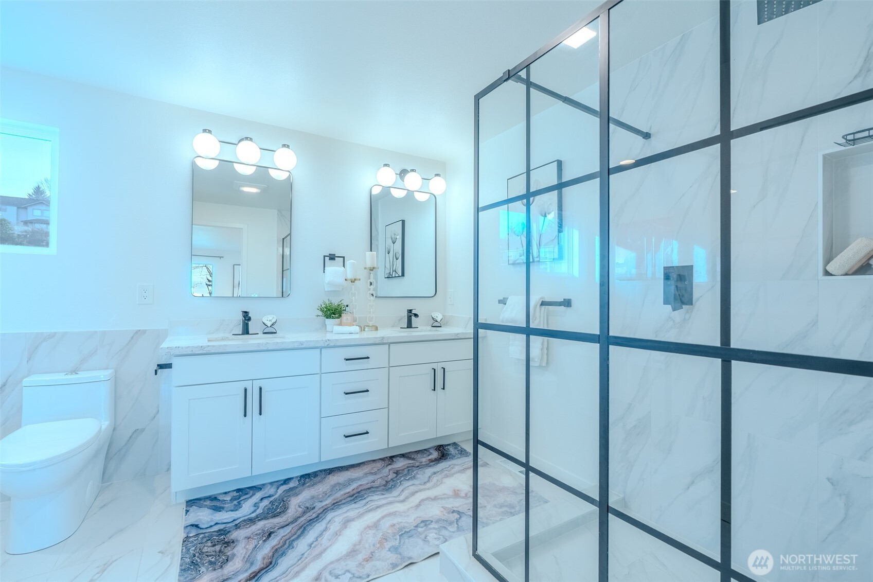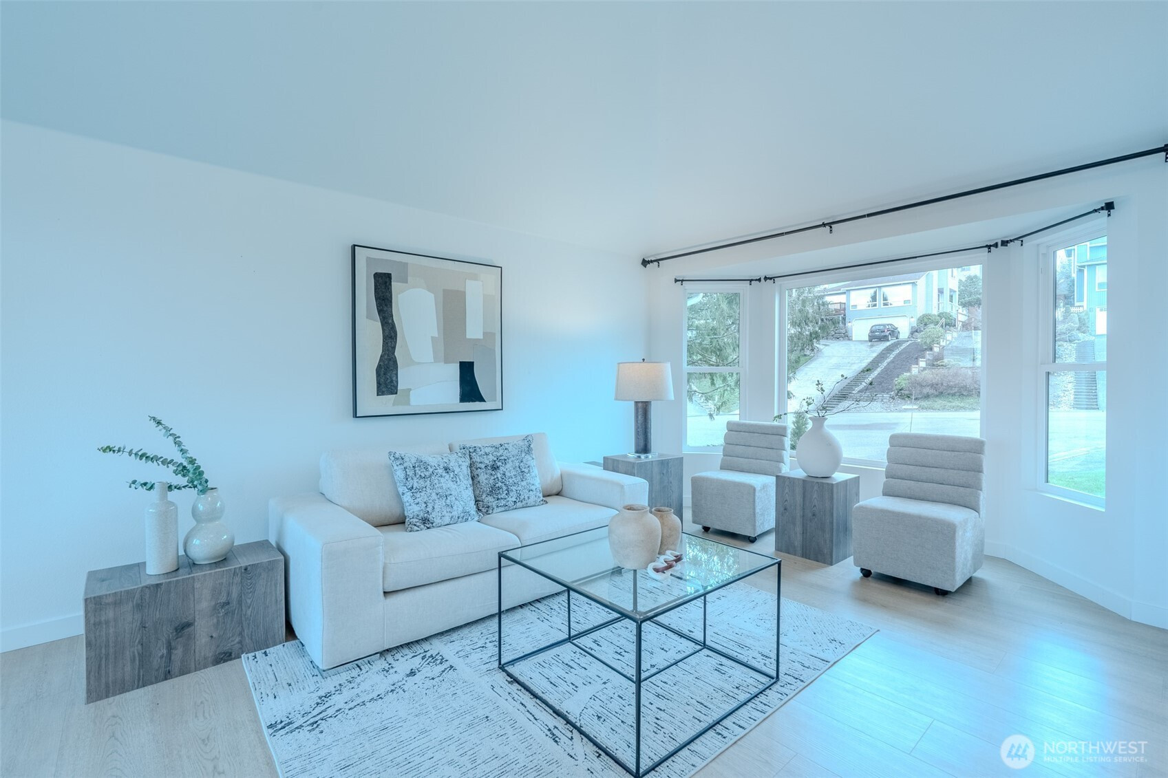 Experience elevated living in this beautifully remodeled home with sweeping Olympic Mountain and Puget Sound views. The expansive view deck is perfect for entertaining or unwinding, while the kitchen shines with quartz countertops, shaker cabinetry, and stainless steel appliances. The main level offers formal dining, living, and family rooms, plus a convenient half bath. Upstairs, the primary suite features stunning views and a spacious 5-piece bath, along with an additional bedroom and full bath. The lower level includes a generous rec room that opens to the newly landscaped backyard, two more bedrooms, and a full bath. Fresh paint and LVP flooring throughout. Complete with a 2-car garage and ample driveway parking.