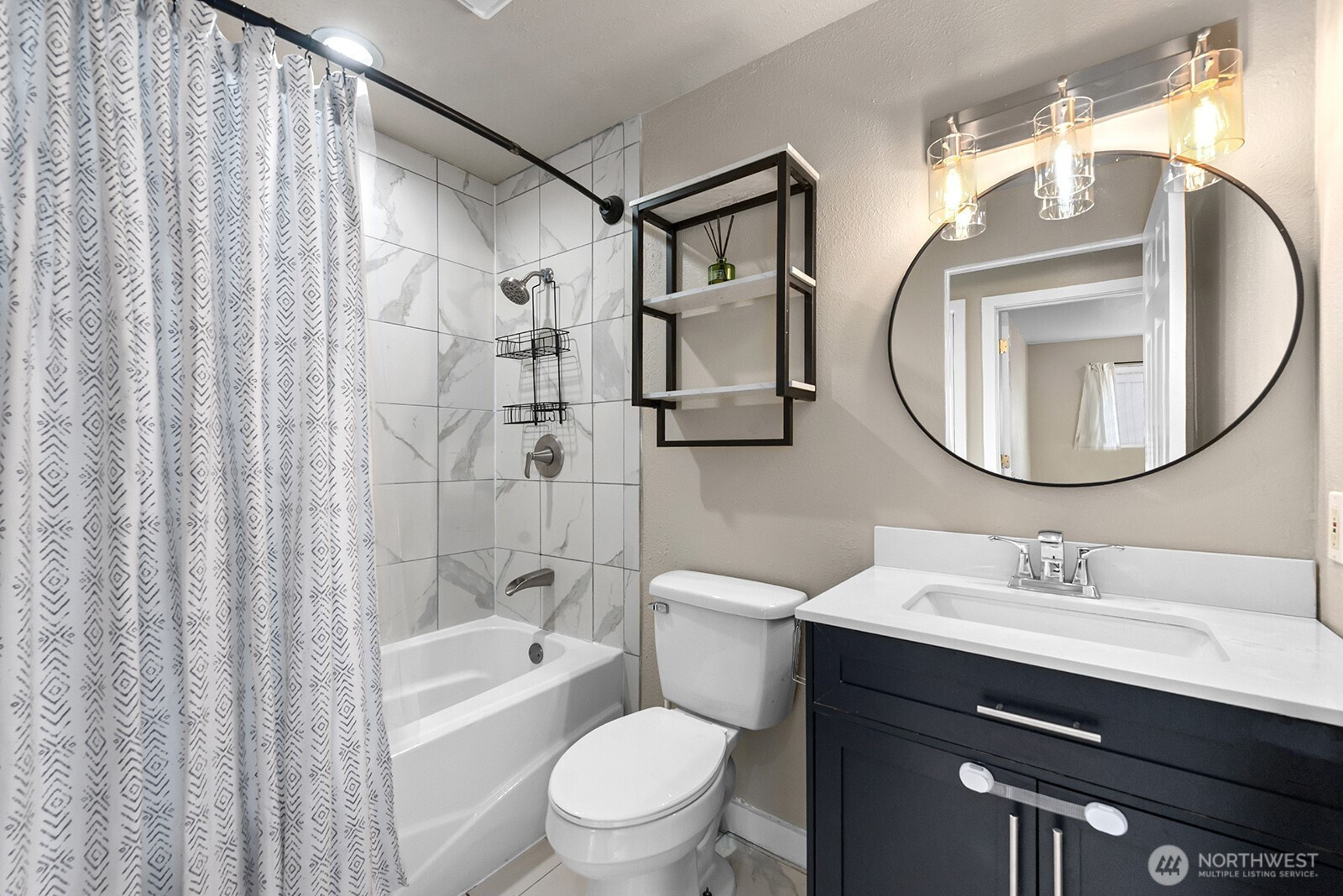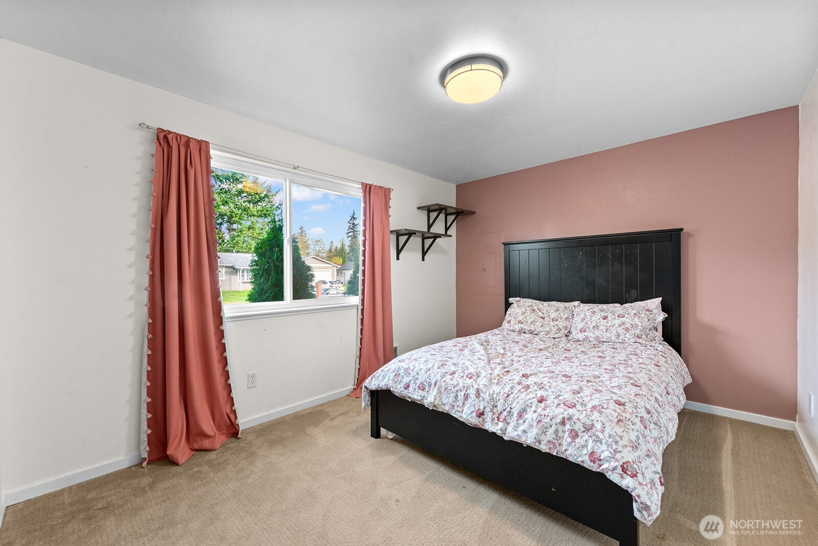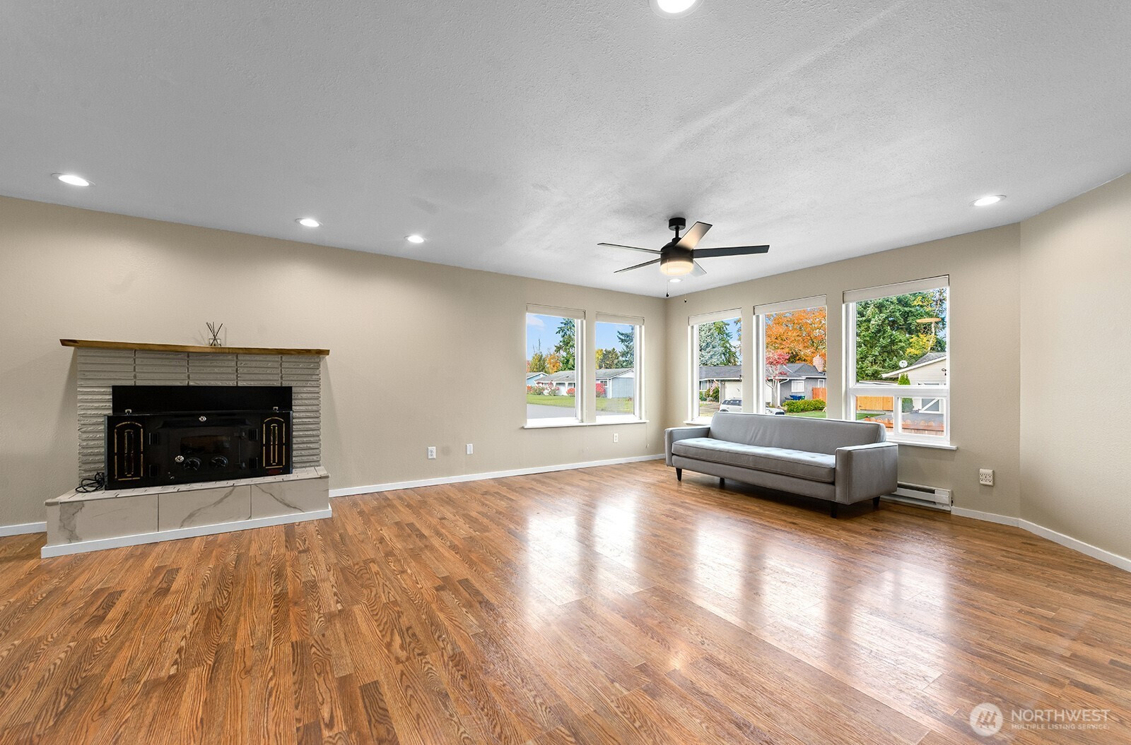 Nestled on a quiet, friendly street, this beautifully updated Marysville home sits on a large, level lot backing to a peaceful park. Endless outdoor possibilities- huge play area, garden space, extra storage & big covered patio perfect for entertaining year-round. Step inside: expansive great rm where the kitchen, dining & living areas flow seamlessly together—ideal for modern living & gatherings. Updated kitchen features granite countertops, soft-close drawers & plenty of workspace, opening to the bright dining area & living rm w/hardwood floors and cozy fireplace/woodstove. Double attached garage offers ample parking +room for a workbench/hobby area. Convenient to Amazon, parks, shopping, Tulalip, outlet mall & more. Welcome home!