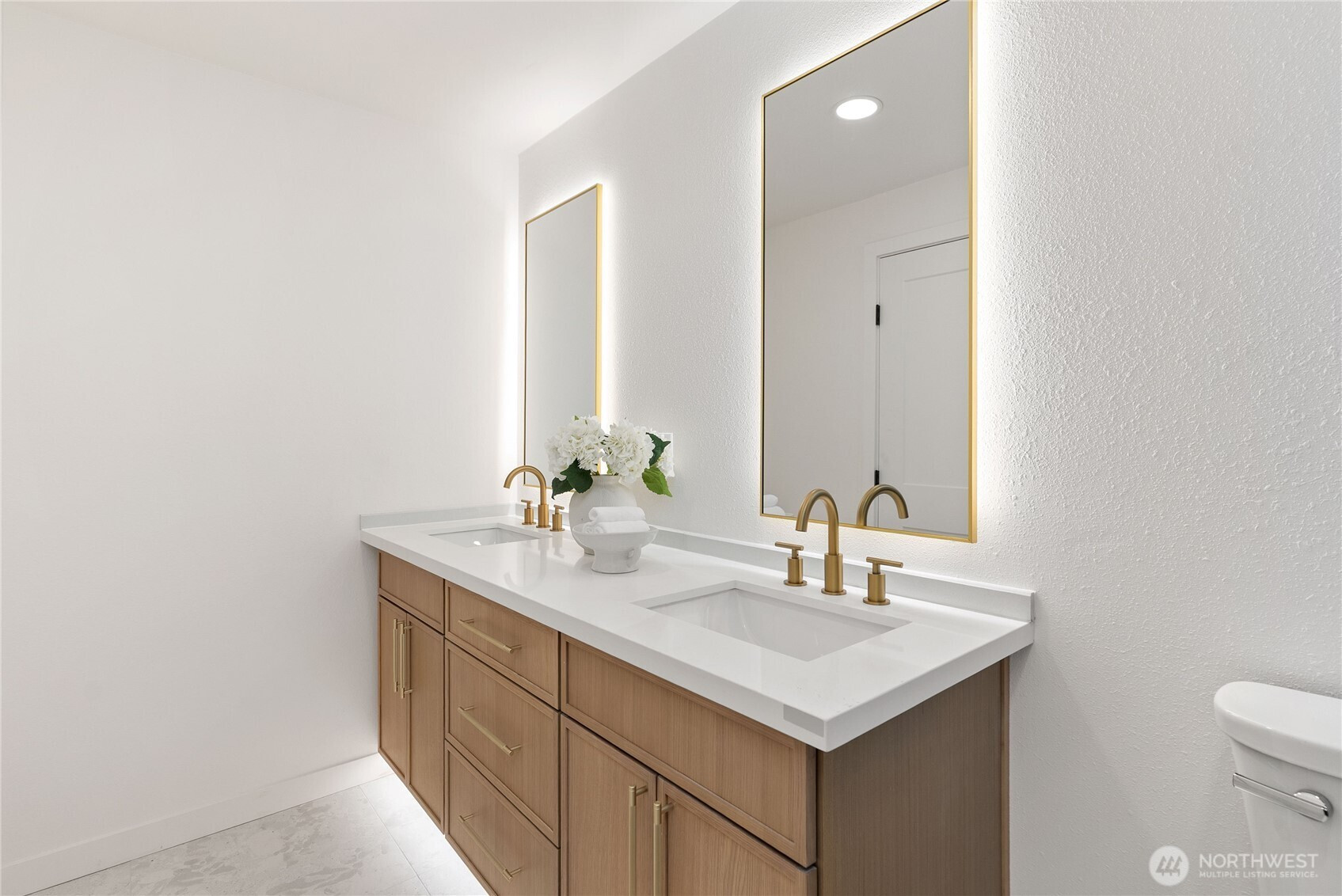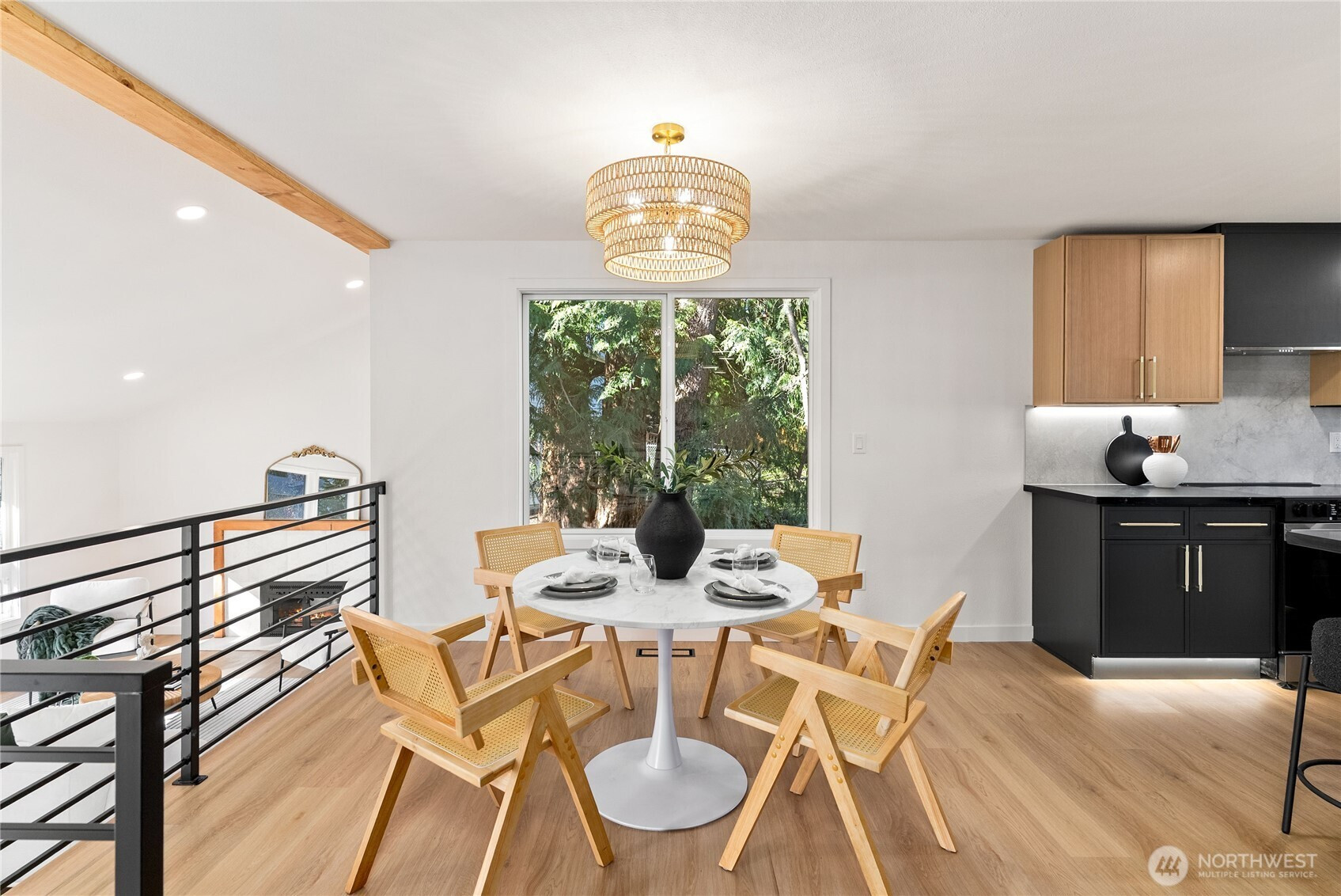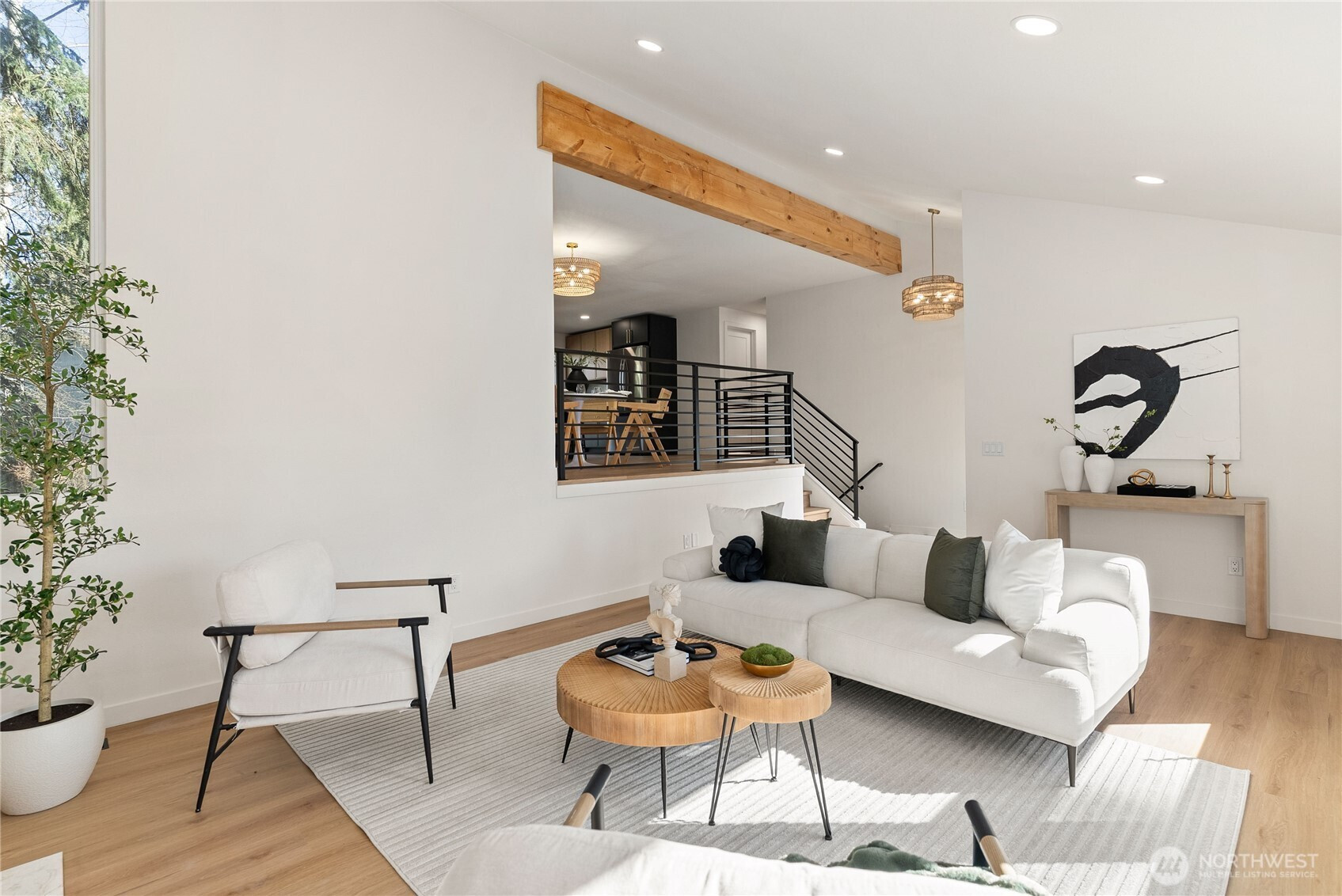 Tucked in a quiet cul-de-sac in highly desirable Picnic Point, this grand custom home blends timeless Mid-Century Modern style with elevated modern finishes. From the striking double-door entry to soaring vaulted ceilings and a stunning open living space, you’ll feel the difference instantly. The chef’s kitchen shines with quartz counters, slim shaker cabinetry, SS appliances, wine fridge & custom LED under-cabinet lighting - carried into the baths for a sleek, modern glow. LVP flooring & fresh interior/exterior paint throughout. Upstairs offers 3 bedrooms, including a spacious primary with a breathtaking en-suite featuring designer tile & custom vanities. Downstairs: large flex room/4th bedroom, half bath & a beautifully updated oversized laundry. Oversized garage w/ Epoxy coating, RV parking, PLUS a detached SHOP/GARAGE for all your toys/projects. Fresh landscaping, room to entertain, minutes to Picnic Point Park, Meadowdale Beach, dining & more. Mukilteo SD.