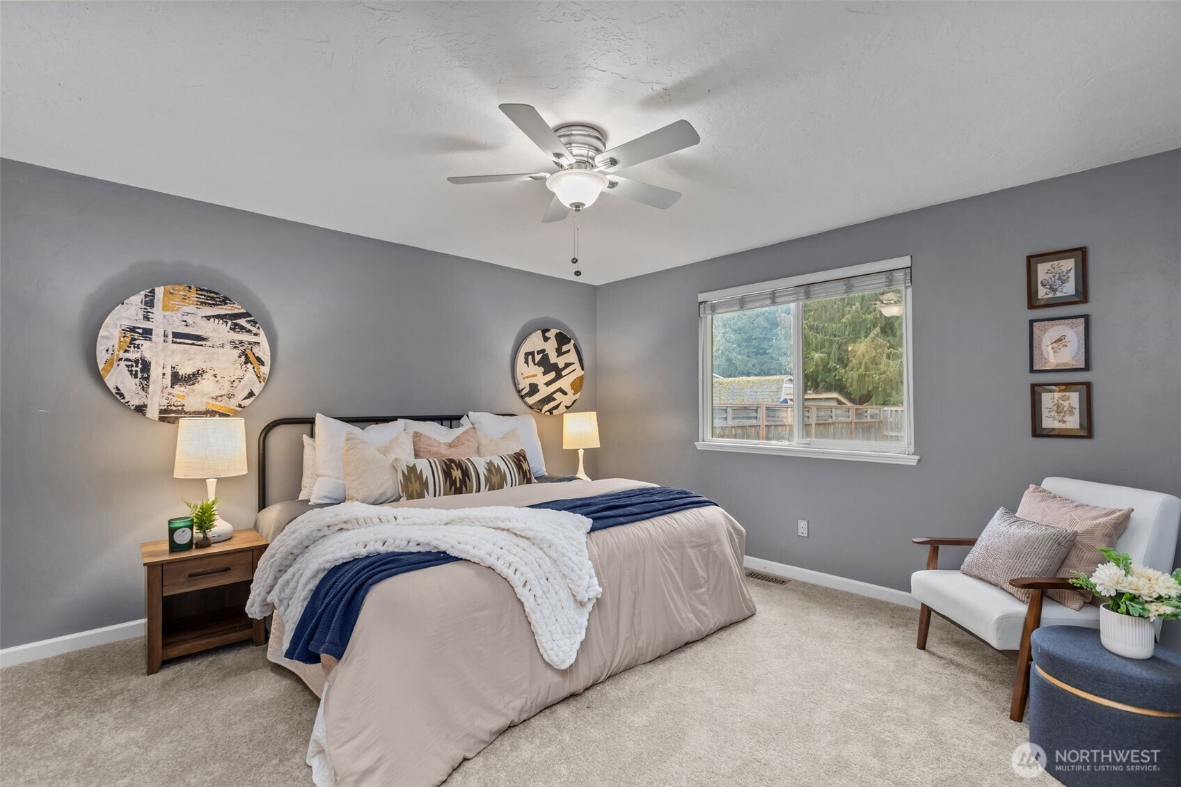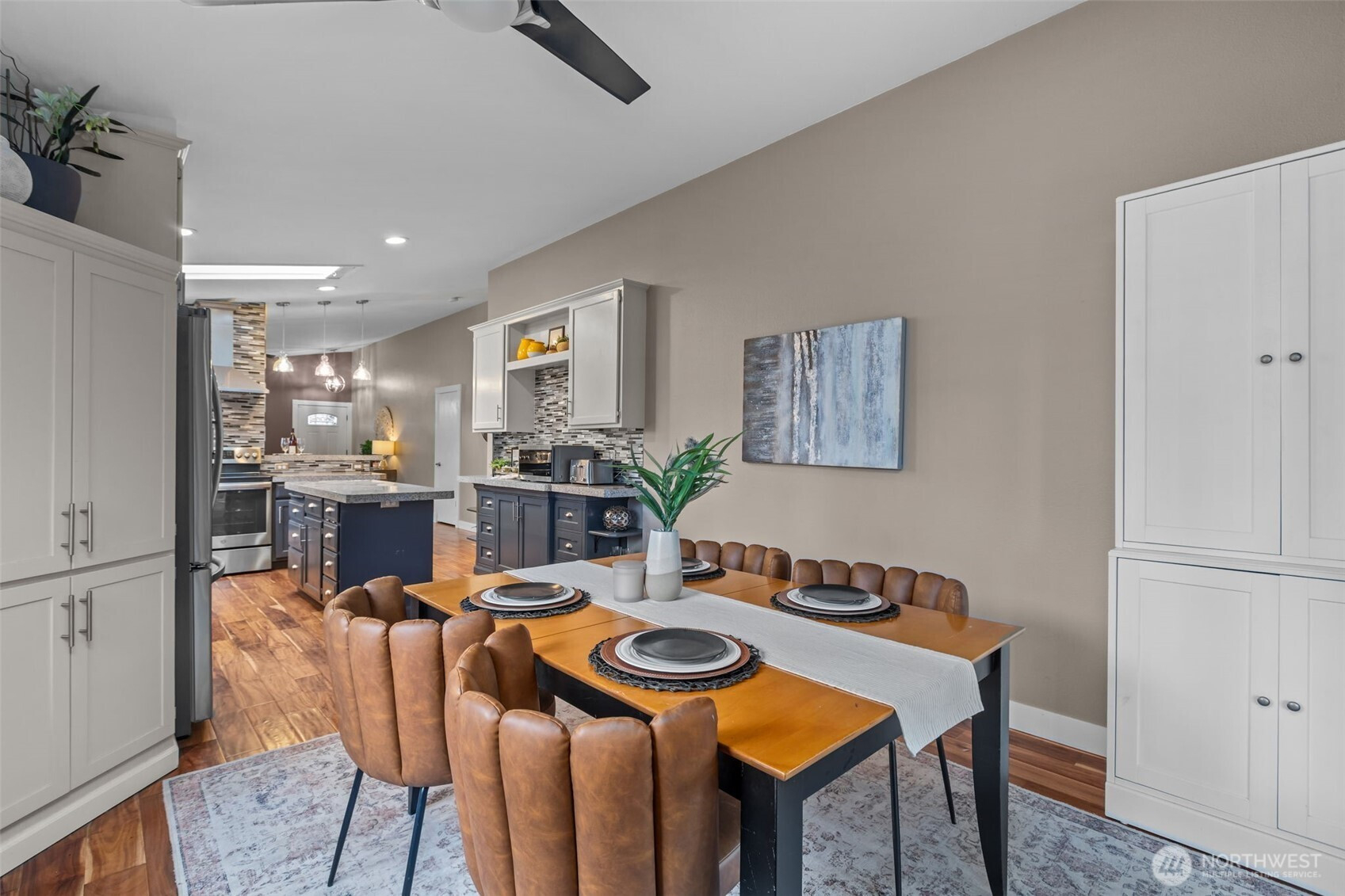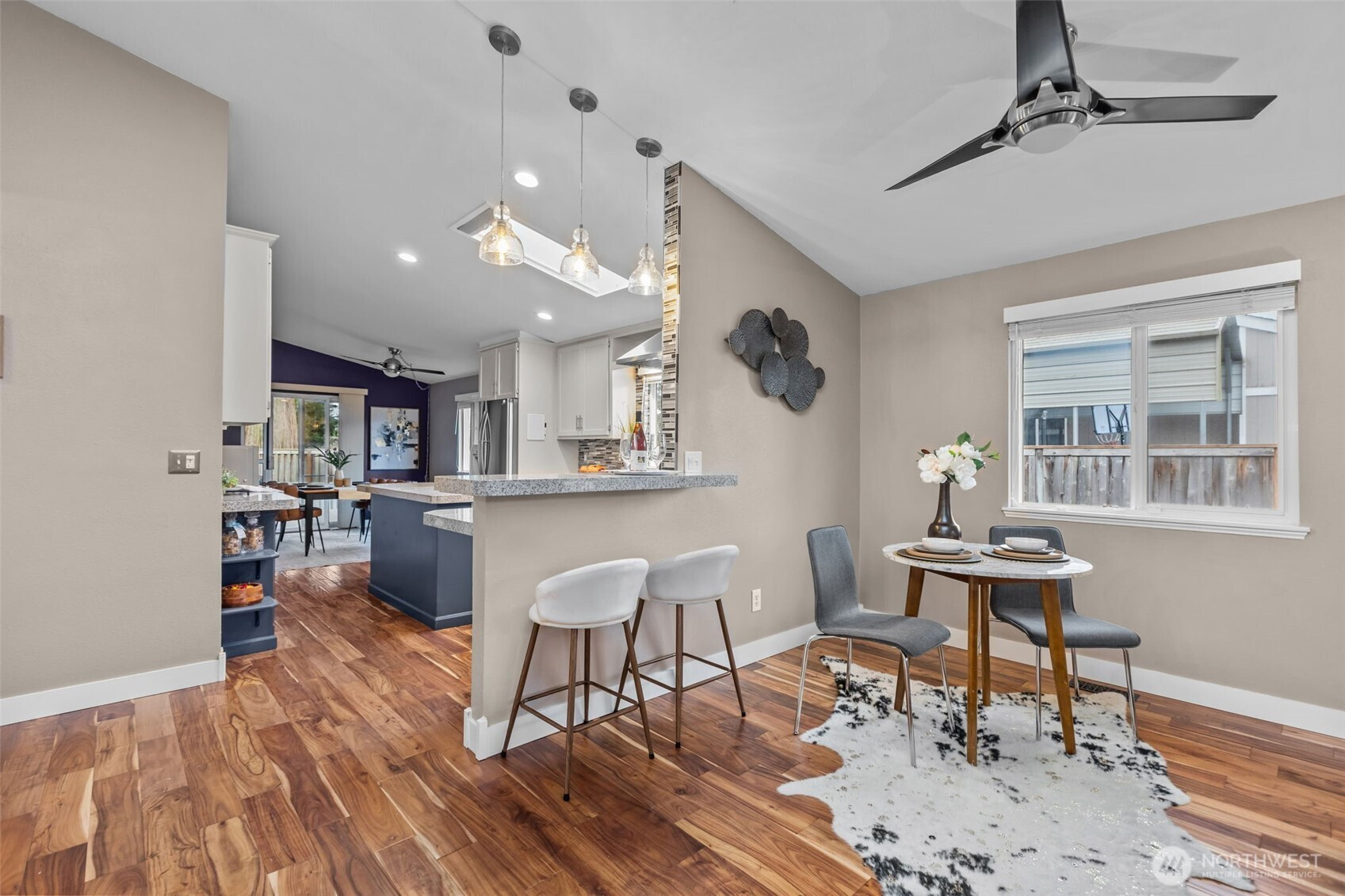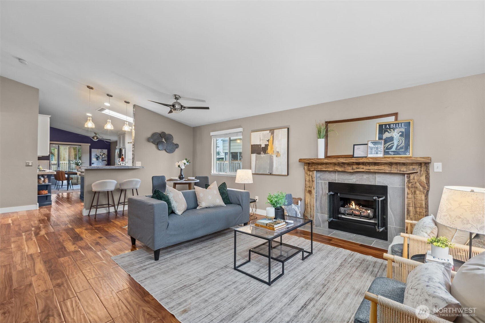 Beautifully remodeled rambler in the heart of Marysville featuring a 2-car garage and a fully fenced, gated yard with abundant parking—including fully secured RV and boat parking. Everything has been thoughtfully updated from floor to ceiling. Step inside to vaulted ceilings, skylights with insulated covers, and stunning engineered Acacia flooring throughout. The open-concept layout is ideal for entertaining, with a spacious living room featuring a cozy gas fireplace and custom Blue Pine mantle that seamlessly flows into the dining area. The updated kitchen is a true centerpiece, complete with granite countertops, power in the island, newer appliances, floor-to-ceiling cabinetry, and ample storage. Retreat to the private primary suite offering a custom walk-in closet and en-suite bath. Enjoy outdoor living at its best with a Trex deck and custom roof over the back patio—perfect for morning coffee and weekend BBQs. The expansive yard provides both privacy and functionality with room for all your toys. Perfectly situated in central Marysville close to shopping, parks, and just minutes to I-5 for an easy commute. Located in a great neighborhood—this one truly has it all!