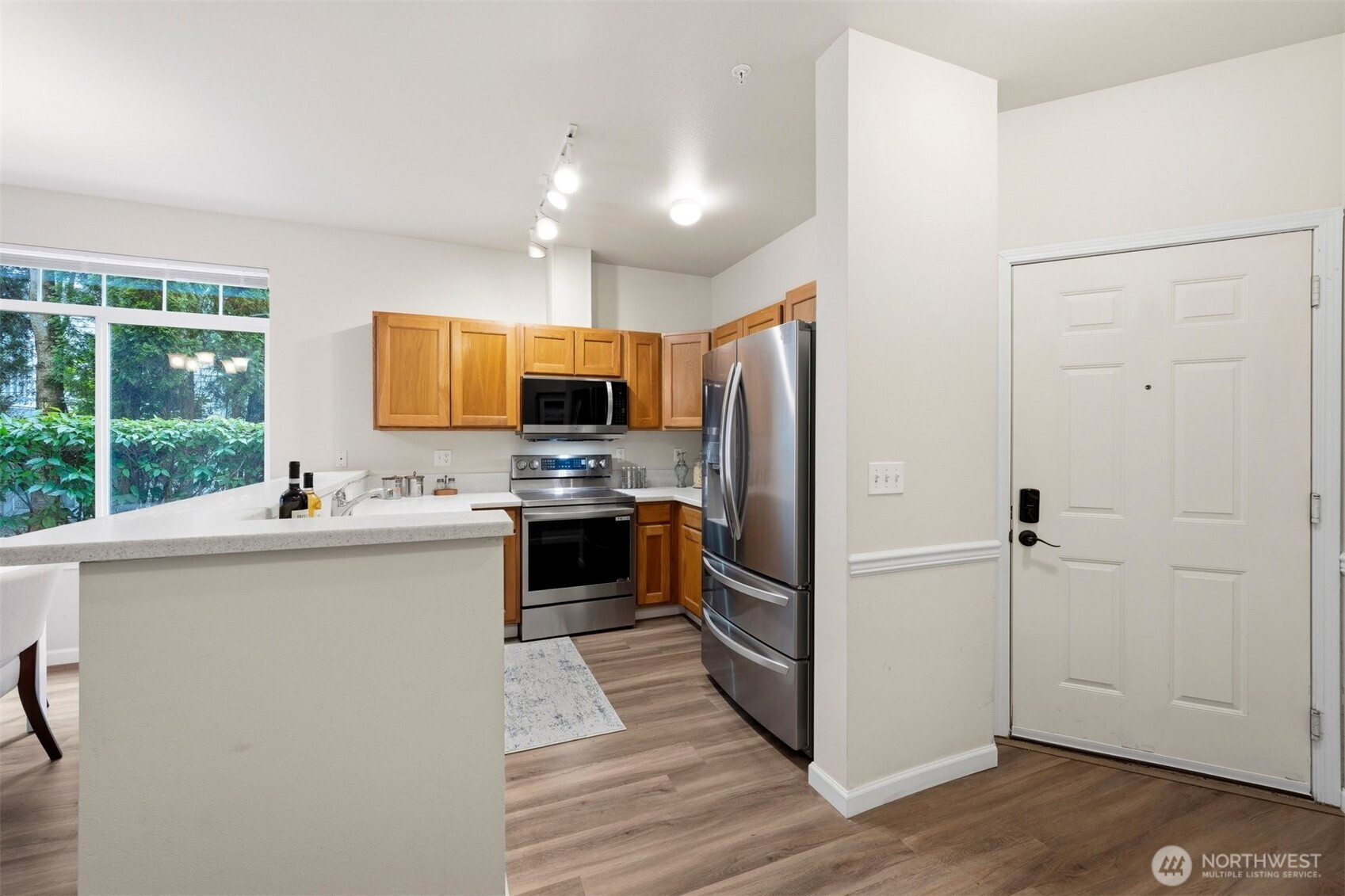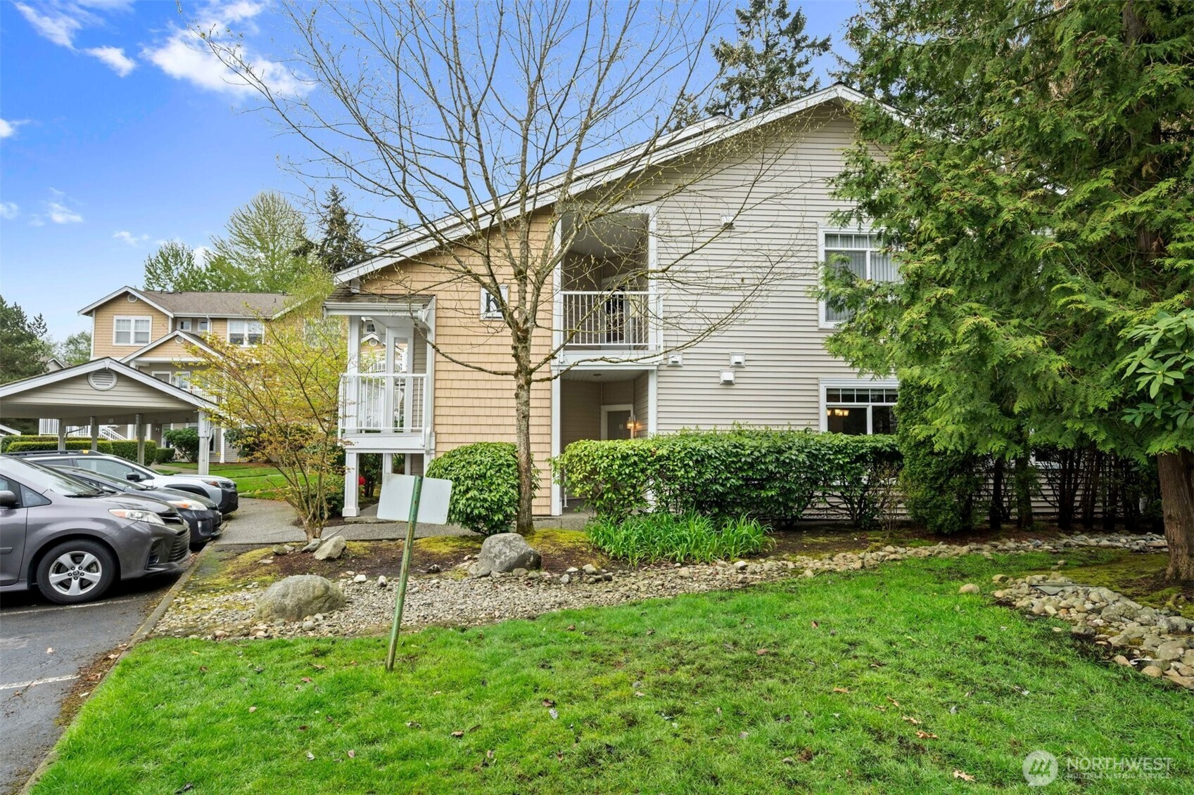 Ground-level end unit with no stairs, featuring a patio with direct access to yard area. Functional single-level layout with updated interior and updated finishes. Large windows provide natural light throughout. Open living and dining area connects to kitchen with efficient layout and storage. End-unit position offers additional privacy and increased window exposure. Designed with comfort and practicality in mind, this home features two secondary bedrooms, in-unit laundry, a full guest bathroom, one reserved parking space, and ample extra parking for owners and visitors. Spend weekends exploring nearby beaches, local parks, and Harbour Pointe Golf Club. Situated in the sought-after Mukilteo School District, with convenient access to Kamiak High School, Harbour Pointe Middle School, and Columbia Elementary School. Ideally located about 0.6 miles from Harbour Pointe Village for dining, shopping, and daily essentials, approximately 0.4 miles to WA-525, and just minutes from grocery stores, the library, I-5, and I-405.