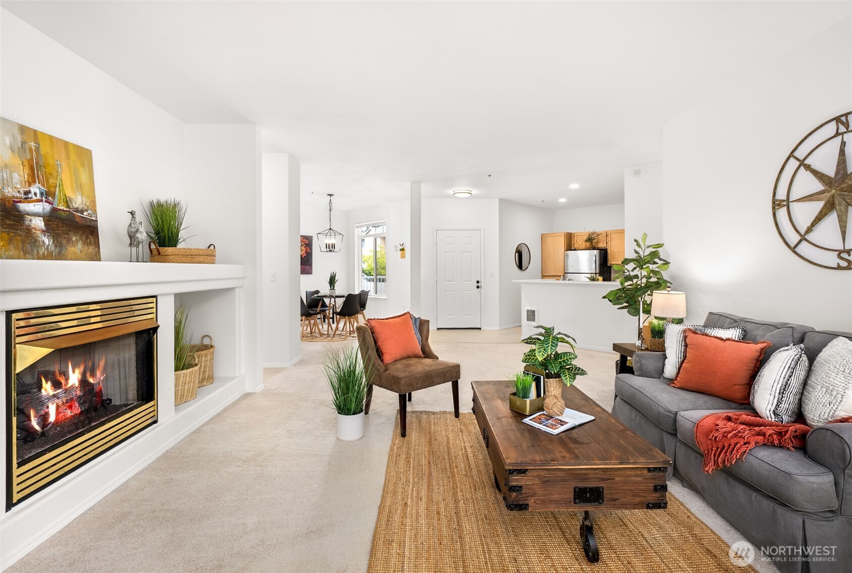 Located within the sought-after Nantucket community in Mukilteo, this beautifully refreshed condo offers a blend of comfort and everyday ease. A bright, inviting interior welcomes you in with fresh paint and modern finishes, creating a clean cohesive feel. The functional kitchen features gleaming quartz countertops and ample storage. While the open dining and living areas flow together, anchored by a cozy fireplace and extending to a private balcony surrounded by lush greenery. The spacious primary suite provides a relaxing retreat with a walk-in closet and an ensuite bath. Thoughtfully designed for convenience, this home includes two additional bedrooms, in-unit laundry, and a full hall bathroom. One dedicated parking space and additional guest parking add ease to daily routines. Local beaches, parks, and the Harbour Pointe Golf Club offer weekend adventures. Walk to highly rated Mukilteo Schools: Kamiak High, Harbour Pointe Middle, and Columbia Elementary. Minutes to grocery shopping, library, I-5 and I-405.