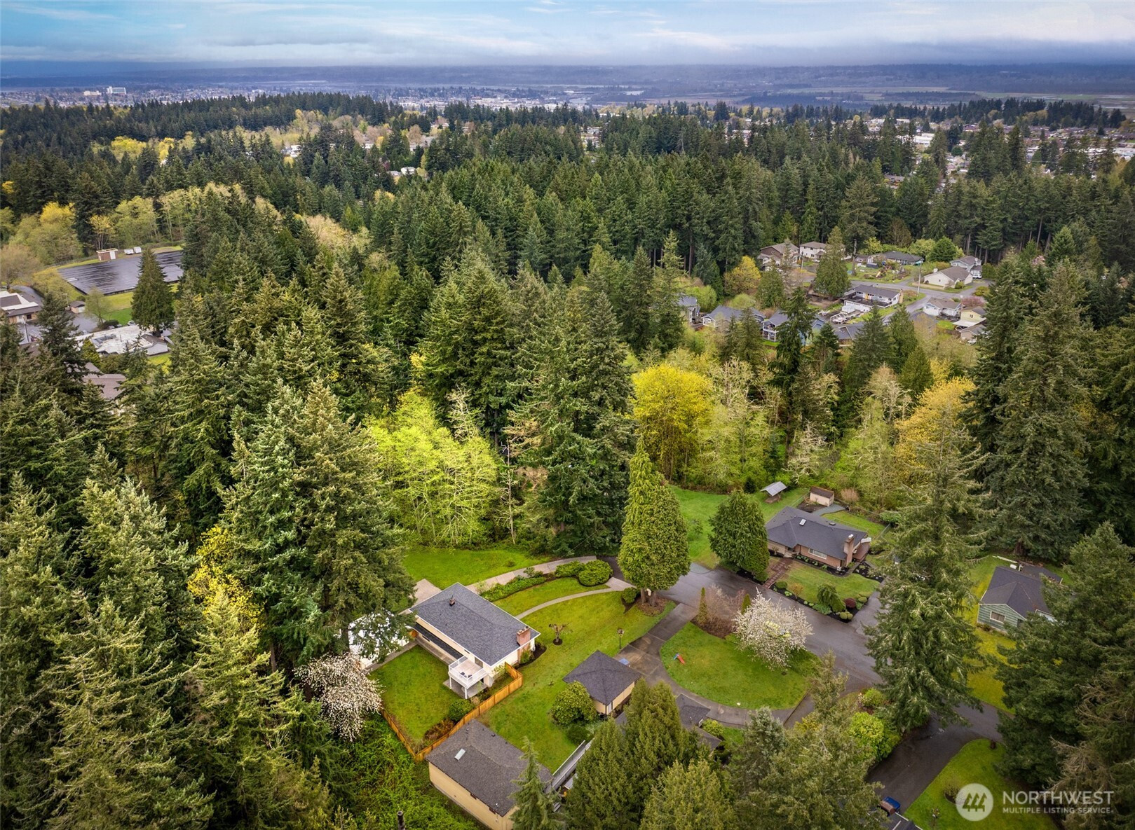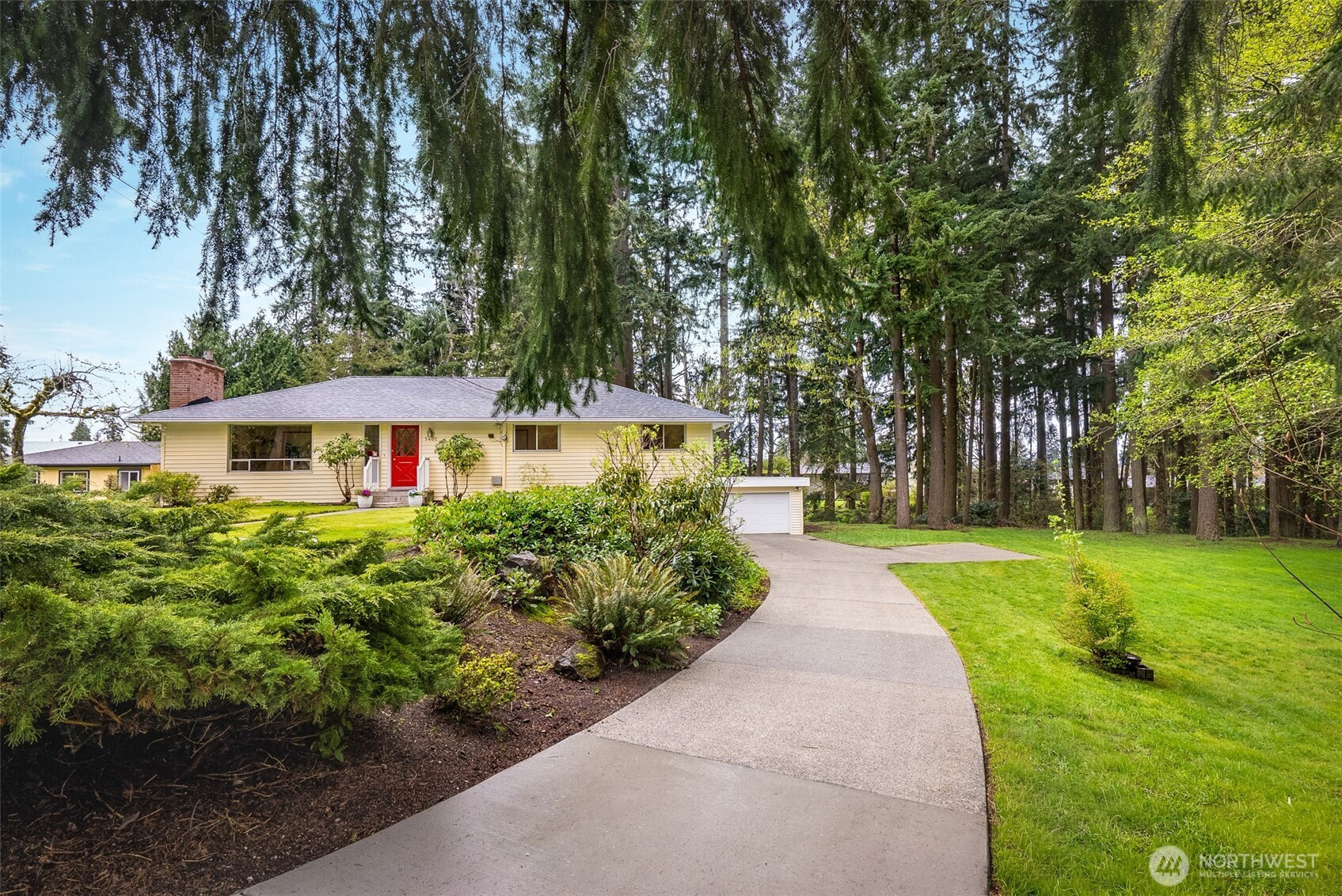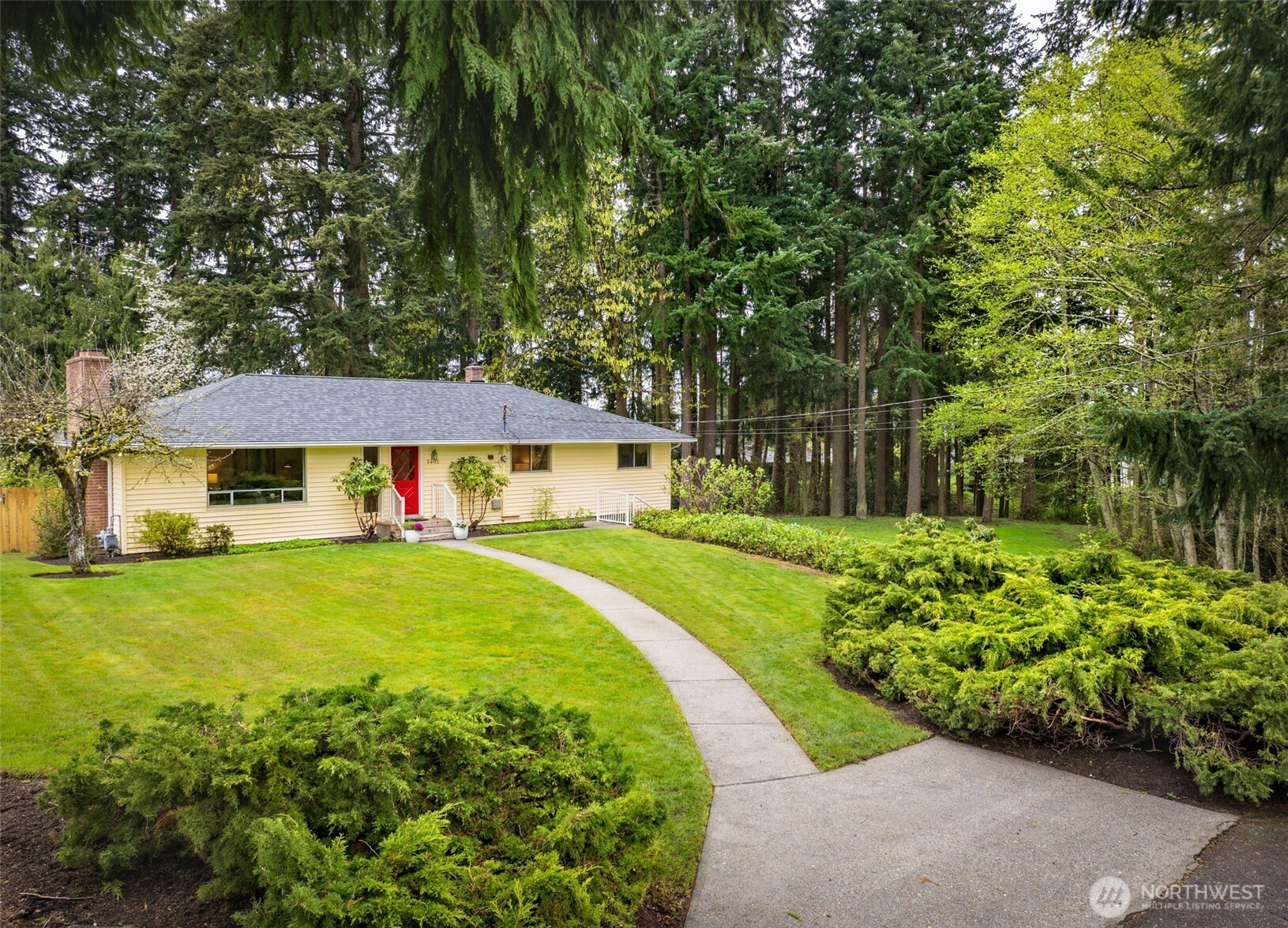 Never before listed and set within a quiet cul-de-sac just minutes from Puget Sound beaches, Paine Field, and Boeing, this nearly original 1950s property offers the ideal balance of PNW tranquility and everyday convenience. Nestled on two beautifully maintained acres, this home invites space to roam while remaining close to daily conveniences. Inside, original hardwood floors lead through the front living room, where a classic wood-burning fireplace creates a warm and relaxing atmosphere. The kitchen offers generous storage, a dining nook, and additional flex space perfect for a sitting area or workspace. Take your living space outdoors to the back deck, ideal for summer hosting. Down the hall, three well-sized bedrooms are complemented by a recently refreshed bathroom featuring a dual vanity and additional storage. The lower level expands your living options with a spacious bonus room warmed by a wood-burning fireplace, plus direct backyard access for effortless entertaining. A fourth bedroom with built-in storage and a newly remodeled bathroom provides flexibility for guests or multi-generational living. The oversized laundry room with outdoor access adds everyday functionality, while the large unfinished utility space creates abundant storage space. Weekend adventures are easily within reach with many local parks, Puget Sound Beaches, and the Mukilteo Ferry Terminal moments away.