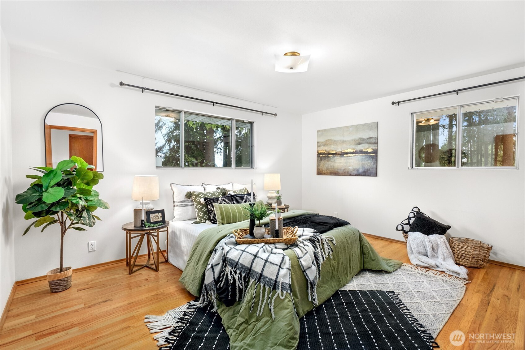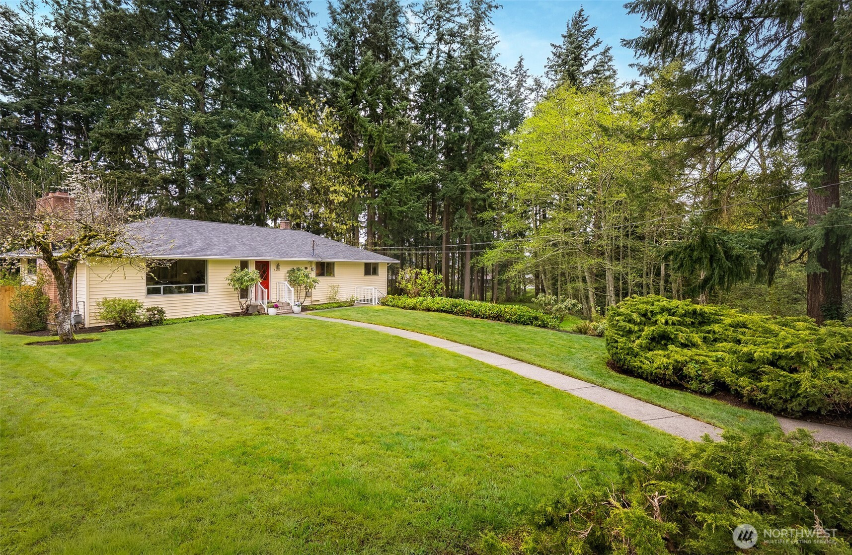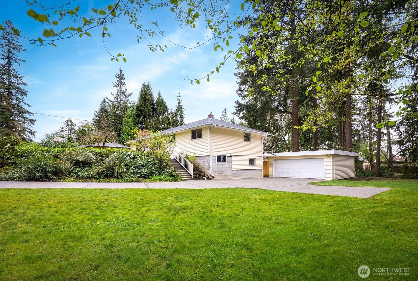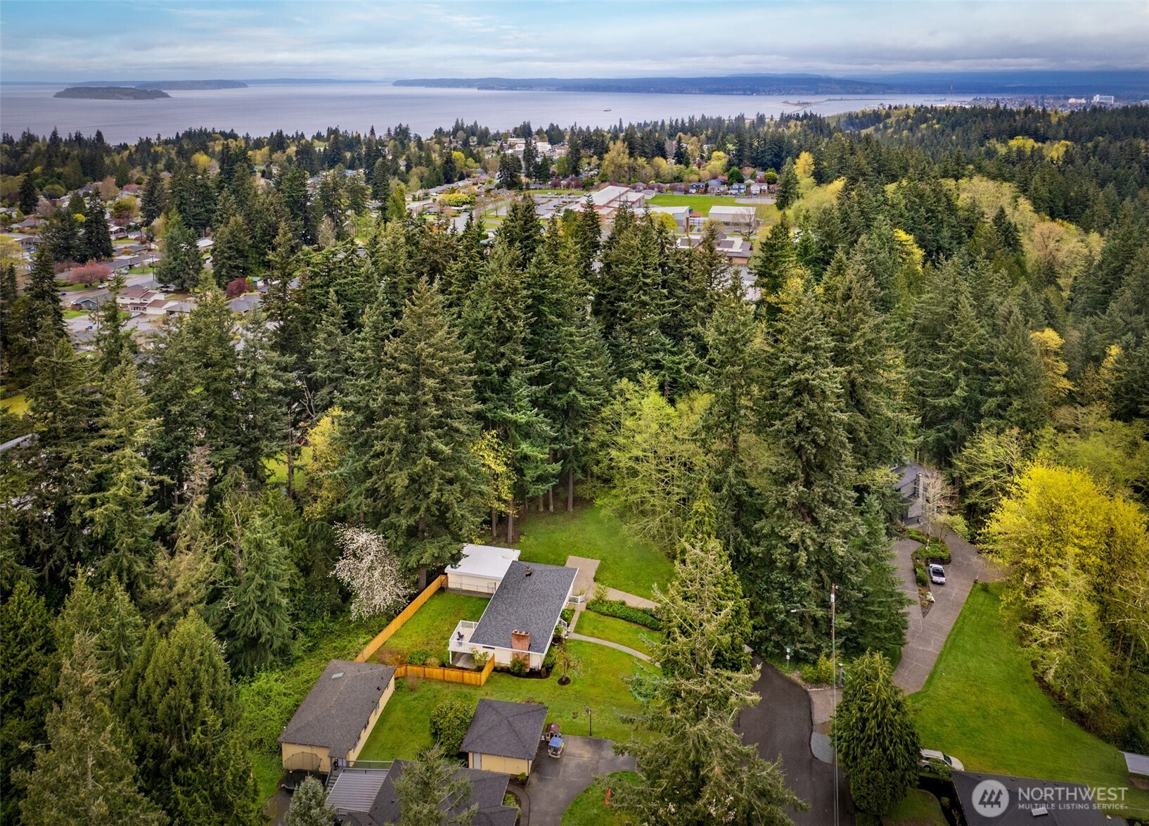 Never before listed and set within a quiet cul-de-sac just minutes from Puget Sound beaches, Paine Field, and Boeing, this nearly original 1950s property offers the ideal balance of PNW tranquility and everyday convenience. Nestled on two beautifully maintained acres, this home invites space to roam while remaining close to daily conveniences. Inside, original hardwood floors lead through the front living room, where a classic wood-burning fireplace creates a warm and relaxing atmosphere. The kitchen offers generous storage, a dining nook, and additional flex space perfect for a sitting area or workspace. Take your living space outdoors to the back deck, ideal for summer hosting. Down the hall, three well-sized bedrooms are complemented by a recently refreshed bathroom featuring a dual vanity and additional storage. The lower level expands your living options with a spacious bonus room warmed by a wood-burning fireplace, plus direct backyard access for effortless entertaining. A fourth bedroom with built-in storage and a newly remodeled bathroom provides flexibility for guests or multi-generational living. The oversized laundry room with outdoor access adds everyday functionality, while the large unfinished utility space creates abundant storage space. Weekend adventures are easily within reach with many local parks, Puget Sound Beaches, and the Mukilteo Ferry Terminal moments away.